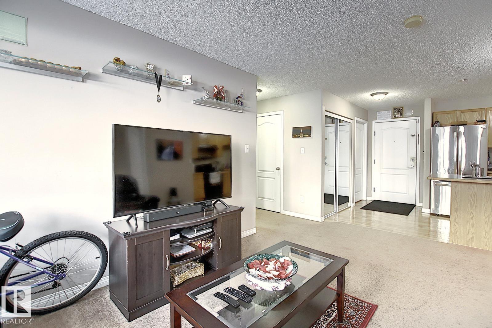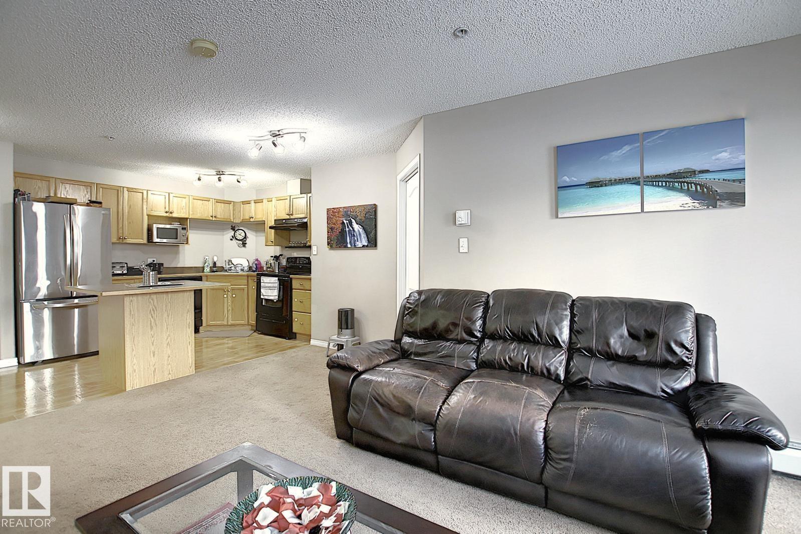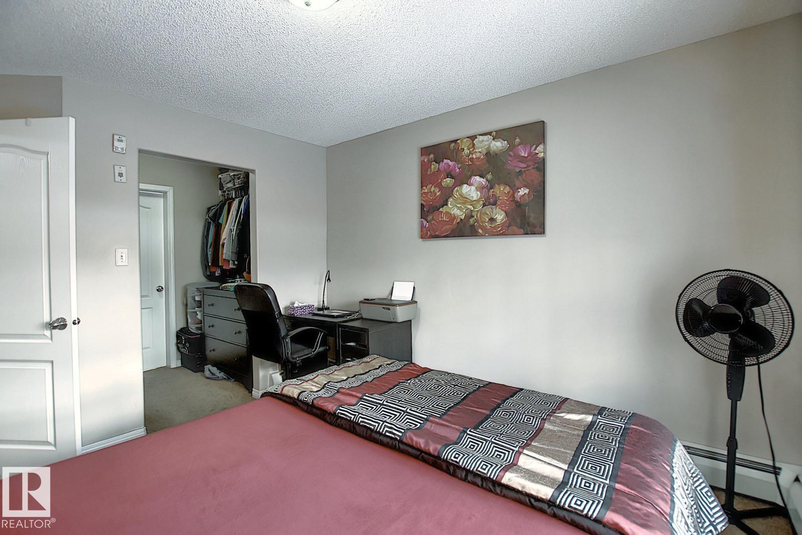 Welcome to Park Place Hampton. This well-kept 2 bedroom, 2 bathroom condo offers a functional layout with comfortable living space. The kitchen features upgraded oak cabinets, plenty of counter space, black appliances, and a large island that’s great for everyday use or casual dining. The primary bedroom includes a walk-in closet and a full ensuite, while the second bedroom is set on the opposite side, making it ideal for guests or a home office. You’ll also find in-suite laundry, extra storage, and a titled above-ground parking stall. Conveniently located within walking distance to schools and just minutes from Anthony Henday, Whitemud Drive, and West Edmonton Mall, with easy access to all amenities. (id:63190)