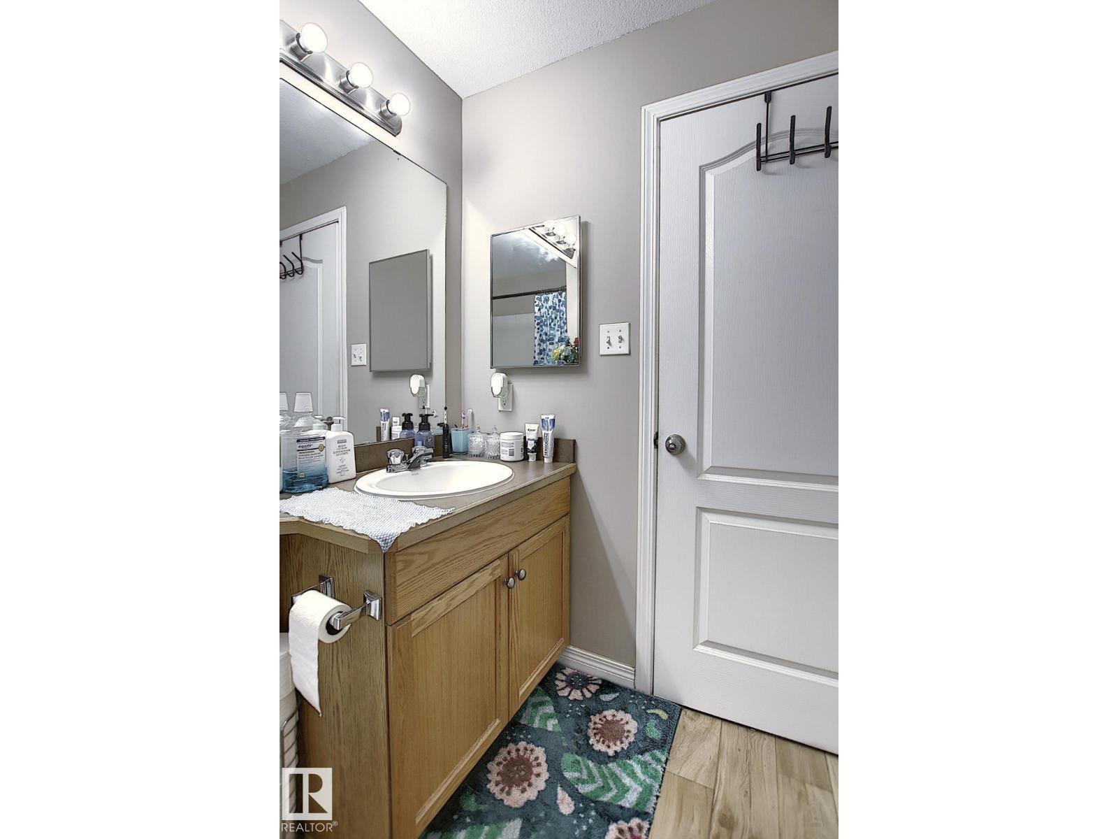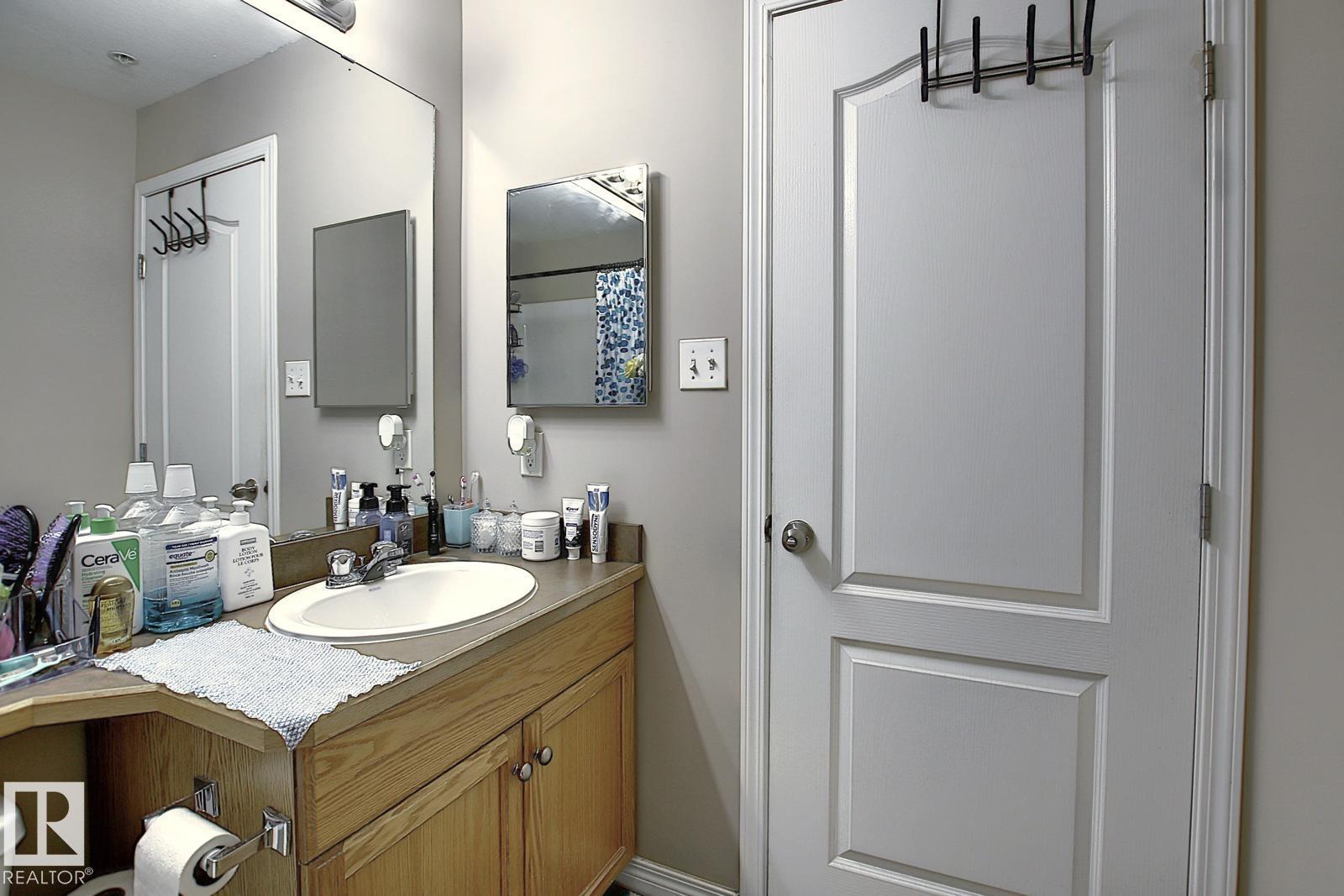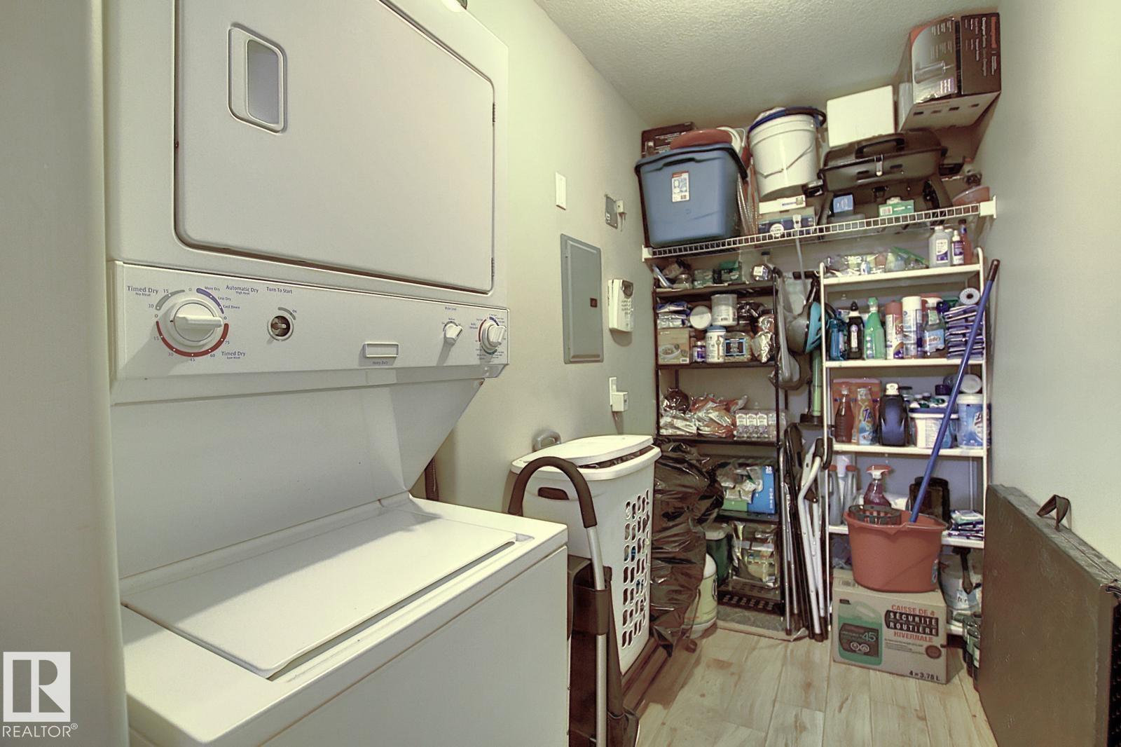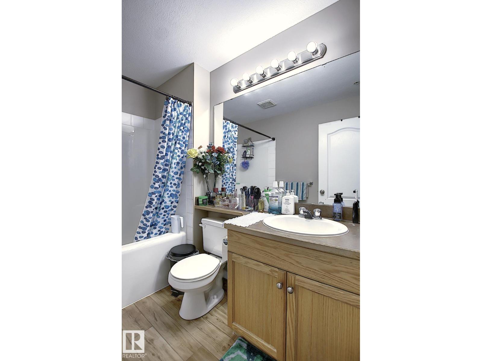 Welcome to Park Place Hampton. This well-kept 2 bedroom, 2 bathroom condo offers a functional layout with comfortable living space. The kitchen features upgraded oak cabinets, plenty of counter space, black appliances, and a large island that’s great for everyday use or casual dining. The primary bedroom includes a walk-in closet and a full ensuite, while the second bedroom is set on the opposite side, making it ideal for guests or a home office. You’ll also find in-suite laundry, extra storage, and a titled above-ground parking stall. Conveniently located within walking distance to schools and just minutes from Anthony Henday, Whitemud Drive, and West Edmonton Mall, with easy access to all amenities. (id:63190)