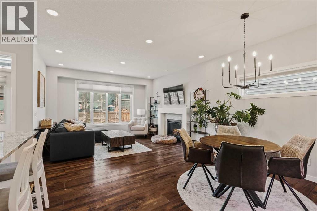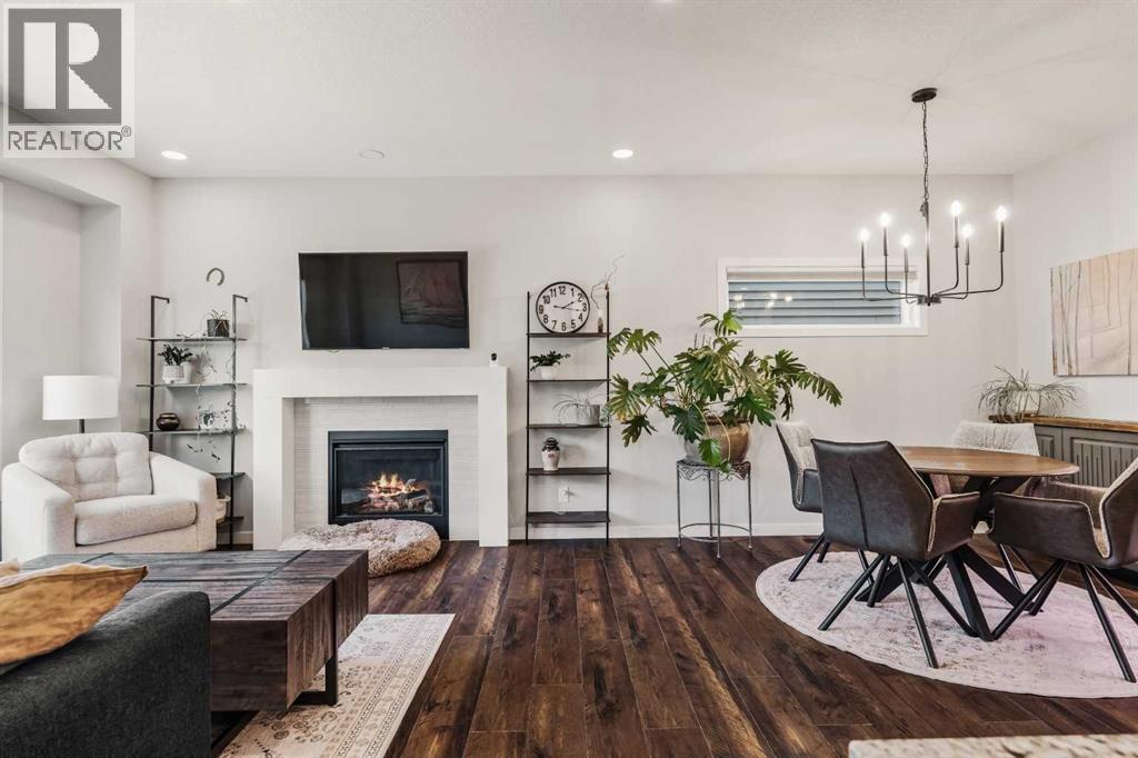 Beautiful living and dining areas with cozy fireplace