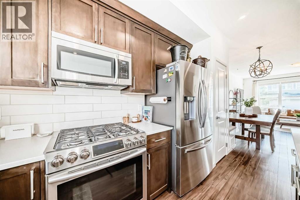 Welcome to this lovingly maintained home where modern craftsmanship meets one of Calgary's most thoughtfully designed family communities. This immaculate 3-bedroom, 3.5-bath home with fully finished basement and oversized double detached garage represents the rare intersection of meticulous build quality and resort-style living. From the moment you step inside, the home's pride of ownership throughout the over 1,700 square feet of usable living space is unmistakable. Nine-foot ceilings and expansive windows flood the air-conditioned open-concept floor plan with natural light, highlighting upgraded vinyl plank flooring that flows seamlessly throughout. The chef-inspired kitchen anchors the space with a premium stainless steel appliance package including a gas range, quartz countertops, custom maple cabinetry, and convenient centre island with breakfast bar, perfect for weekday mornings & weekend entertaining alike. The adjacent dining area features a built-in bench with hidden storage, while the spacious living room opens the floor plan beautifully. A convenient mudroom & powder room complete this level, keeping daily life organized and effortless. Upstairs, the oversized primary suite offers morning light, walk-in closet, and a four-piece ensuite with soaker tub/shower combination. Two additional generous bedrooms, upper-floor laundry, and another full bath provide comfortable family living. Central air conditioning throughout keeps every season comfortable. The true standout? A fully finished basement with separate side entrance, this is a game-changing feature that transforms daily living and future possibilities. This private entry allows teenagers their own space, provides seamless access for guests or extended family, and offers the flexibility for rental or multi-generational living down the road. With its open-concept living area, fourth full bathroom, and ample storage, the basement delivers immediate functionality while preserving future options. Step outsi de to your private backyard retreat: fully fenced & professionally landscaped with a sprawling 32' x 15' deck, separate chain-link dog run, and fire pit area. This private outdoor oasis is ideal for hosting summer barbeques or Alfresco dining. The oversized detached garage with back lane access ensures parking and storage will never be a concern. But here's what elevates this opportunity beyond the home itself. Wolf Willow's lifestyle! This master-planned community wraps around natural green space and Bow River Valley, offering 9 kilometres of pathways connecting parks, themed playgrounds, and a 9-acre off-leash dog park. The Wolf Willow Crossing commercial hub brings cafes, services, and conveniences steps from your door, while Fish Creek Provincial Park provides year-round recreation. Seamless access to Macleod Trail, Stoney Trail, Chaparral, and Walden amenities, connects to everything Calgary offers while enjoying the tranquility and amenities of amazing Wolf Willow! (id:63190)