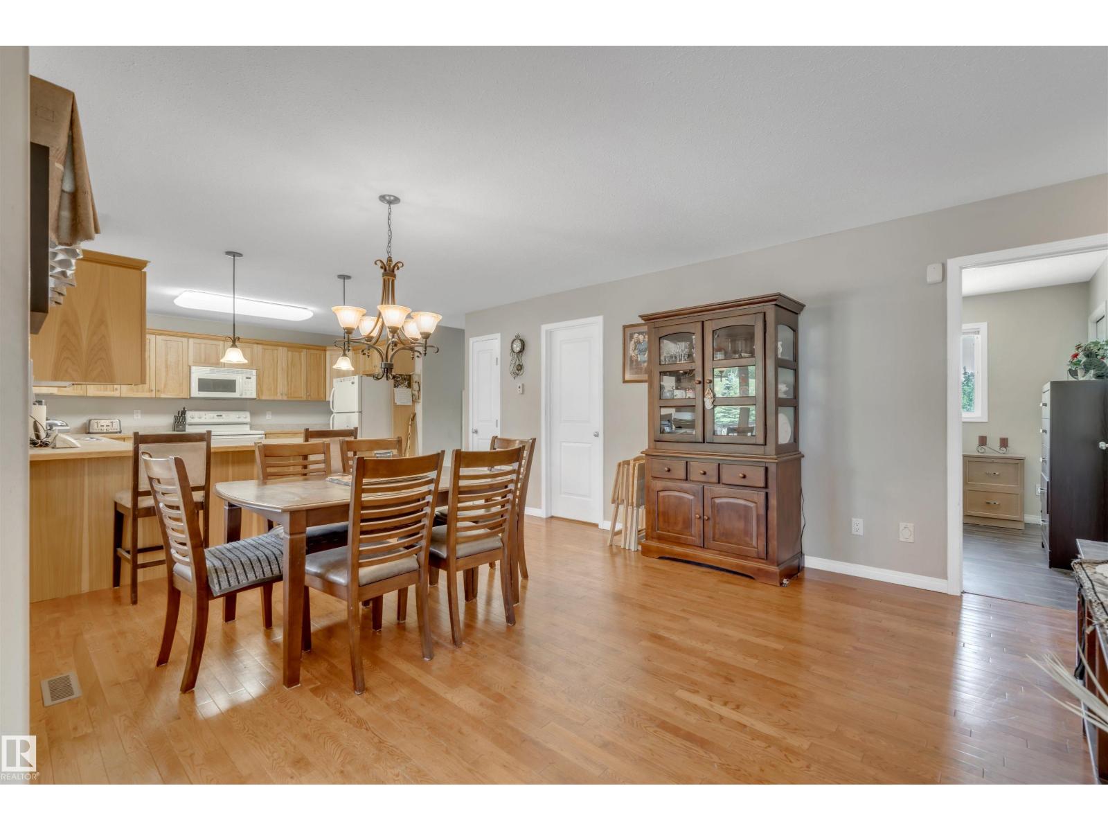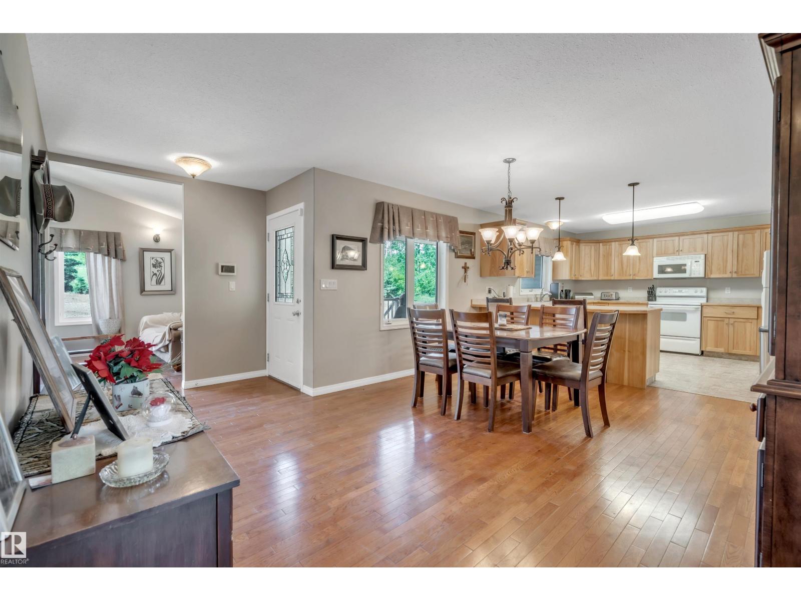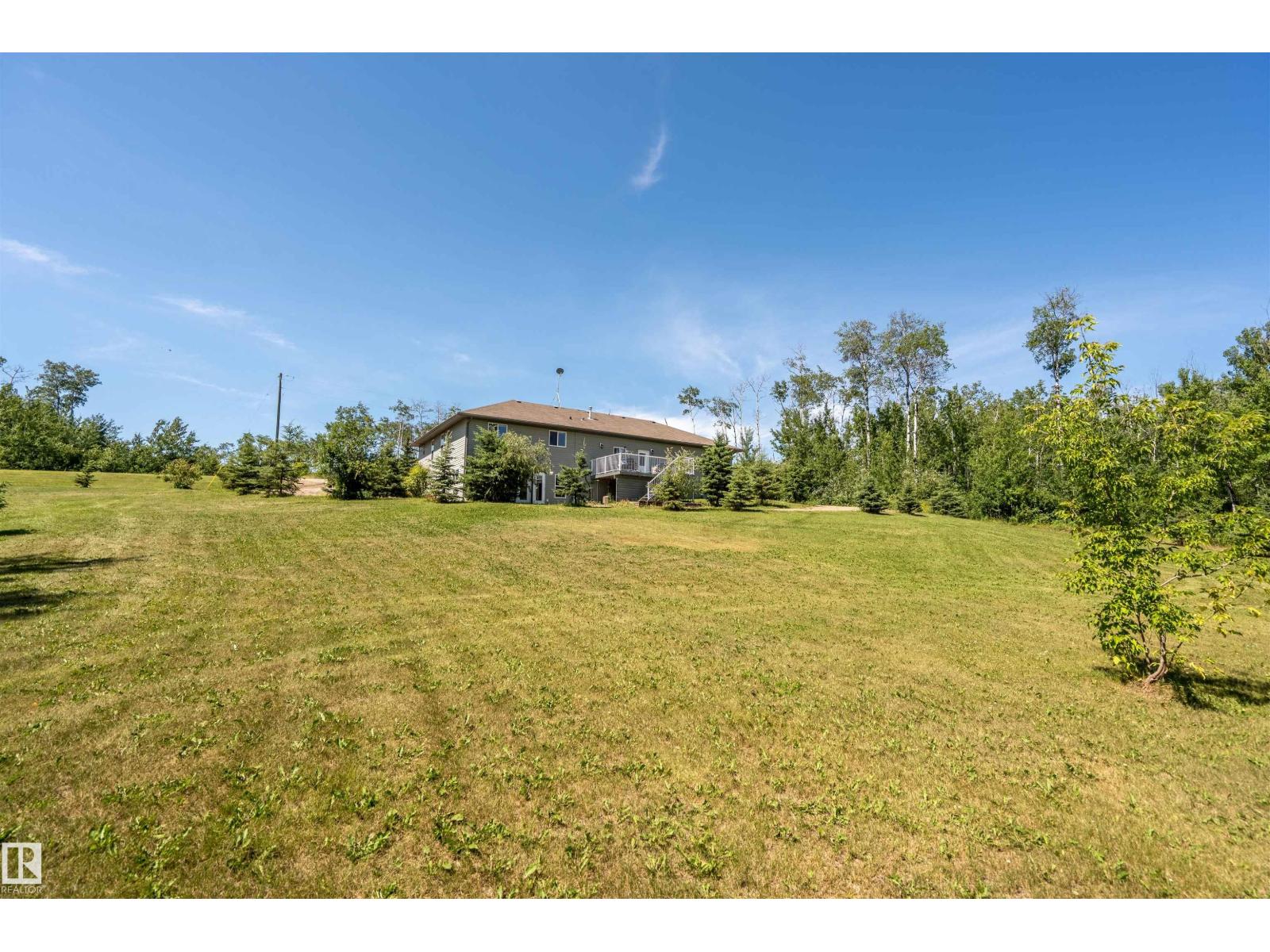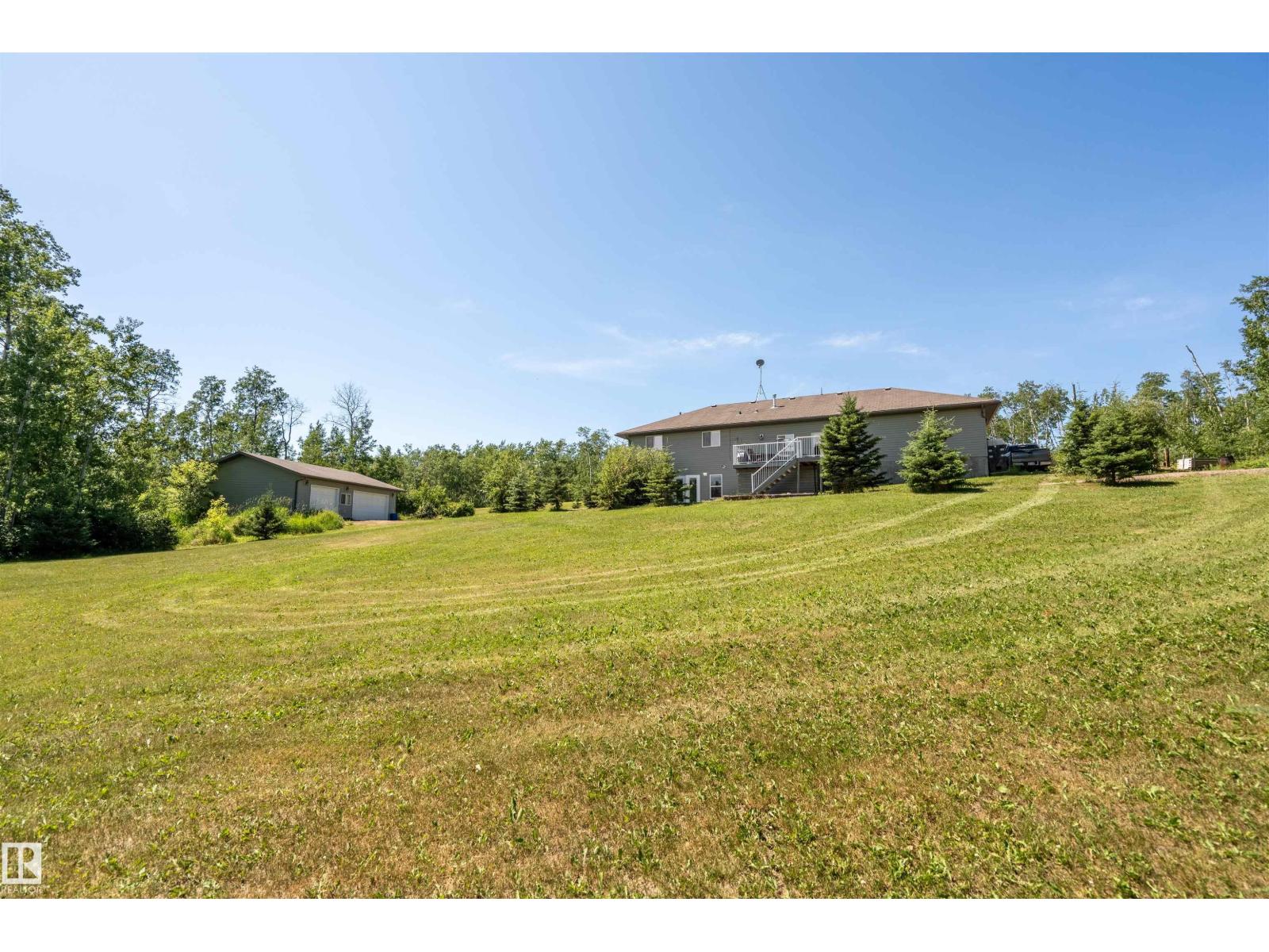A custom-built original owner home, ideally located on 3.6 acres just a 10-minute drive from Cold Lake. As you enter, you have inviting hardwood floors that flow through the main level. The spacious living room features vaulted ceilings while seamlessly connecting to the open-concept dining and kitchen area. The kitchen showcases hickory cabinets and eat up area. The main floor provides practical living with three comfortable bedrooms, including a primary suite with a 4-piece ensuite, plus a second 4-piece bathroom. The walkout basement is a bright and welcoming space, offering a second kitchen, an additional bedroom, a dedicated office, a 3-piece bathroom, and a laundry area. There's in-floor heating throughout the basement, along with central air conditioning and efficient double-pane windows for the entire home. There's also an attached heated two-car garage, complemented by a detached triple-car garage (power but no heat) (id:63190)