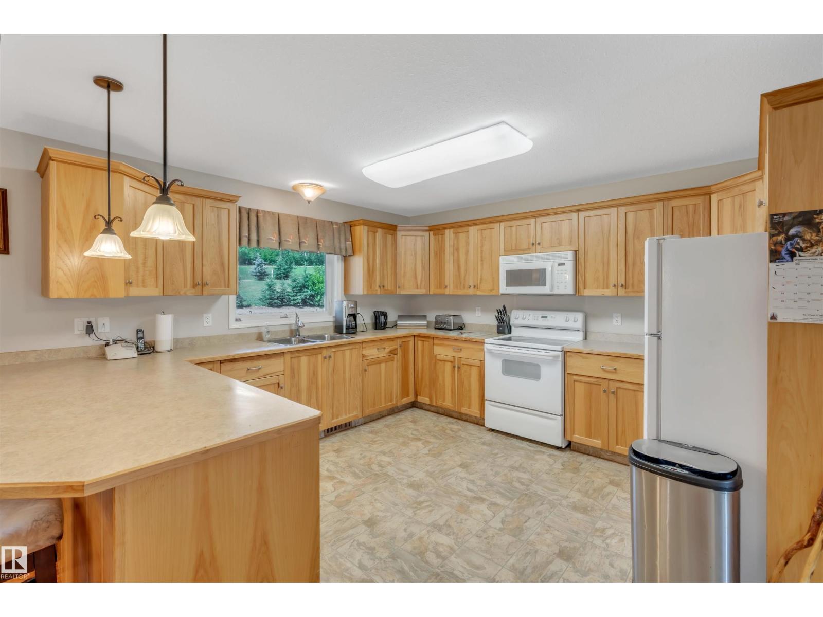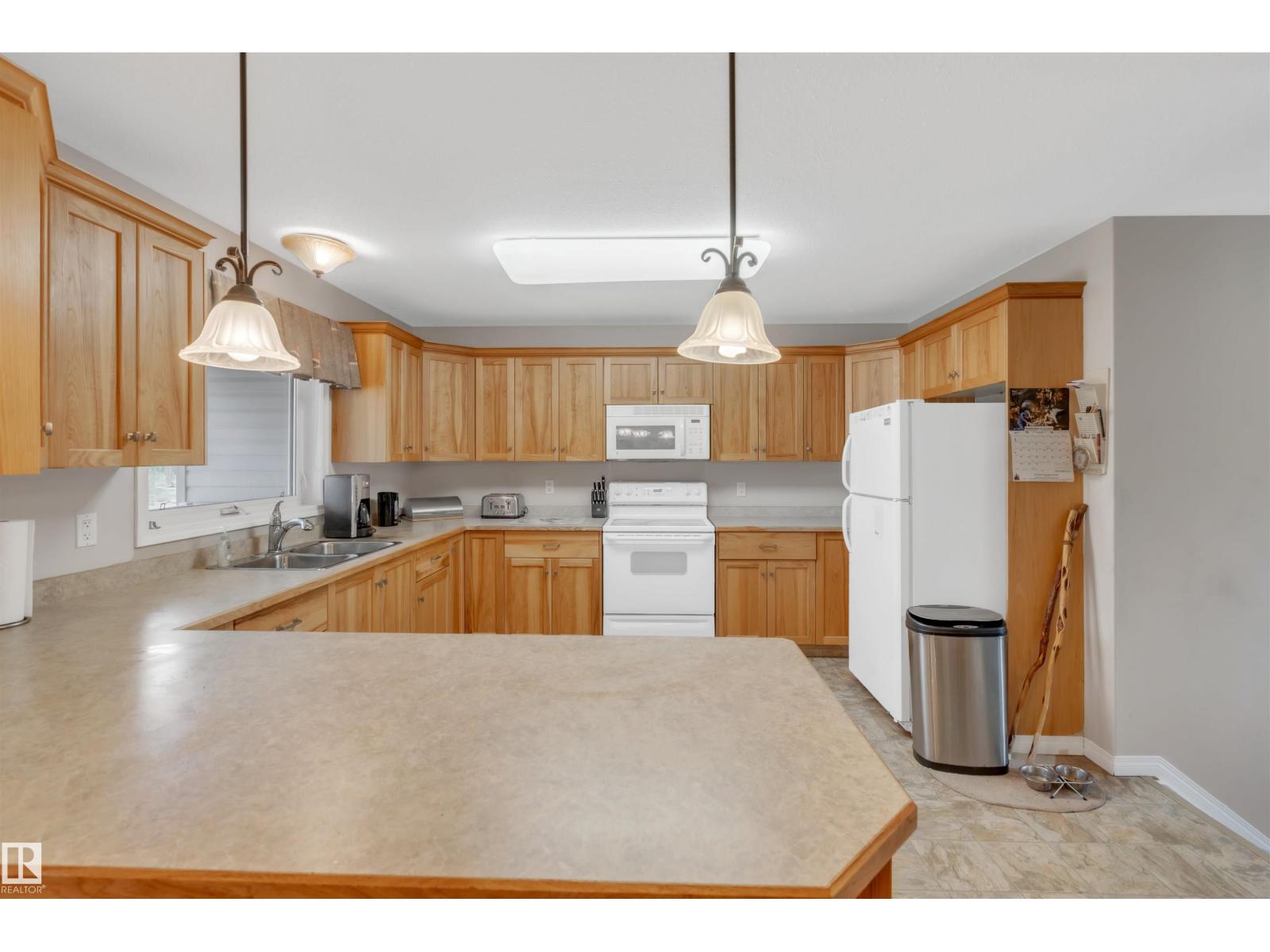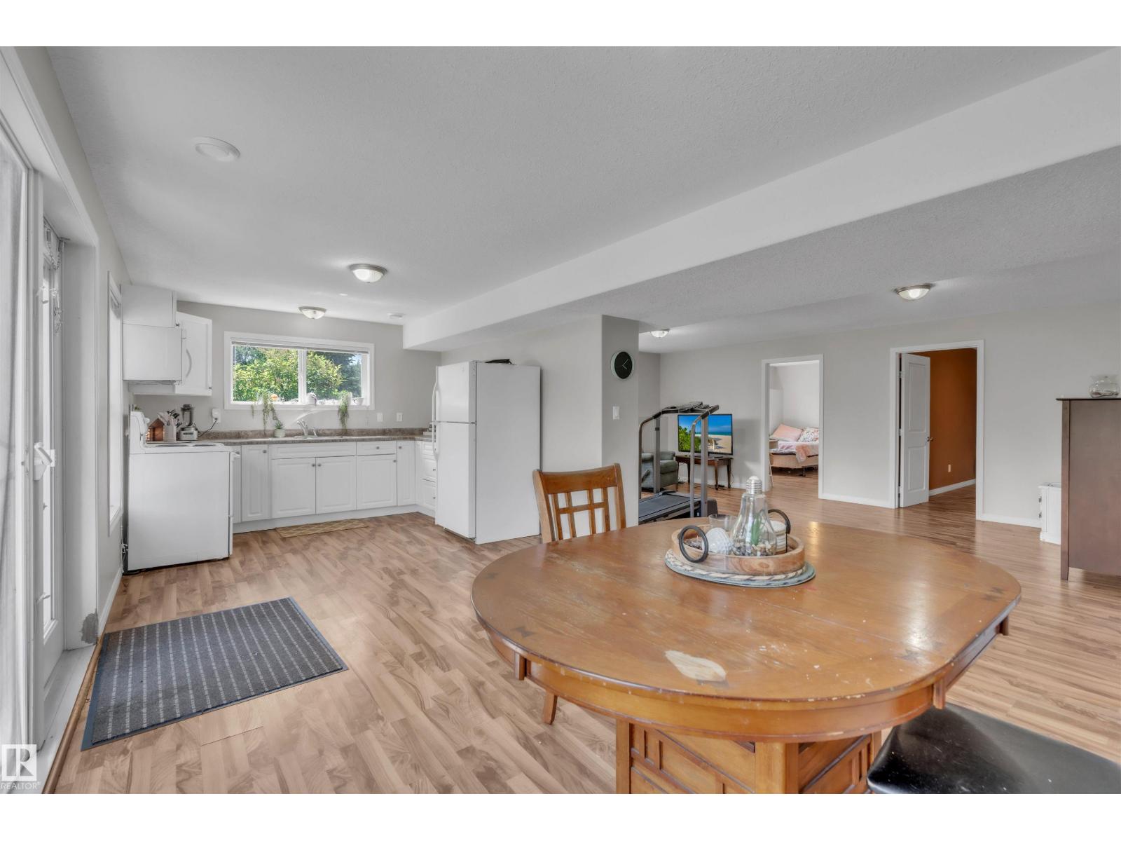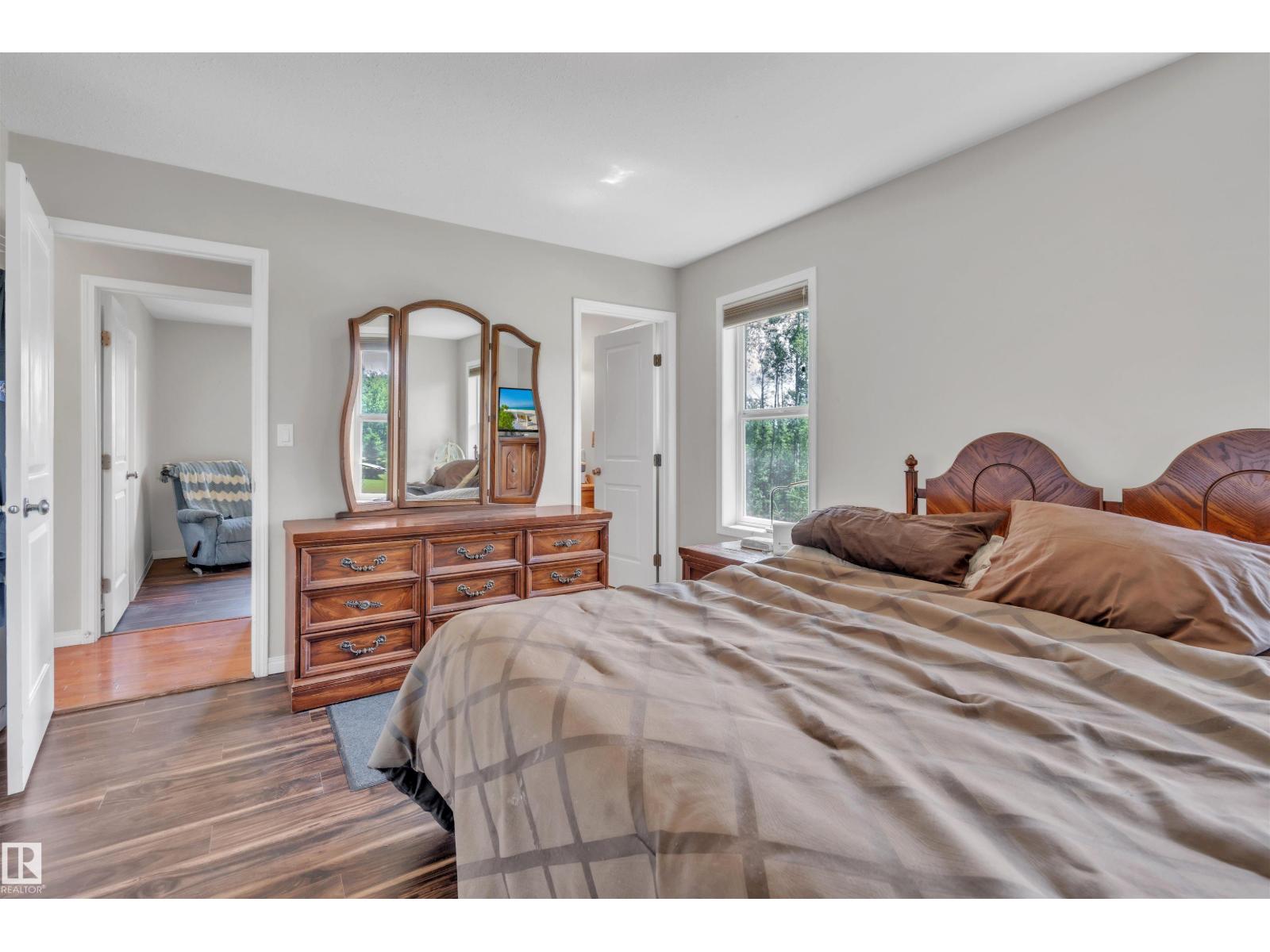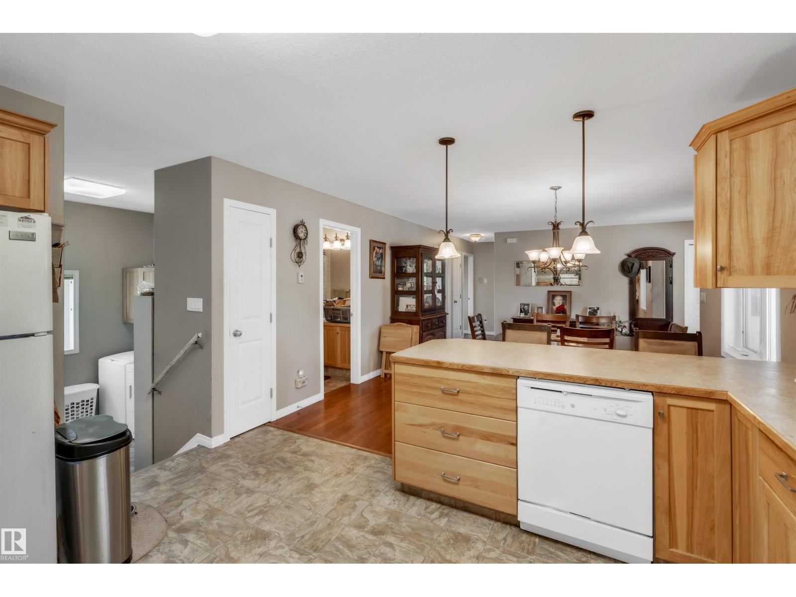 A custom-built original owner home, ideally located on 3.6 acres just a 10-minute drive from Cold Lake. As you enter, you have inviting hardwood floors that flow through the main level. The spacious living room features vaulted ceilings while seamlessly connecting to the open-concept dining and kitchen area. The kitchen showcases hickory cabinets and eat up area. The main floor provides practical living with three comfortable bedrooms, including a primary suite with a 4-piece ensuite, plus a second 4-piece bathroom. The walkout basement is a bright and welcoming space, offering a second kitchen, an additional bedroom, a dedicated office, a 3-piece bathroom, and a laundry area. There's in-floor heating throughout the basement, along with central air conditioning and efficient double-pane windows for the entire home. There's also an attached heated two-car garage, complemented by a detached triple-car garage (power but no heat) (id:63190)