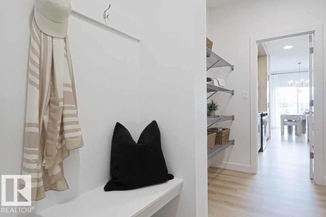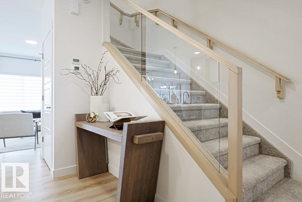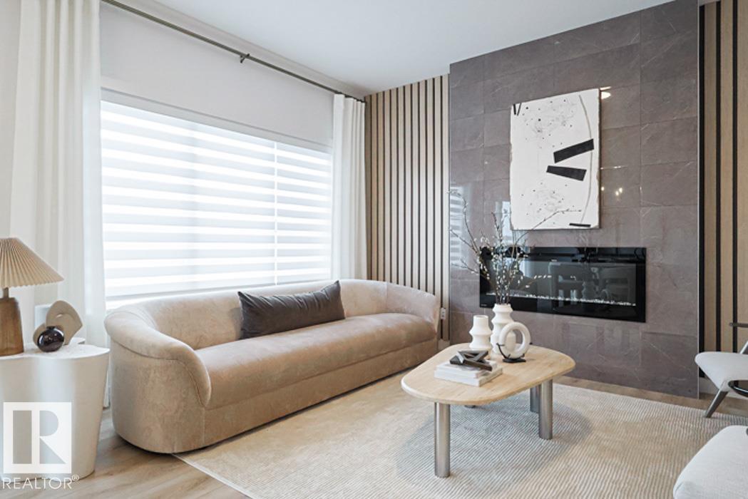 Built by Sterling Homes, this thoughtfully designed four-bedroom home offers a flexible layout for modern family living. The open main floor features 9-ft ceilings on the main level and basement, luxury vinyl plank flooring, and a separate side entrance for added versatility. A welcoming foyer includes a full bathroom with a stand-up shower and a main-floor bedroom—ideal for guests or a home office. The bright living room features an electric fireplace and large rear windows, flowing into a stylish kitchen with quartz countertops, a spacious island, a full-height backsplash, a built-in microwave, soft-close cabinetry, and a pantry. Patio doors lead to the backyard. Upstairs, the primary retreat offers a 5-pc ensuite with double sinks, tub, and glass walk-in shower, with the walk-in closet through the ensuite. A central bonus room, upper laundry, two additional bedrooms, and full bath complete the level. Includes upgraded railings, basement rough-ins, and double attached garage with floor drain. (id:63190)