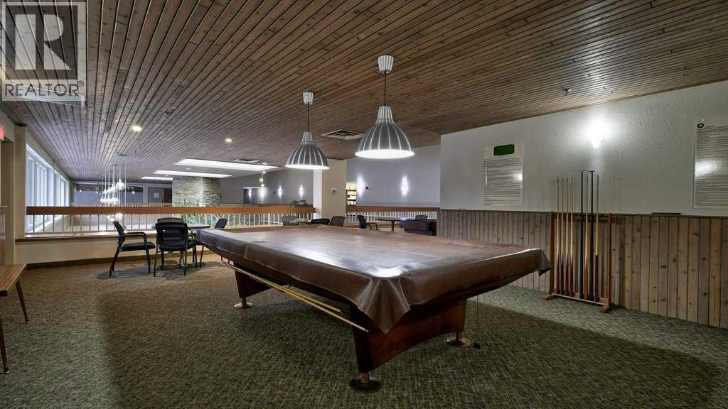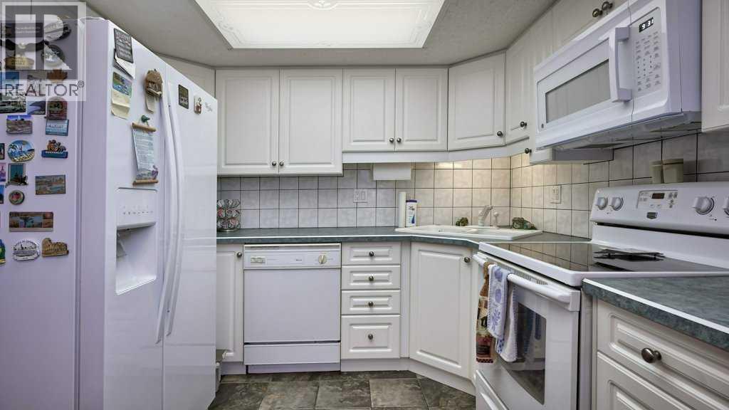 This top-floor, end-unit condo offers the ideal combination of space, privacy, and style. The spacious living and dining areas feature a cozy wood-burning fireplace with a gas log lighter, creating a warm and inviting atmosphere. Step outside onto the large deck, where you can relax and enjoy views of mature trees that provide extra privacy and tranquility. The kitchen is generously sized, perfect for preparing meals and hosting guests. Two well-appointed bedrooms include a master suite with a newly updated 3-piece ensuite. An additional 4-piece bathroom and a convenient in-suite laundry room complete the space. With updated laminate and tile flooring throughout, this condo offers a modern, fresh feel that's easy to maintain. The well-maintained building offers a range of excellent amenities, including a stunning lobby with a fireplace and sitting area, a fitness room with a sauna, a games room with shuffleboard and billiards, and a wonderful social lounge with a fully equipped kitchen and weekly coffee club. The library, meeting room, exterior sun deck, and lounge area provide even more opportunities to unwind and socialize. Additional perks include storage lockers and a very active volunteer group organizing social activities year-round. Bayshore Park is not only a great real estate investment but also a fantastic lifestyle choice. The professionally managed 25+ adult complex (no pets allowed) is nestled between Oakridge and Palliser, just steps away from the beautiful pathways at Glenmore Reservoir. You'll also find plenty of nearby amenities, including restaurants, medical offices, Co-op, Safeway, and more. Pick your possession date and move right in—this one won’t last long! (id:63190)