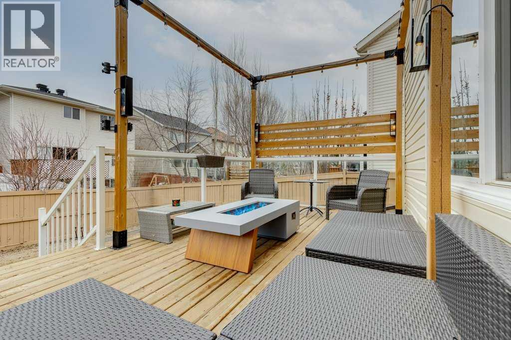 Welcome to the desirable, family-friendly community of Sagewood in Airdrie! This immaculate, 2-story original-owner home offers over 1,705 sq ft of well-designed living space on a quiet street, featuring 3 bedrooms and 3 bathrooms. Pride of ownership is evident throughout, with numerous updates and upgrades.The bright, open-concept main floor showcases a beautifully renovated kitchen complete with stainless steel appliances, sleek granite countertops, an island, ample cabinetry, a walk-in pantry and a cozy breakfast nook. Warm and inviting family room with a cozy fireplace. New luxury vinyl plank flooring runs throughout the main level. Upstairs, you’ll find a spacious primary bedroom with a walk-in closet and a 5-piece ensuite featuring a relaxing soaker tub. Two additional generously sized bedrooms and a convenient upper-level laundry complete the upper floor. The undeveloped basement is roughed in and ready for your creative vision.Step outside to an entertainer’s dream backyard, featuring an extended deck, pergola, gas line for BBQ, and a gas line fire pit. Outdoor LED lighting can be programmed year-round for any occasion. Additional updates include central A/C, fresh paint, a newer washer and dryer, updated lighting and a newer furnace.Ideally located close to schools, shopping, and pathways, with easy access to all amenities. Check out the 3D tour or book your private showing today! (id:63190)