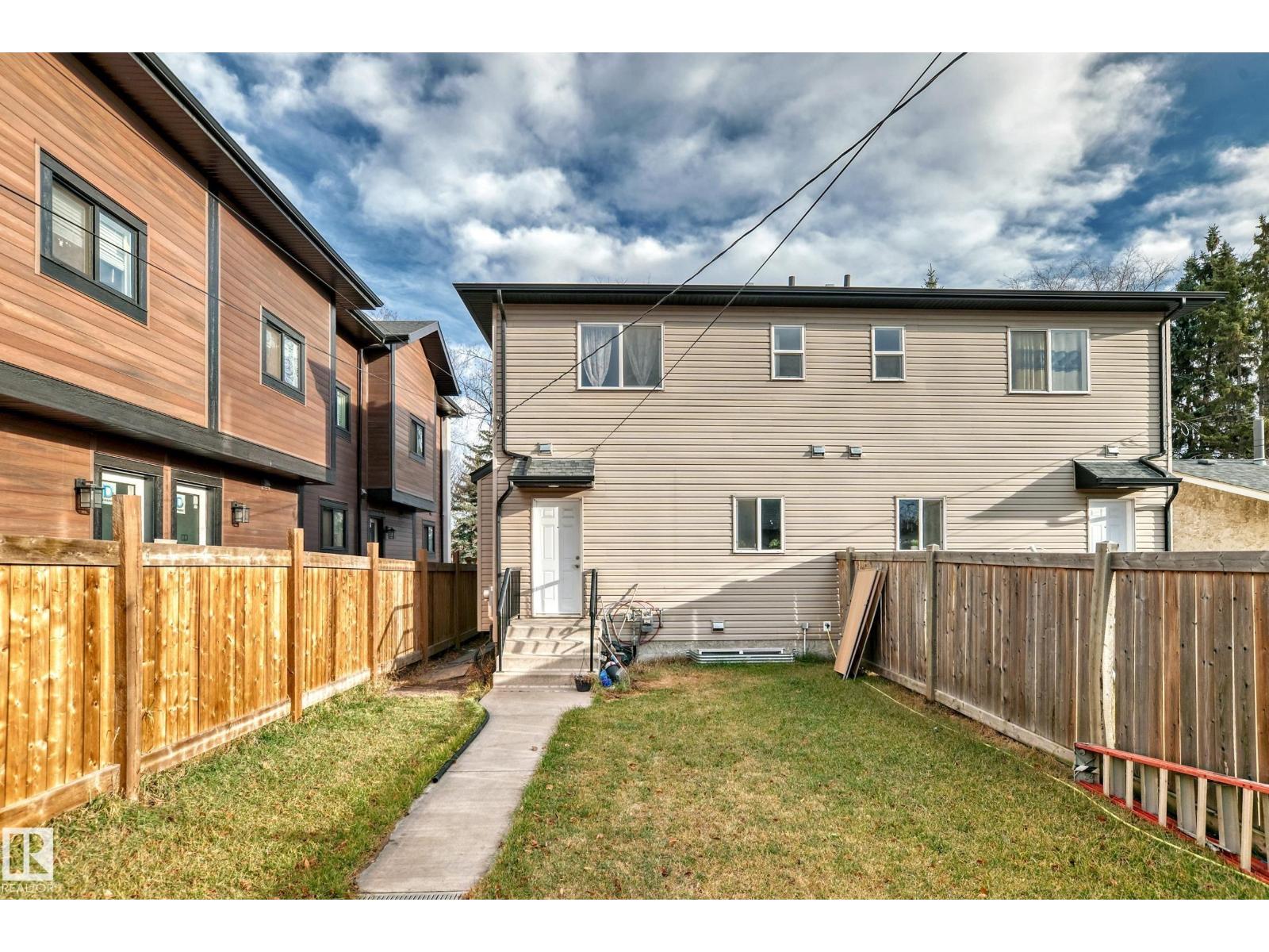 This 1585 sqft duplex with fully finished basement and SIDE ENTRANCE is located minutes from downtown, NAIT, kingsway mall and the LRT with easy access to major roadways, school, shopping and other amenities. Main floor features open concept living with dark maple kitchen, granite countertop, lots of cabinataries, gas fireplace, stainless steel appliances, 9ft ceiling and big island. Upstairs, a big size master bedroom offers walking closet with wood built shelves and 4 pc-en-suite. There are other two decent size bedrooms and another 4 pc bathroom. Fully finished basement with side entrance has kitcchen, living, dining area and 2 bedrooms as well as 4pc bath. Ideal for first time home buyer or investor. GOOD LUCK! (id:63190)