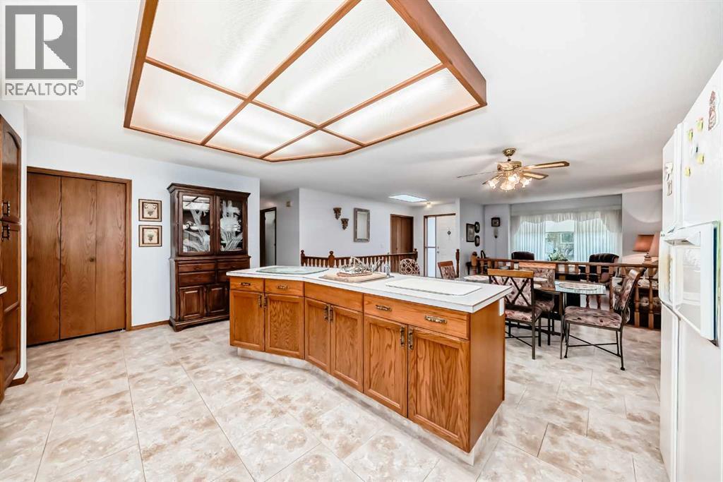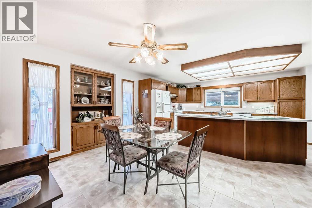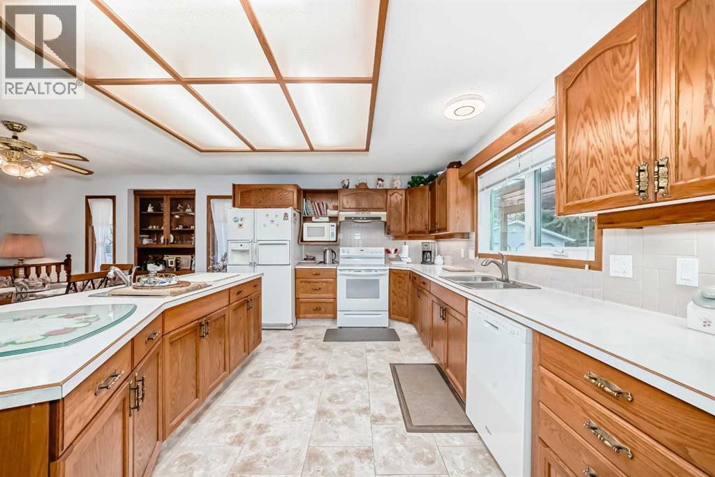 Charming Bungalow for Sale in Nanton – Perfect Family Home or family needing everything on one level.This well maintained bungalow boasts 4 spacious bedrooms and 2 pce bathrooms, main floor bathroom is accessible from from the master bedroom. With nearly 1,400 sq ft of thoughtfully designed living space, this home offers a perfect blend of comfort and functionality. Step inside to discover an inviting open concept main level that seamlessly connects the large kitchen, dining, and living areas. The kitchen is a chef's delight, featuring an island with a convenient sink – perfect for meal prep and entertaining. Bright new windows flood the space with natural light, while upgraded flooring throughout the kitchen and living room enhances the overall aesthetic. The practicality of a main floor laundry room adds ease to everyday living. Downstairs, the basement features a walk-up design that leads to a spacious rec room and additional living area, making it an ideal space for family gatherings or a cozy movie night. You will also find two generous bedrooms and a well-appointed 4-piece bathroom, while the in-floor heating ensures warmth and comfort during the colder months. Enjoy peace of mind with new hot water tanks that provide efficient service for all your needs. The garage is a true standout, featuring high ceilings for additional storage or an ideal workspace for car enthusiasts. It is equipped with heating that is vented directly from the home’s furnace, providing a comfortable environment year-round. Roof was replaced two years ago. The outside is just as impressive as the inside offering a patio with pergola, garden area, RV access, beautifully landscaped with privacy. Don't miss out on this incredible opportunity to own a versatile and charming bungalow in Nanton. Schedule a viewing today and experience all that this fantastic property has to offer! (id:63190)