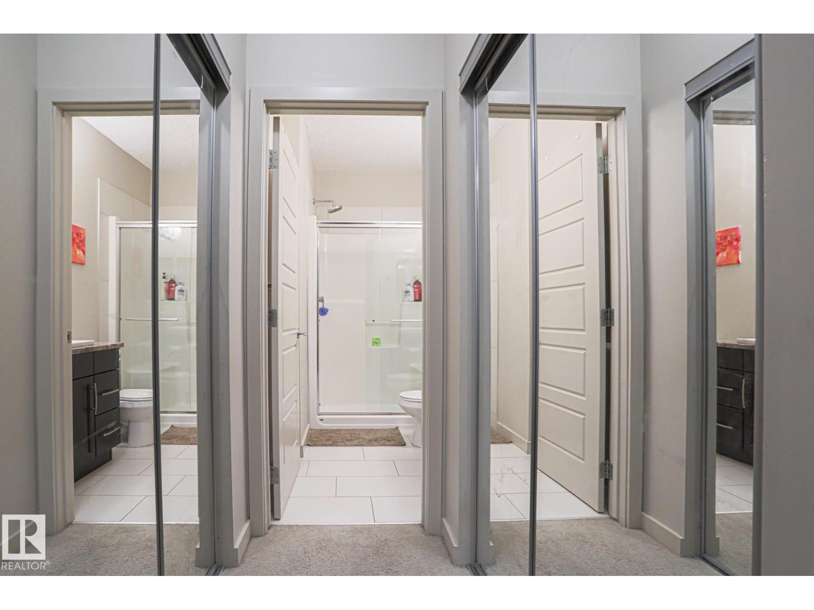 This spacious 2 bed 2 bath condo at Ambleside is conveniently located near many major amenities in top selling Windermere community. This unit offers TWO TITLED Heated Underground Parking stalls and a storage cage. This unit comes with an open concept floor plan, two spacious bedrooms on either side of living room for added privacy, 9-ft ceiling, stainless steel appliances (only unit in building with water line to fridge), walk-in pantry, in-suite laundry, big west facing balcony with a gas line for BBQ and unobstructed views. Spacious primary bedroom includes a 3-pc Ensuite with a standing shower as well as walkthrough his and hers closets! Heat and water/sewer are included in the monthly condo fees. This modern building includes a guest suite, a fitness room and a social room. Move in ready! (id:63190)