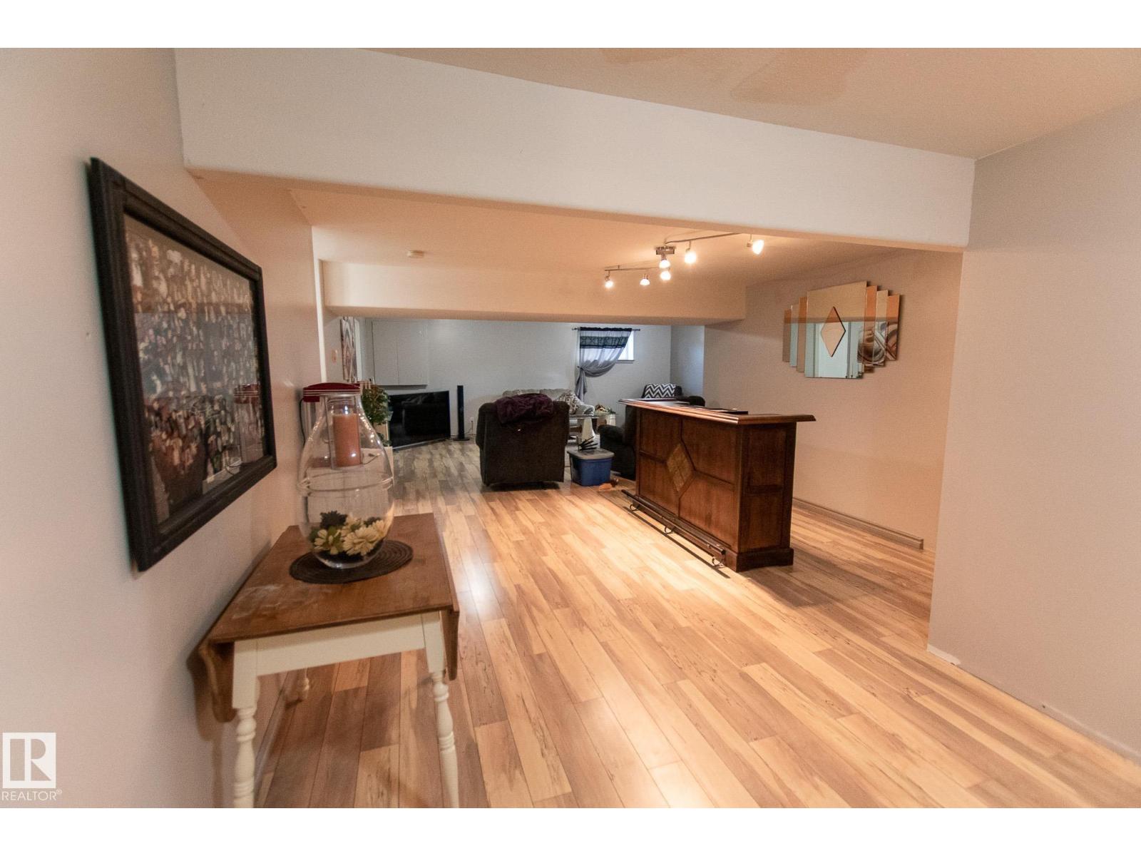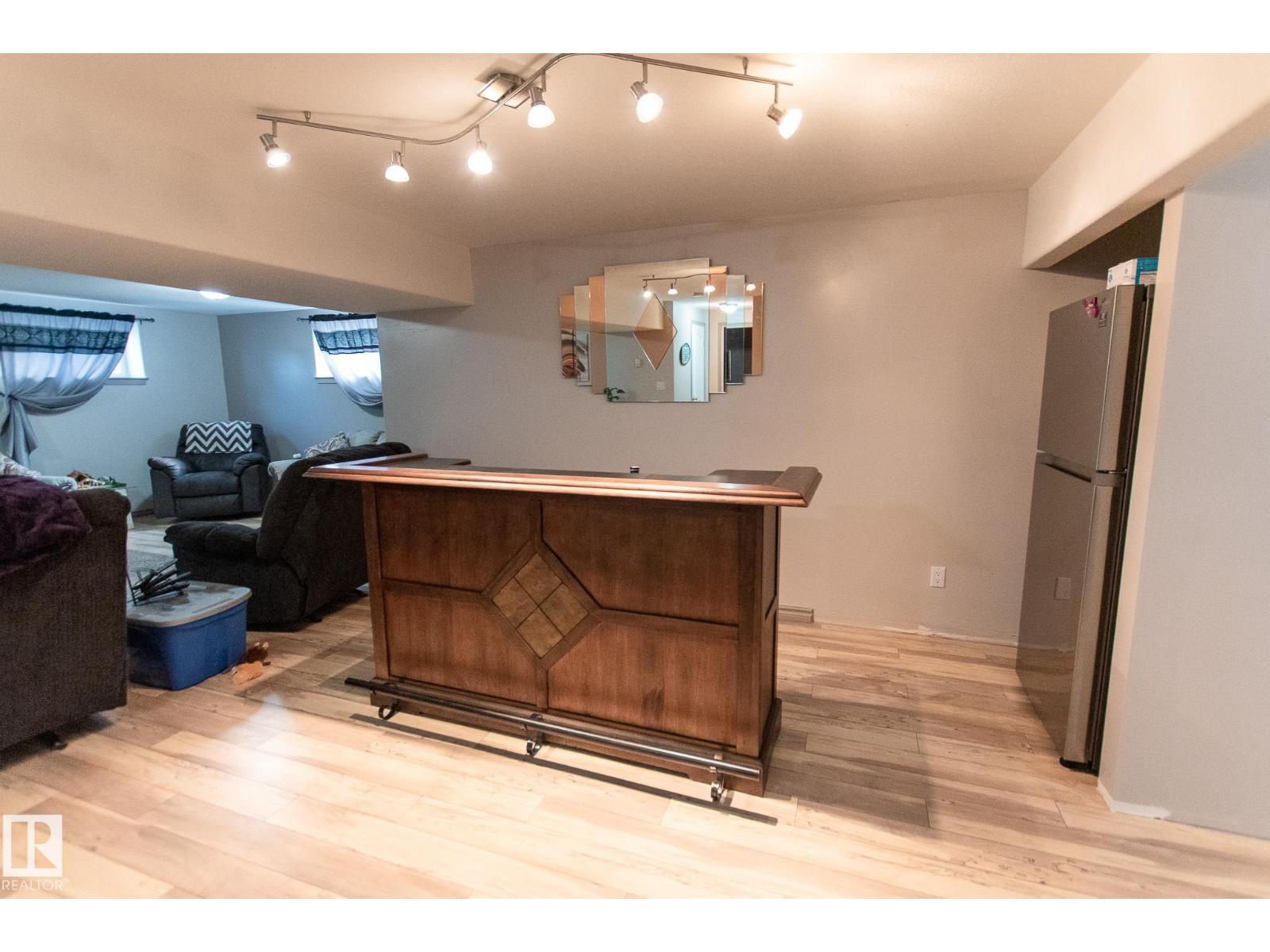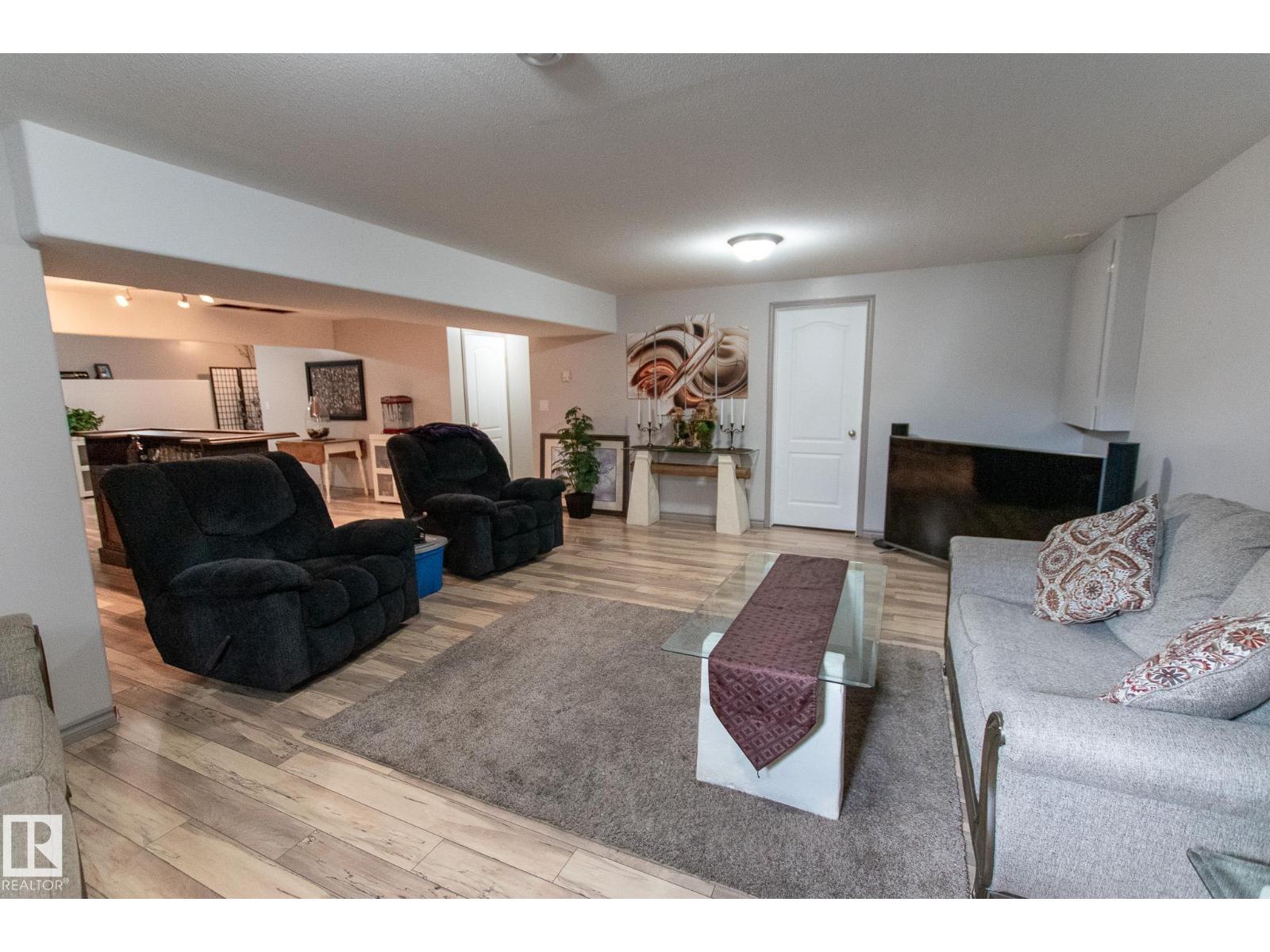 This Bungalow is located steps away from a middle school and outdoor recreational space! The main level offers a spacious eat in kitchen with solid wood cabinets and vaulted ceilings. Off of the living room you have access to the huge deck with a stone dry bar overlooking the fully fenced and landscaped back yard. The living room also features vinyl plank flooring, and vaulted ceilings with solar tubes that add plenty of extra natural light. 3 bedrooms including a spacious master with a walk in closet and 4pc ensuite bath, main floor laundry with garage access, and a 4pc bath complete the main level. The fully finished basement offers in floor heat, huge rec room, 2 more bedrooms, 3 pc bath, and a storage room. There is plenty of parking with the double attached heated garage, concrete driveway, and graveled parking in back yard! (id:63190)