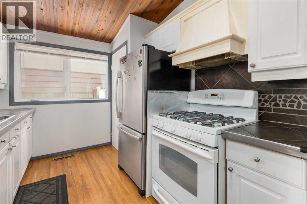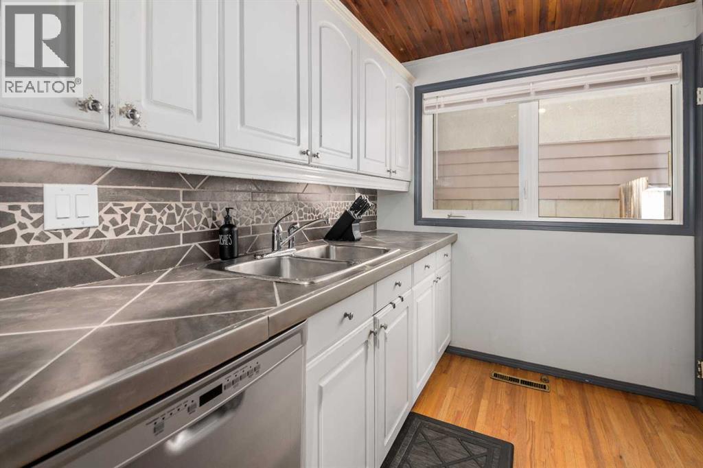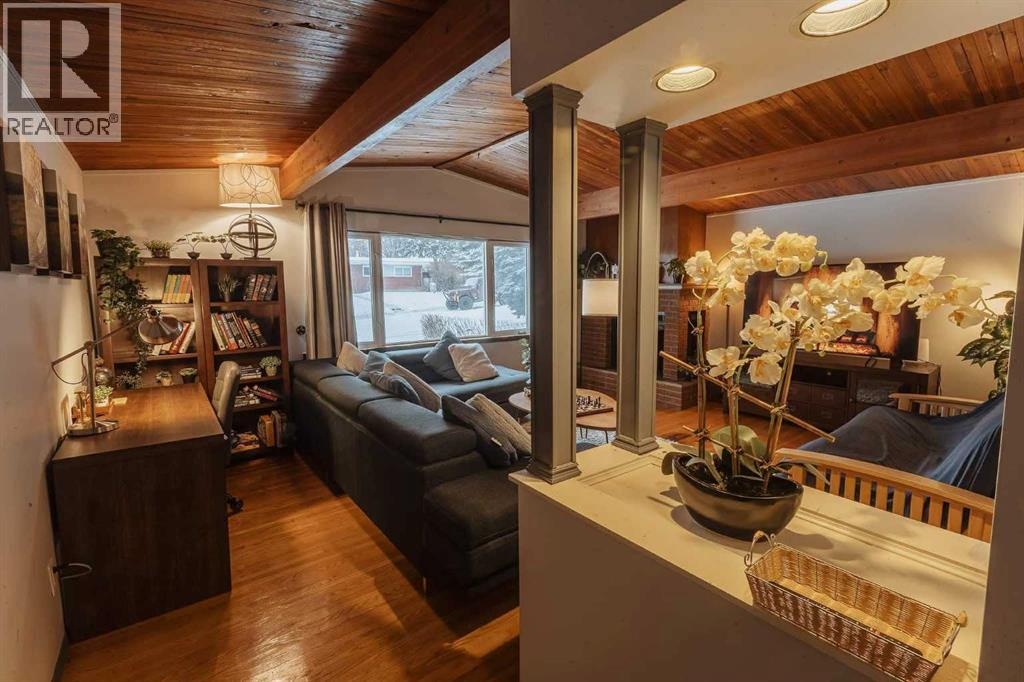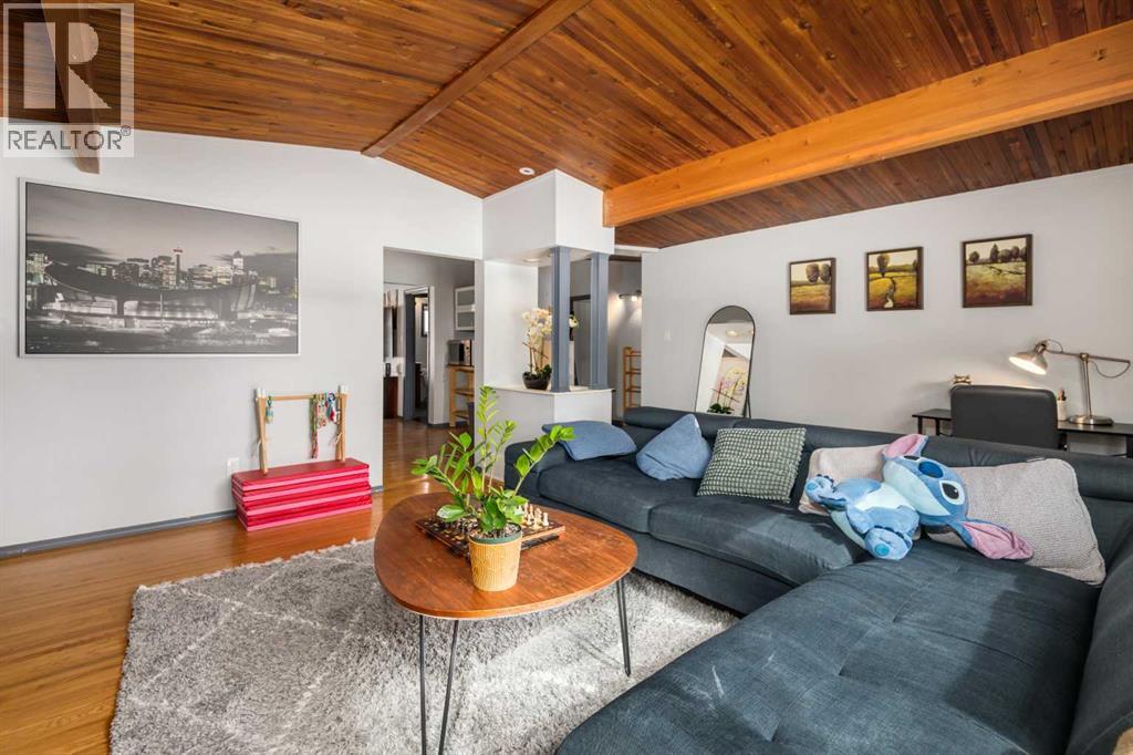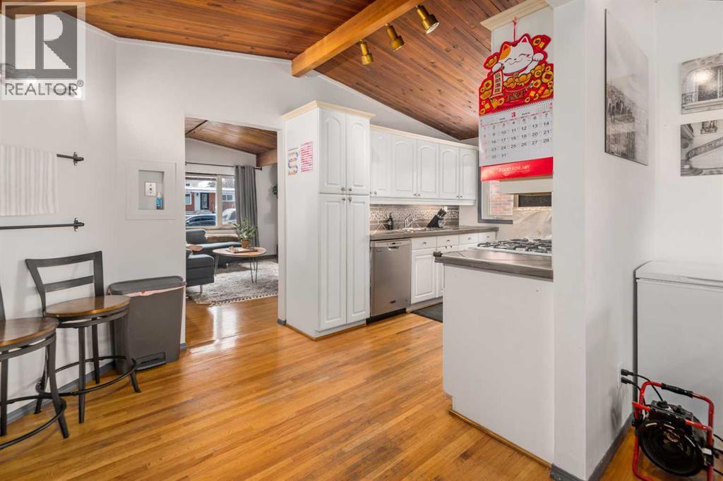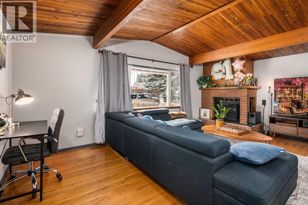 Beautiful character home located in the desirable community of Southwood, offering over 1,900 sq ft of developed living space. With its fully finished BRICK EXTERIOR and newer roof, this home presents great curb appeal and long-term value.The main floor features a spacious and inviting family room with a cozy fireplace, complemented by hardwood and tile flooring throughout. VAULTED CEILINGS with exposed beams add a warm, timeless feel, while the kitchen offers a gas stove, under-cabinet lighting, and ample cupboard space, along with a bright eat-in dining nook.The main level includes two generously sized bedrooms and a fully updated bathroom. At the rear, a versatile room with French doors—previously used as a third bedroom—can easily be converted back or used as a formal dining room or home office.The basement includes an illegal suite, providing additional flexibility with a newer kitchen, updated flooring, a large living/recreation area, and three bedrooms—ideal for extended family or other potential uses.Over the years, several KEY UPDATES have been completed, including WINDOWS, and a NEW FURNACE (2026).Conveniently located within WALKING DISTANCE to the LRT, shopping such as Superstore and Walmart, and a variety of restaurants, this home offers both comfort and accessibility. (id:63190)