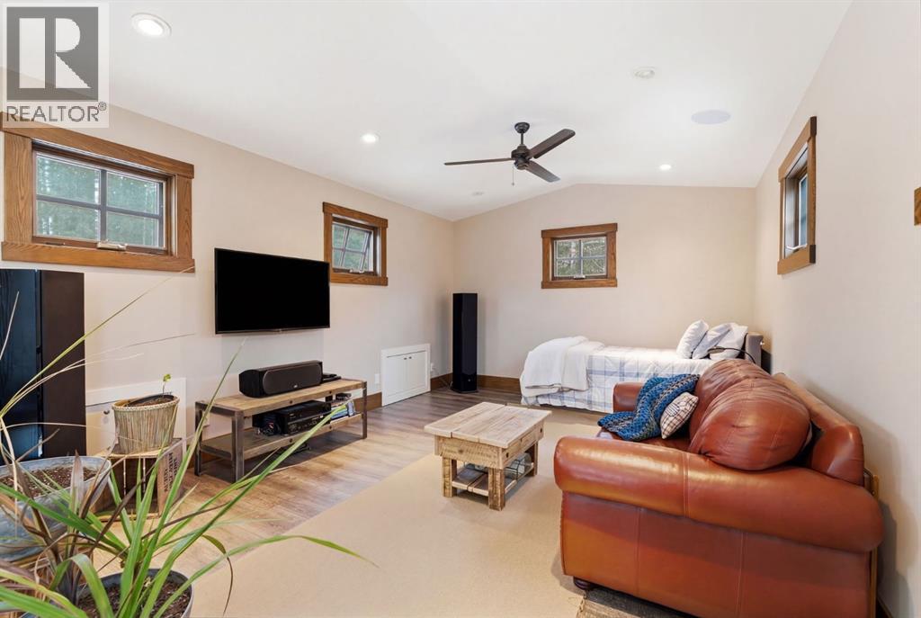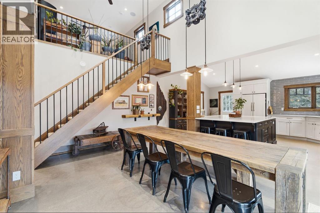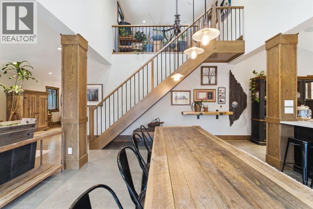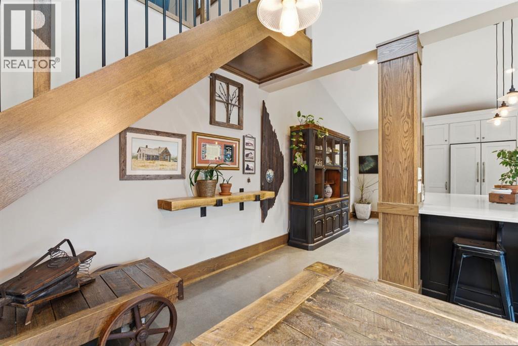 Tucked quietly among the trees and set on four beautifully treed acres, this one-of-a-kind barndominium retreat offers the rare opportunity to live fully immersed in nature — without sacrificing comfort, warmth, or thoughtful design. Whether you are searching for a full-time sanctuary or the ultimate home-away-from-home escape, this property delivers an experience that is difficult to replicate.Built slab-on-grade with efficient in-floor heat, the home offers cozy, grounded living year-round. Inside, rustic textures and natural finishes create a welcoming atmosphere where every space feels intentional and connected to the surrounding landscape. Expansive windows invite the outdoors in, while the layout encourages both quiet solitude and meaningful gathering.A wrap-around porch extends your living space beyond the walls — the perfect setting for morning coffee, evening conversations, or simply listening to the wind move through the trees. This property is not just a place to live — it is a place to breathe.Adding tremendous flexibility and value is the separate detached (LEGAL) carriage suite, thoughtfully positioned above a converted garage space. Ideal for guests, extended family, potential rental income, or creative studio use, this additional dwelling enhances both lifestyle and investment potential.Surrounded by privacy and natural beauty, yet conveniently located just minutes to Water Valley, 12 minutes to Cremona, and close to the renowned Fallen Timber Meadery, this location offers the perfect balance of seclusion and accessibility. Adventure, recreation, and small-town charm are all within easy reach.This is more than a property — it is an oasis for those seeking space, stillness, and connection to the land. (id:63190)