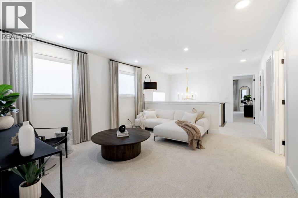 Welcome to the custom Saffron II by Shane Homes, a pre-construction home backing onto greenspace and a pond, offering a rare combination of location, space, and flexibility. The main floor features a spacious living room with electric fireplace, a cozy sitting nook, and a versatile lifestyle room with a closet and full bathroom, ideal for guests. The kitchen includes a spice kitchen, and the rear vinyl deck provides a great space to enjoy the views. Upstairs offers 4 bedrooms plus a central family room. The primary bedroom includes a walk-in closet and a 5-piece ensuite, along with the convenience of an upper floor laundry room. The walkout basement backs onto the pond and includes a concrete patio. It is ready for future development, with options to add additional living space at an extra cost.This home is loaded with upgrades including James Hardie siding, tiled bathrooms, undermount sinks, cabinet risers, and more. (id:63190)