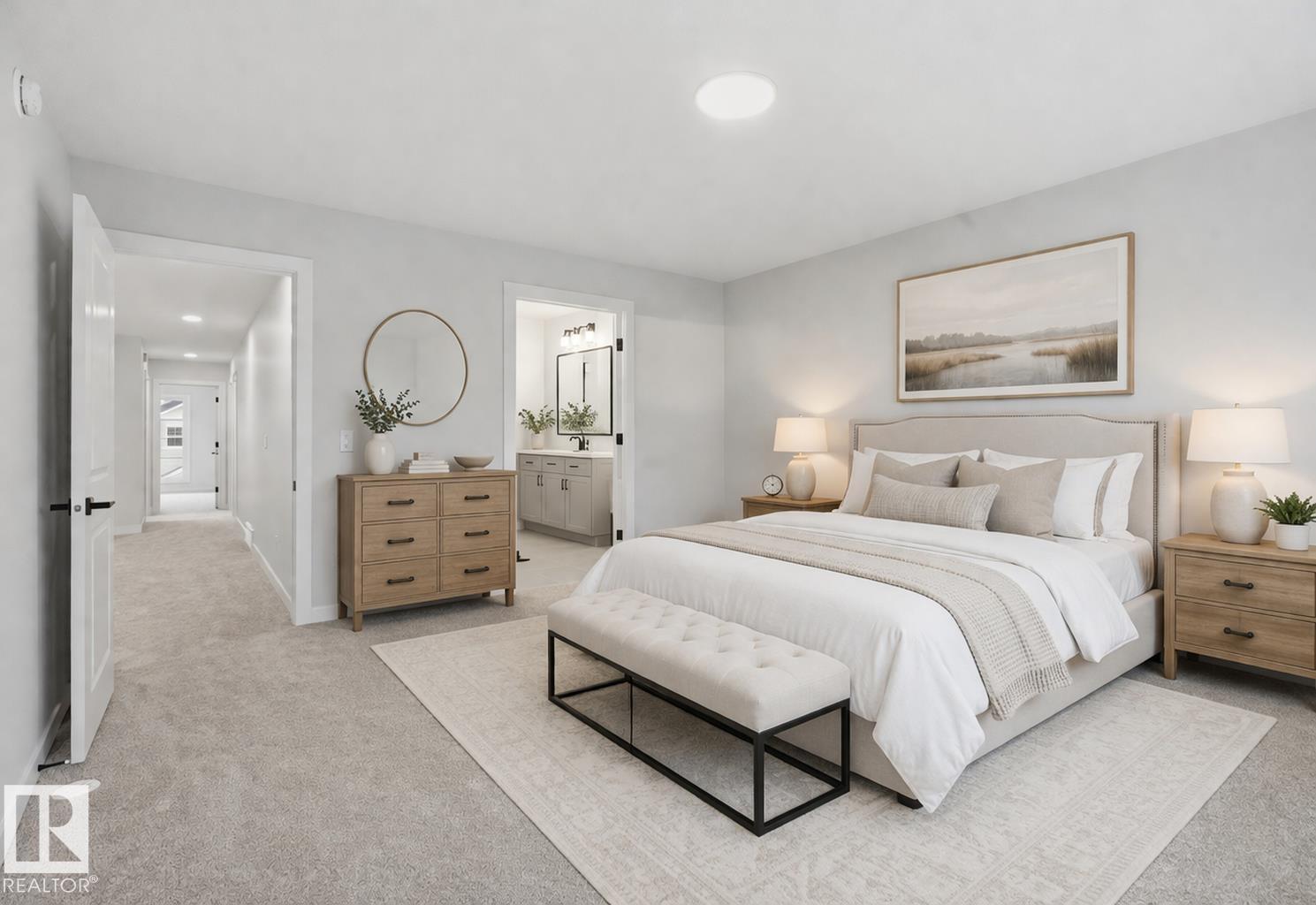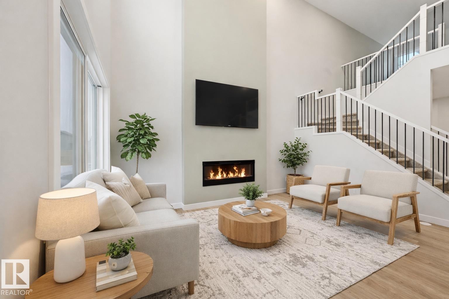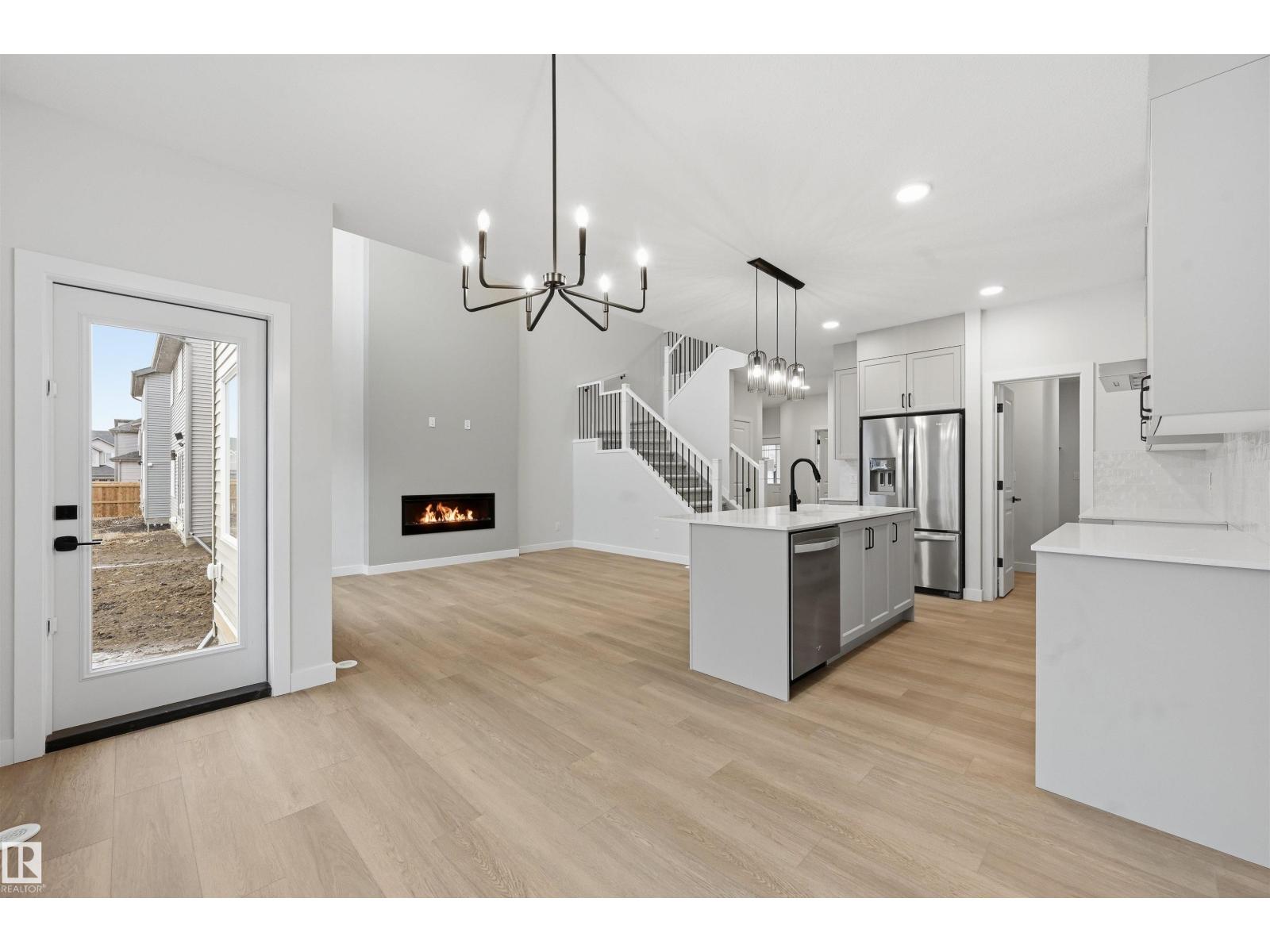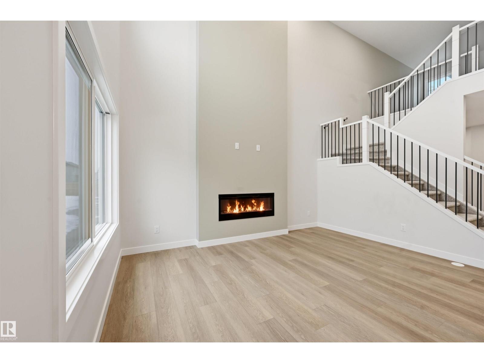 Quality built by Landmark Homes (with nearly 50 years experience in Edmonton)! Boasting nearly 2,100sf this popular floor plan includes a MAIN FLOOR BEDROOM & FULL BATH plus 3 bedrooms upstairs. Bright interior with OPEN-TO-BELOW living room with floor-to-ceiling feature wall & electric fireplace. Kitchen upgrades include full height & soft-close cabinetry, counter-to-cabinet backsplash & a walk through pantry. Plush carpeted 2nd level w/ bonus room, laundry room & large primary retreat with 5pc ensuite & walk-in closet. Features include: SIDE ENTRANCE, 9' ceilings, ENERGY STAR STAINLESS STEEL APPLIANCES including washer & dryer, LVP flooring, cast iron spindle railings & more. With a focus on innovative & energy efficient homes, find features such as tankless hot water heater, high velocity heating system, heat recovery ventilator, 3-stage air purification system, triple pane windows, R50 insulation, spray foam in garage, frost wall in basement & more. See the difference, feel the difference! (id:63190)