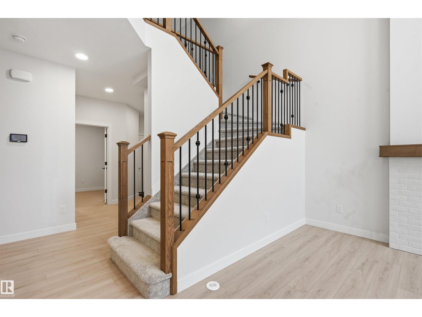 Quality built by Landmark Homes! Modern design & finishes w/ warm wooden accents create an inviting space! This 2,100sf popular floor plan includes a MAIN FLOOR BEDROOM & FULL BATH plus 3 bedrooms upstairs. Kitchen upgrades include full height & soft-close cabinetry, counter-to-cabinet backsplash & a walk through pantry. Bright interior w/ OPEN-TO-BELOW living room (floor-to-ceiling feature wall & electric fireplace too). Plush carpeted 2nd level w/ bonus rm, laundry rm & large primary retreat w/ 5pc ensuite & walk-in closet. Features include: SIDE ENTRANCE, 9' ceilings, ENERGY STAR STAINLESS STEEL APPLIANCES including washer & dryer, LVP flooring, cast iron spindle railings & more. With a focus on innovative & energy efficient homes, find features such as tankless hot water heater, high velocity heating system, heat recovery ventilator, 3-stage air purification system, triple pane windows, R50 insulation, spray foam in garage, frost wall in basement & more. See the difference, feel the difference! (id:63190)