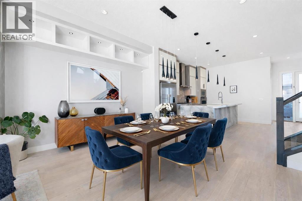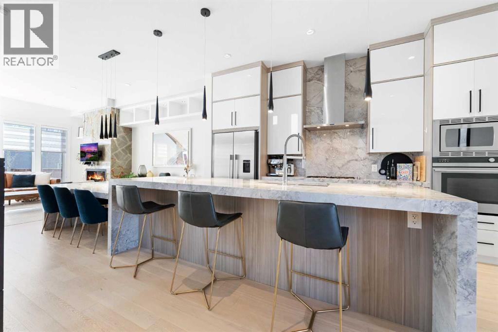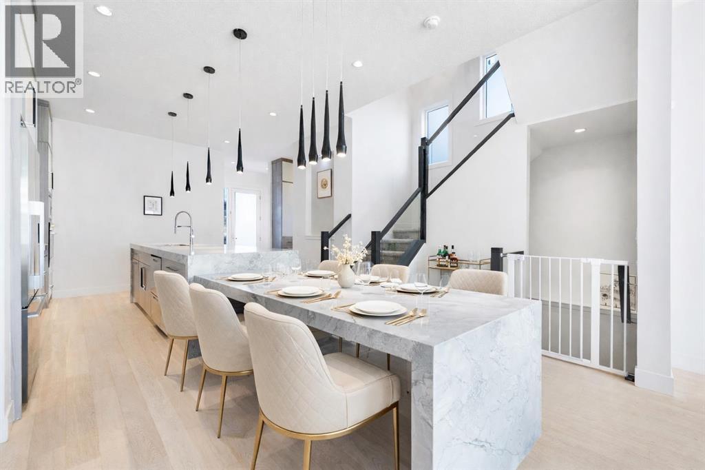 Welcome to this beautifully designed semi-detached infill located in the highly sought-after community of Crescent Heights. Offering over three levels of thoughtfully crafted living space, this 4-bedroom, 3.5-bathroom home blends modern design with everyday functionality—all just minutes from downtown Calgary. The main floor showcases impressive 10-foot ceilings and a bright, open-concept layout, complete with a dedicated office—perfect for working from home. The chef-inspired kitchen is a true focal point, featuring stunning waterfall quartz countertops, quartz dining area, quartz back splash and ample space for both entertaining and daily living. Upstairs, you’ll find 9-foot ceilings with 3 spacious bedrooms including a well-appointed primary retreat, while the fully developed basement adds even more versatility with a professionally installed projector system, wet bar, 9-foot ceilings and an additional bedroom—ideal for guests or extended family. Enjoy summer days on the sunny south-facing deck and take advantage of year-round comfort with central air conditioning. The double detached garage provides secure parking and additional storage. Perfectly positioned close to schools and post-secondary institutions, this home also offers quick access to Edmonton Trail and Centre Street North. Enjoy being just 5 minutes to downtown and only minutes from some of Calgary’s most iconic destinations, including the Calgary Zoo, Telus Spark Science Centre, Rotary Park, and Prince’s Island Park—offering the perfect balance of urban convenience and outdoor lifestyle. (id:63190)