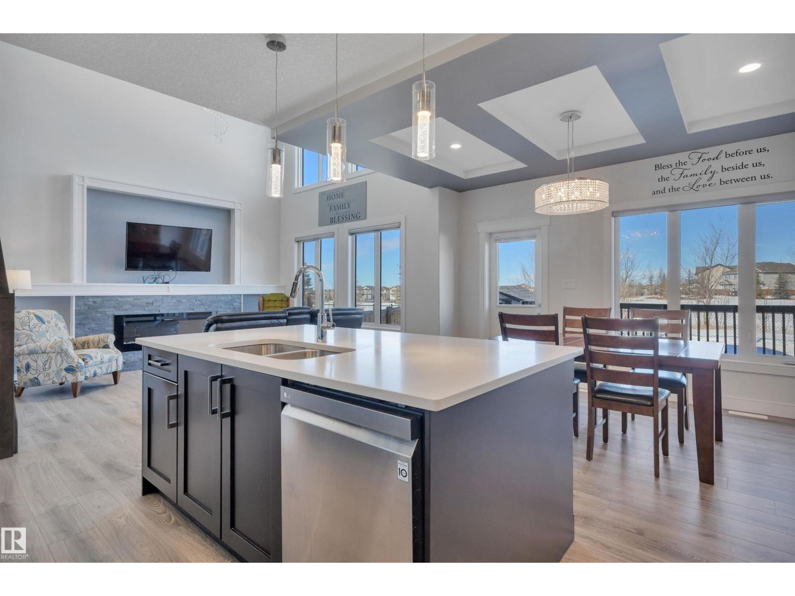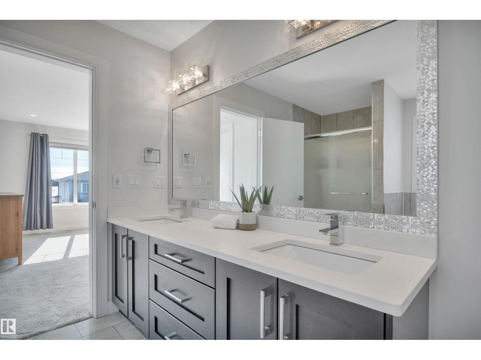 Experience the height of modern living in this BETTER THAN NEW 2300sq ft FULLY FINISHED 2 storey BACKING GREENSPACE in the family friendly community of Suntree. Meticulously modelled, this home offers a seamless blend of style & function with 3+1 bedrooms + den, 3.5 baths & OVERSIZED 22'x28.5' HEATED double attached garage! Open concept layout with attractive finishings & tons of natural light. A gourmet kitchen with quality cabinetry & quartz countertops overlooking the great room featuring electric fireplace with stone surround. Main floor den behind French doors & walk-thru pantry to mudroom with laundry. Bonus room is open to below, creating an airy feel that leads to 3 spacious bedrooms, including primary suite with walk-in closet & spa-like 5pc ensuite. Basement offers spacious family room, impressive 4th bedroom & stylish 3pc bath. Tons of storage, built-in closet organizers & custom zebra shades throughout, this home truly has it all for your family. Easy access to parks, walking trails & schools. (id:63190)