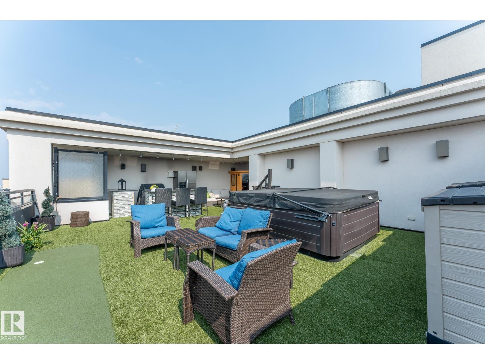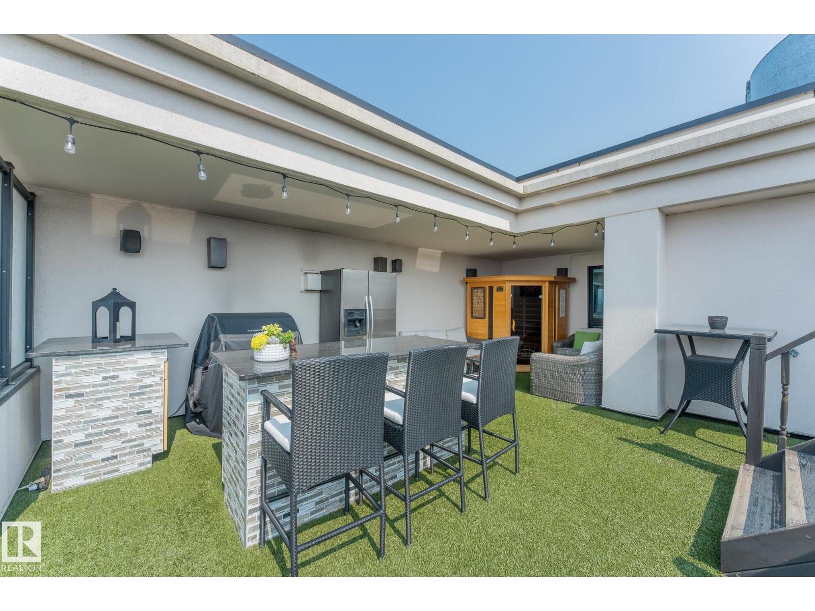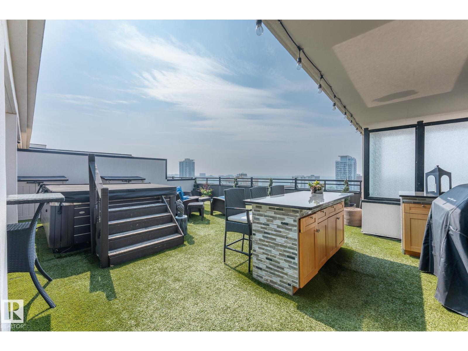 A statement in elevated urban living - this one-of-a-kind 2-level PENTHOUSE RESIDENCE offers a rare blend of space, privacy, and design in the heart of downtown. Defined by soaring ceilings, expansive windows, and refined finishes, the main living area is anchored by a chef’s kitchen with a massive granite island, gas range, and wine cooler - designed for effortless entertaining. The upper level is a private primary retreat featuring a double-sided fireplace, spa-inspired ensuite with steam shower and soaker tub, and walk-in closet. A bonus loft adds flexibility for work or relaxation. The showpiece is your EXCLUSIVE PRIVATE ROOFTOP TERRACE - an extraordinary outdoor escape with bar, hot tub, infrared sauna, putting green, and sweeping skyline views. The main floor also offers 2 additional bedrooms, one with its own ensuite plus an additional bathroom for guests. 3 TITLED PARKING STALLS underground complete this rare opportunity to own a true rooftop residence in the sky. (id:63190)