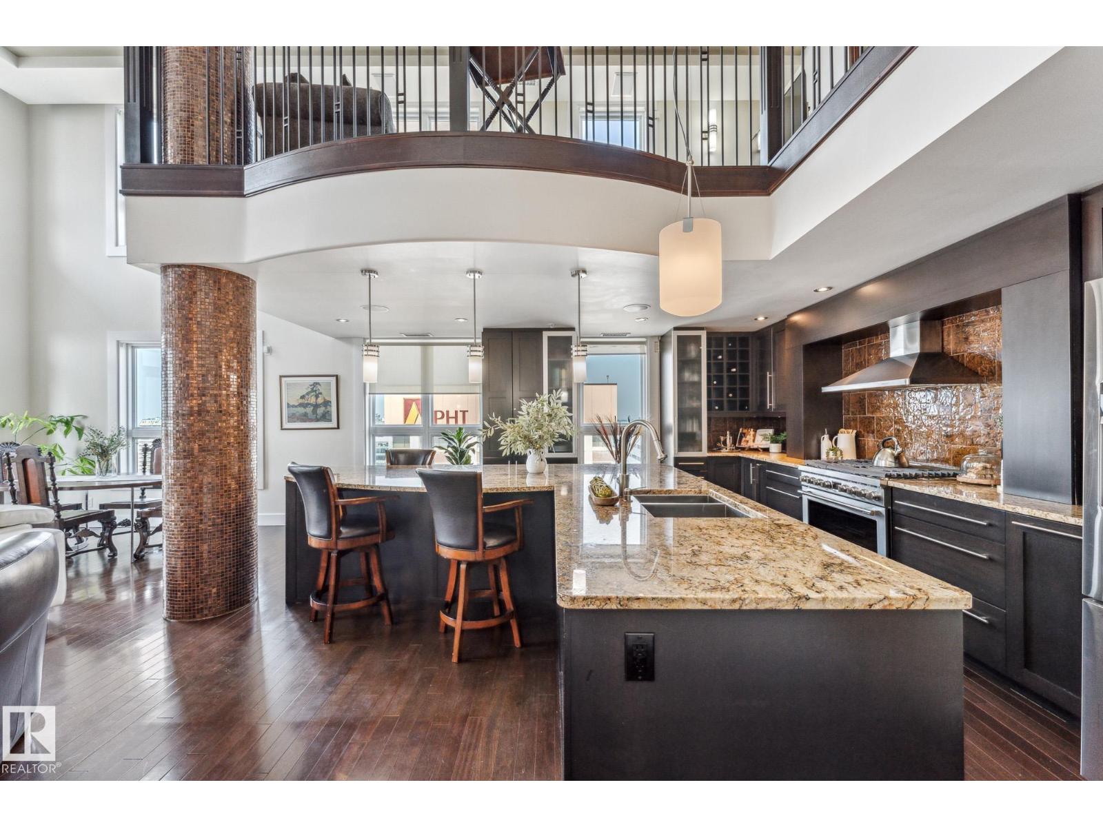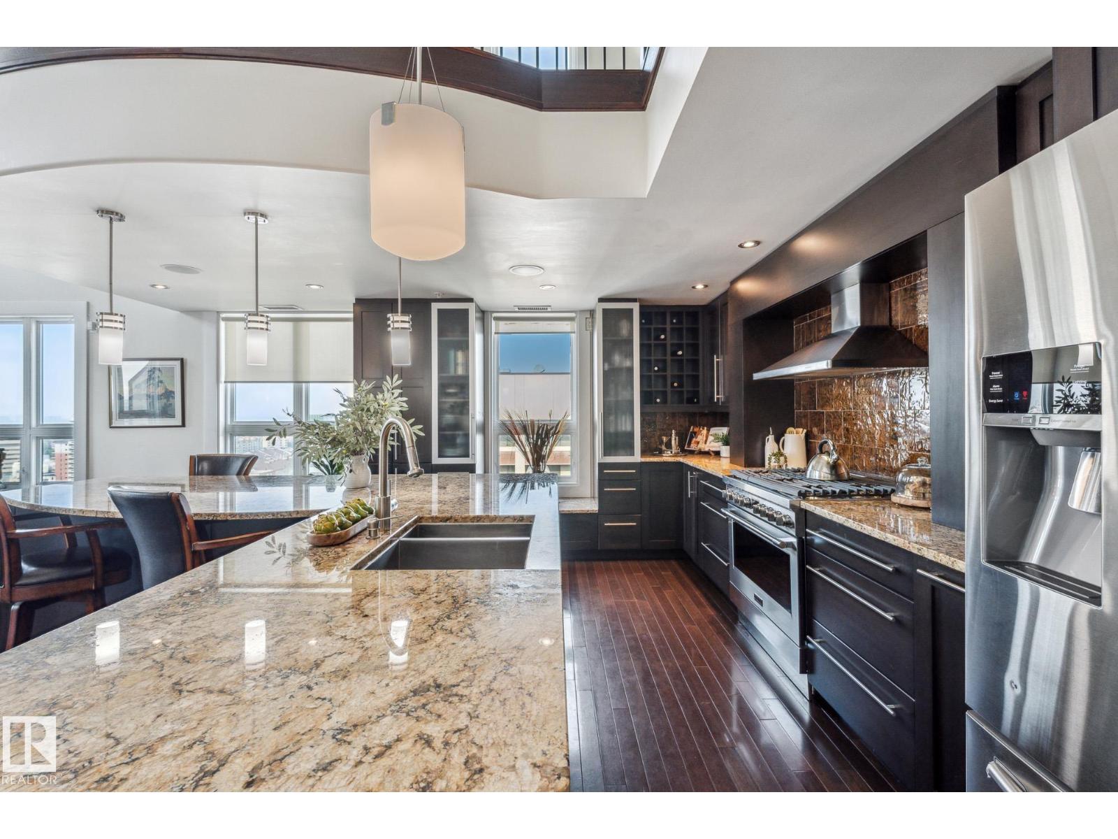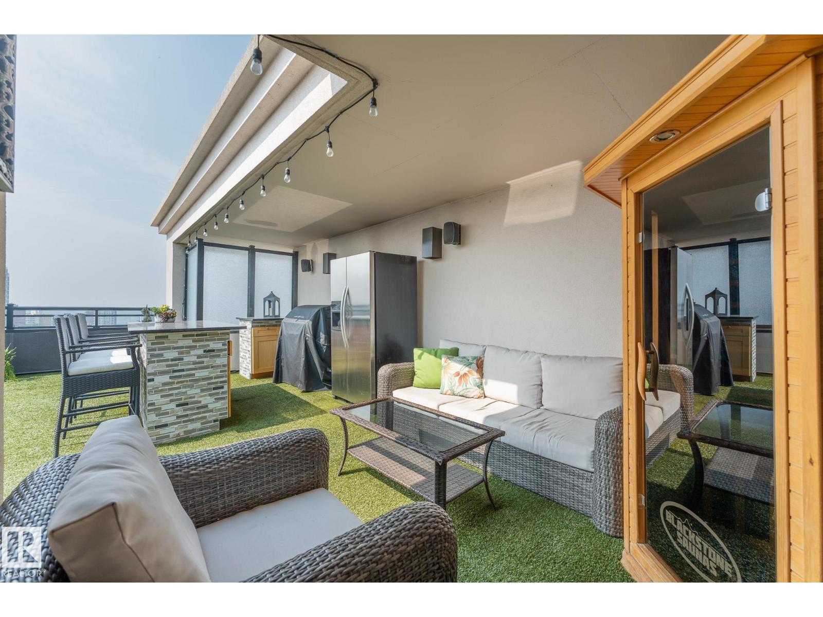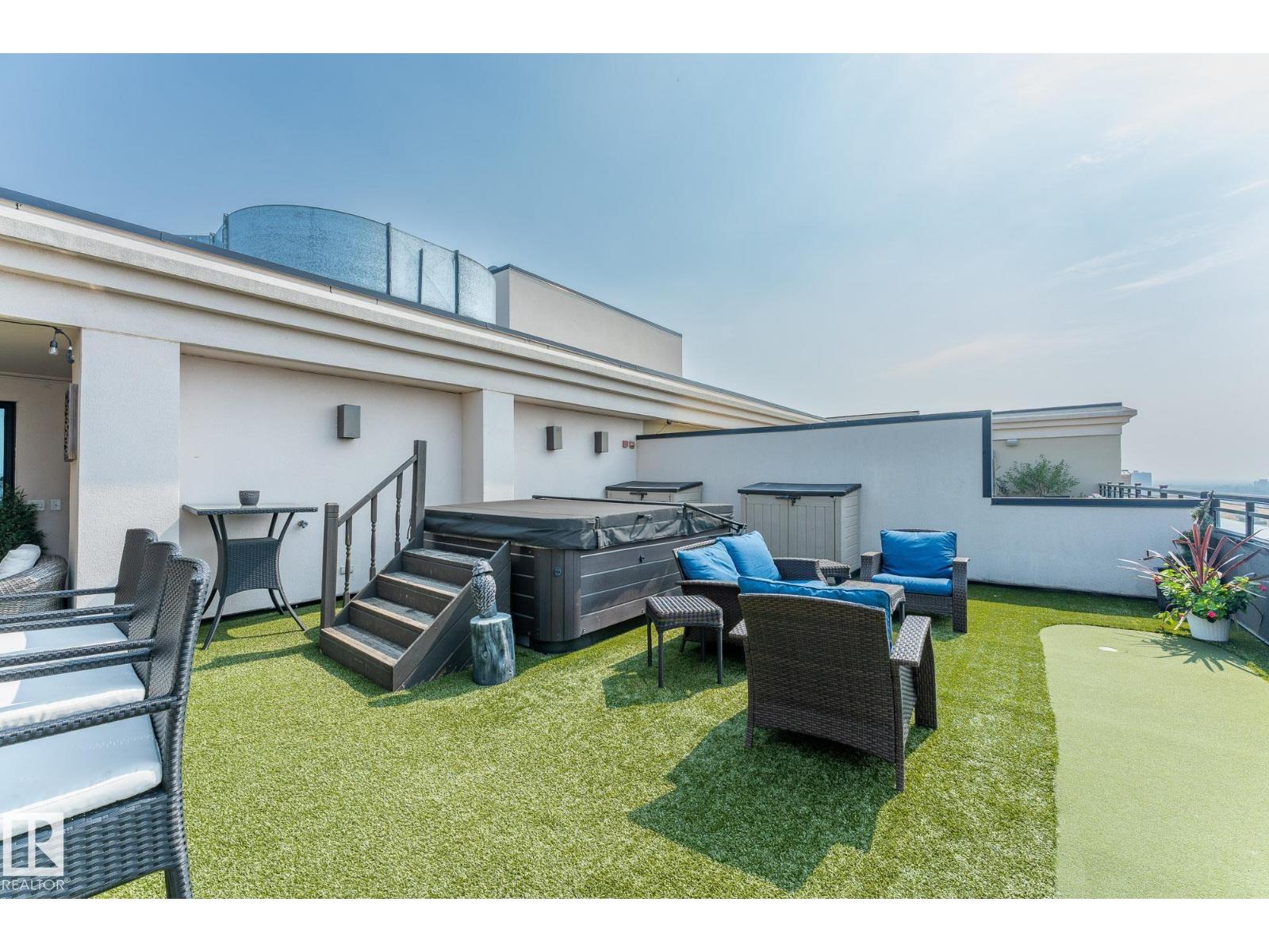 A statement in elevated urban living - this one-of-a-kind 2-level PENTHOUSE RESIDENCE offers a rare blend of space, privacy, and design in the heart of downtown. Defined by soaring ceilings, expansive windows, and refined finishes, the main living area is anchored by a chef’s kitchen with a massive granite island, gas range, and wine cooler - designed for effortless entertaining. The upper level is a private primary retreat featuring a double-sided fireplace, spa-inspired ensuite with steam shower and soaker tub, and walk-in closet. A bonus loft adds flexibility for work or relaxation. The showpiece is your EXCLUSIVE PRIVATE ROOFTOP TERRACE - an extraordinary outdoor escape with bar, hot tub, infrared sauna, putting green, and sweeping skyline views. The main floor also offers 2 additional bedrooms, one with its own ensuite plus an additional bathroom for guests. 3 TITLED PARKING STALLS underground complete this rare opportunity to own a true rooftop residence in the sky. (id:63190)