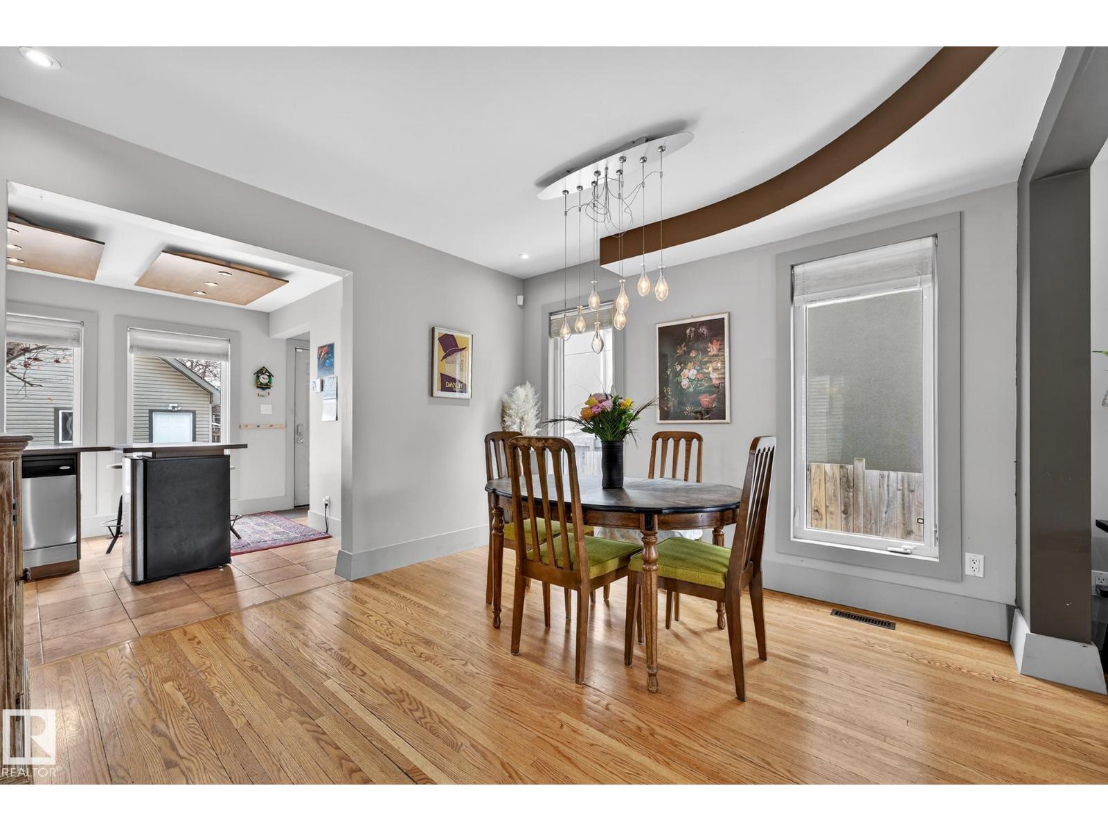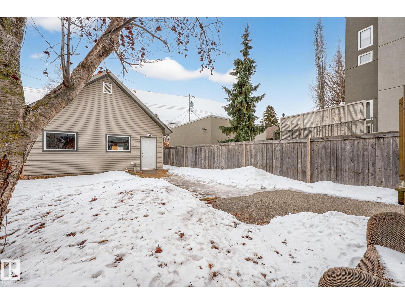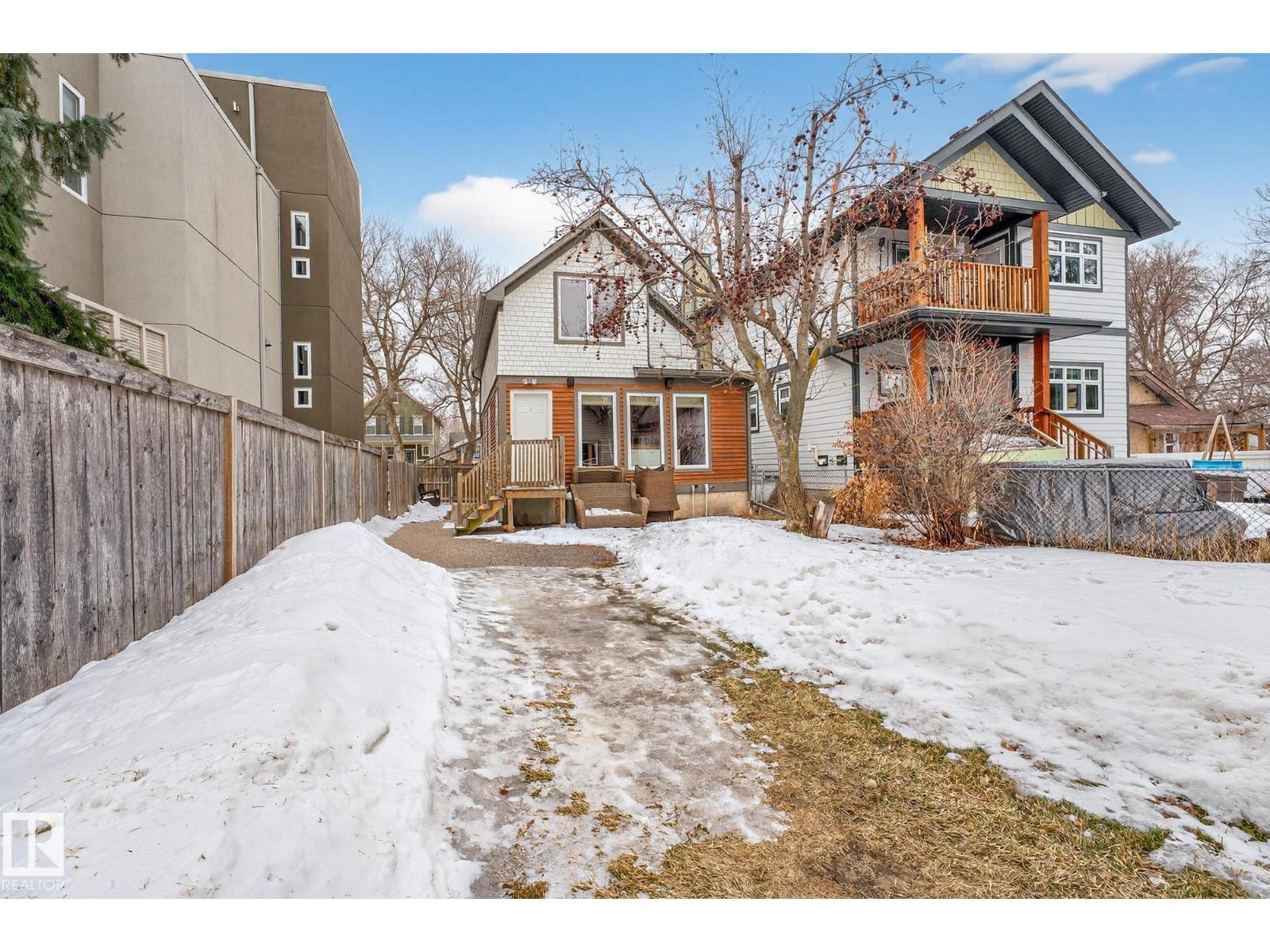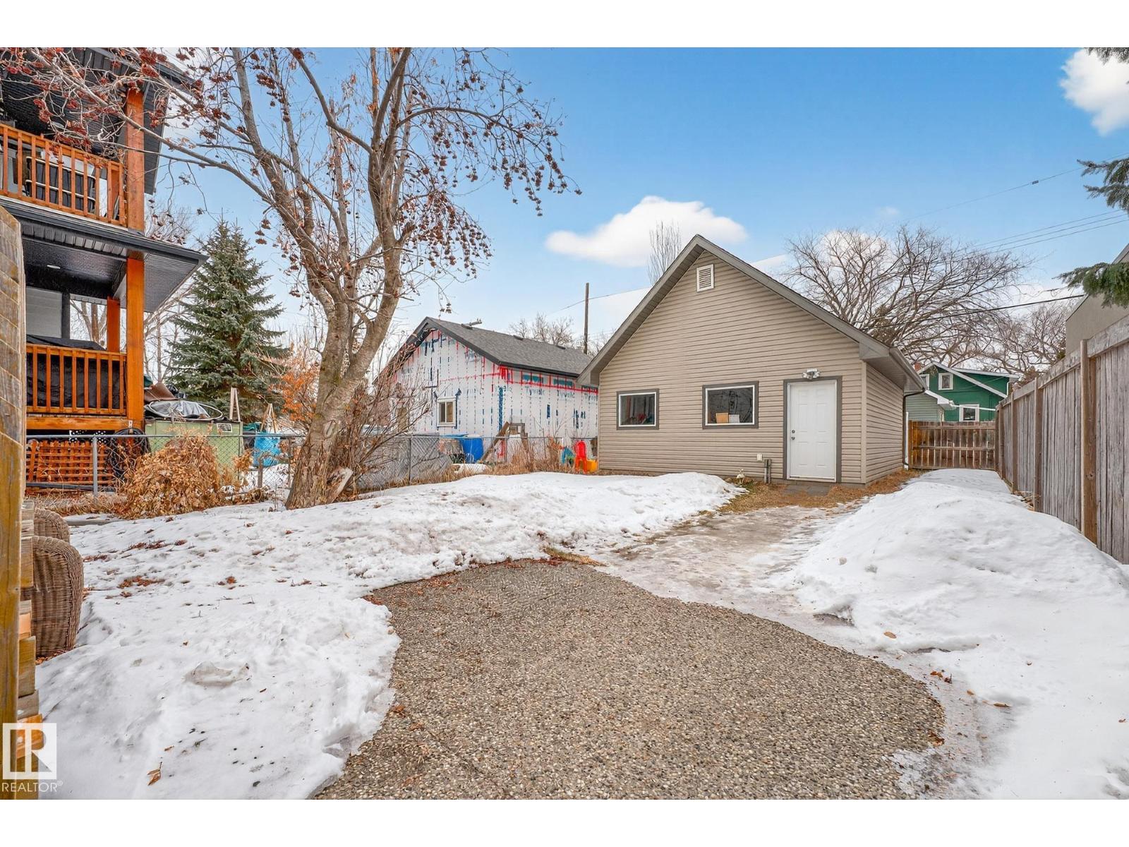 Live in the heart of Highlands! This spectacular river valley community offers charm, convenience, and walkability, just steps to local restaurants, boutique shops, downtown, LRT, Concordia University, Highlands Golf Course, and only one block to Eastglen Pool and High School. This unique, immaculate 2-storey character home was originally built in 1915 and completely renovated down to the studs in 2006, blending timeless charm with modern updates. Some upgrades include wiring, plumbing, insulation, and drywall. The main floor features a spacious living room, formal dining area, and large island kitchen with hardwood and ceramic tile flooring. Upstairs offers 3 bedrooms and a spa-style bathroom with jetted tub, glass vanity, and separate shower. Fully finished basement with family room, full bath, and storage. Fully fenced yard with newer detached oversized double 22x22 garage. (id:63190)