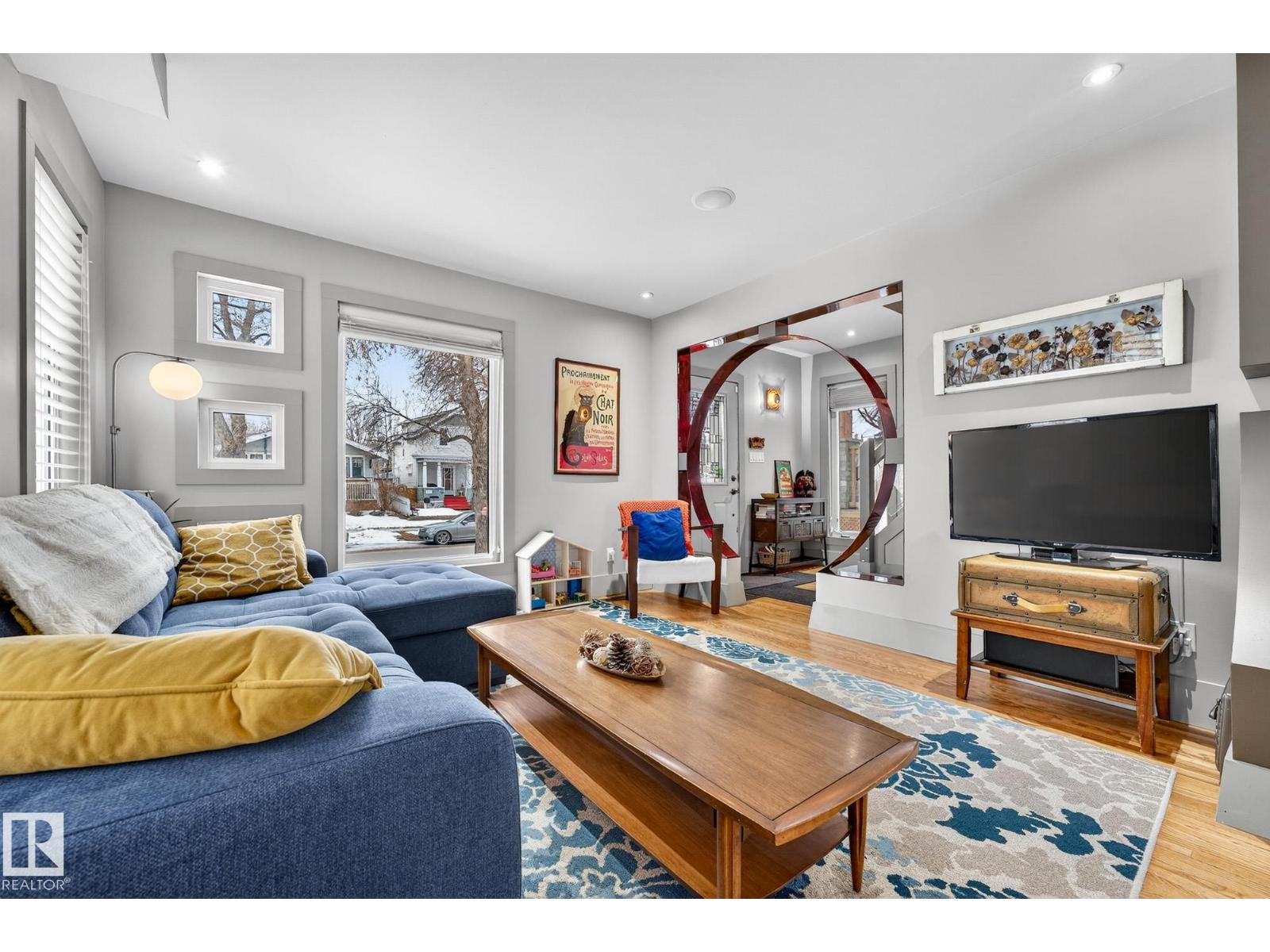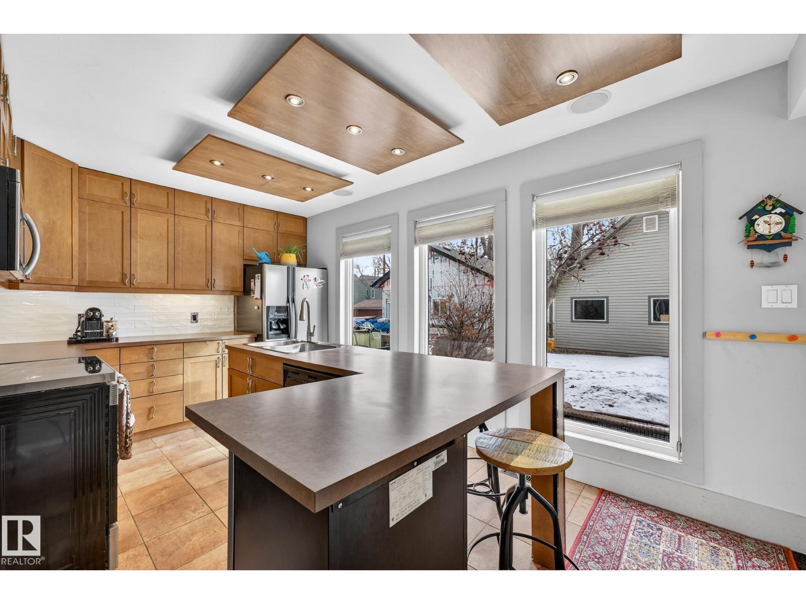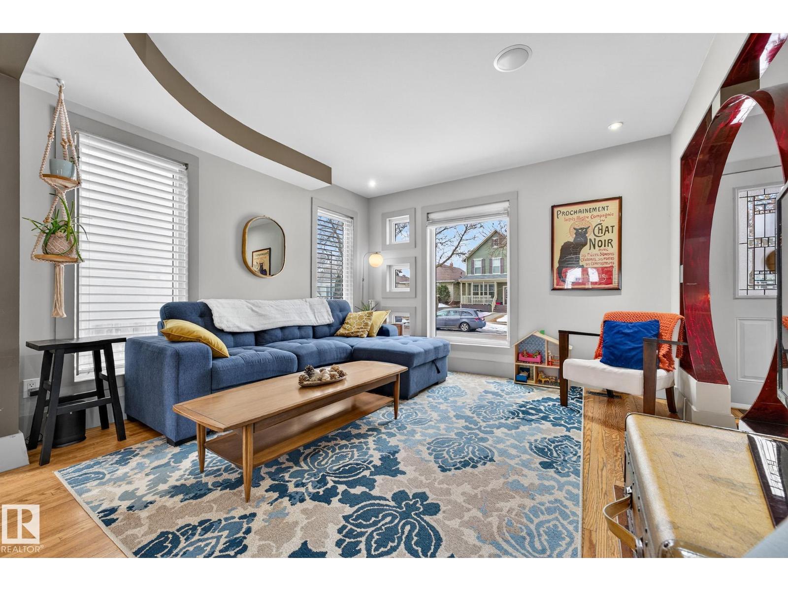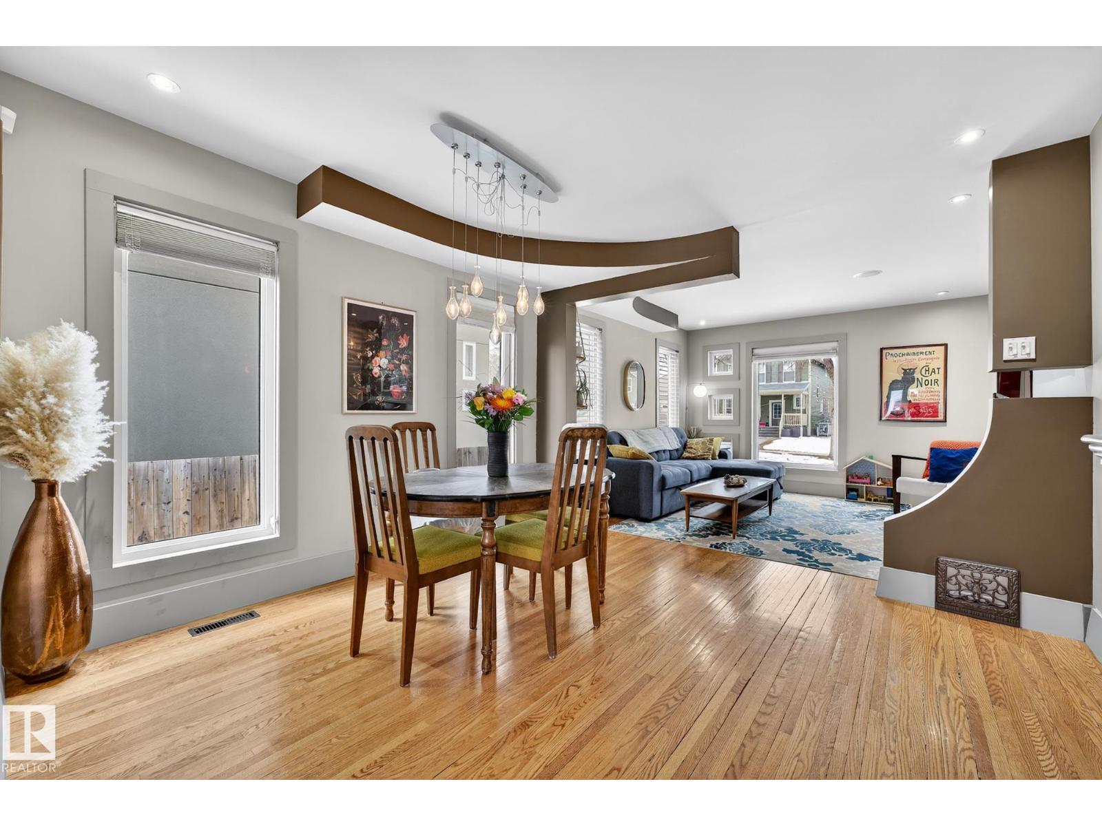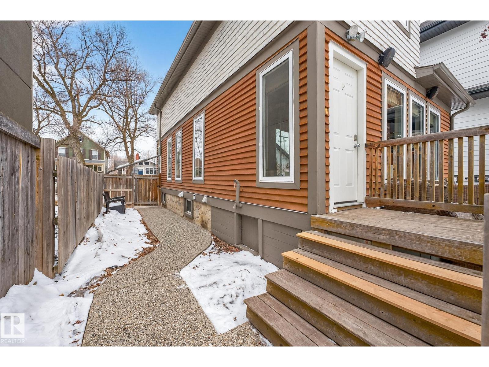 Live in the heart of Highlands! This spectacular river valley community offers charm, convenience, and walkability, just steps to local restaurants, boutique shops, downtown, LRT, Concordia University, Highlands Golf Course, and only one block to Eastglen Pool and High School. This unique, immaculate 2-storey character home was originally built in 1915 and completely renovated down to the studs in 2006, blending timeless charm with modern updates. Some upgrades include wiring, plumbing, insulation, and drywall. The main floor features a spacious living room, formal dining area, and large island kitchen with hardwood and ceramic tile flooring. Upstairs offers 3 bedrooms and a spa-style bathroom with jetted tub, glass vanity, and separate shower. Fully finished basement with family room, full bath, and storage. Fully fenced yard with newer detached oversized double 22x22 garage. (id:63190)