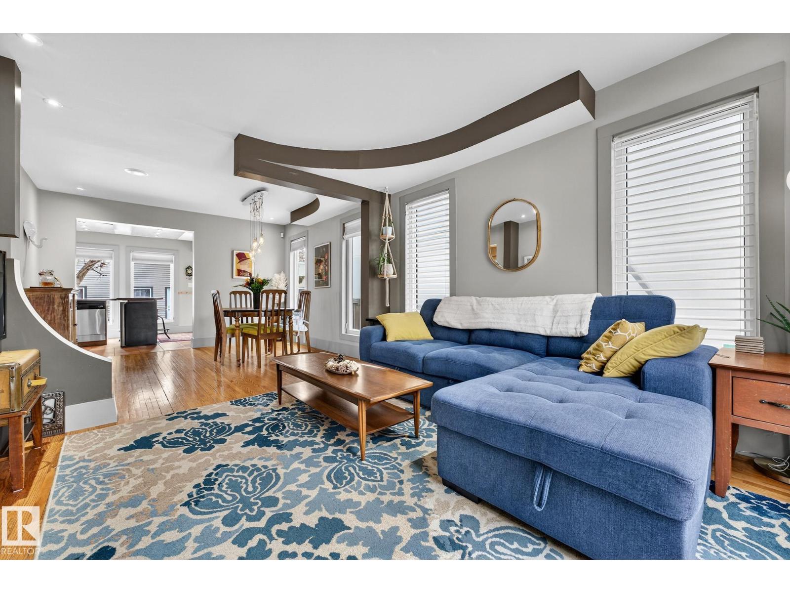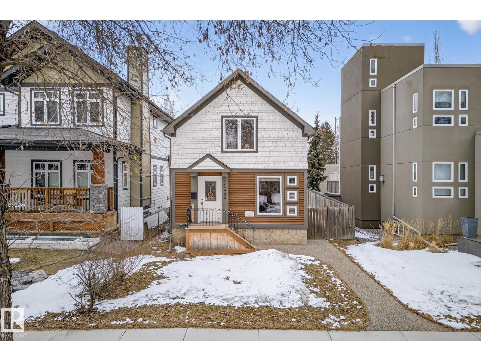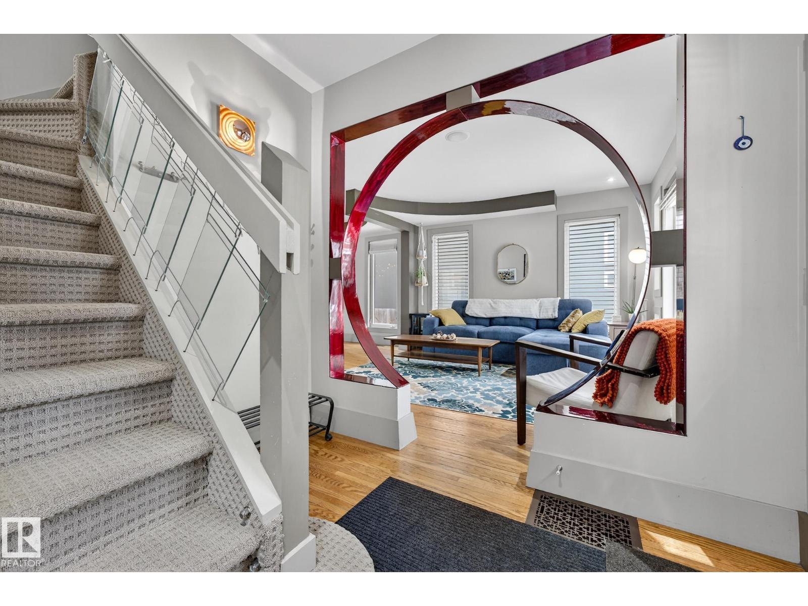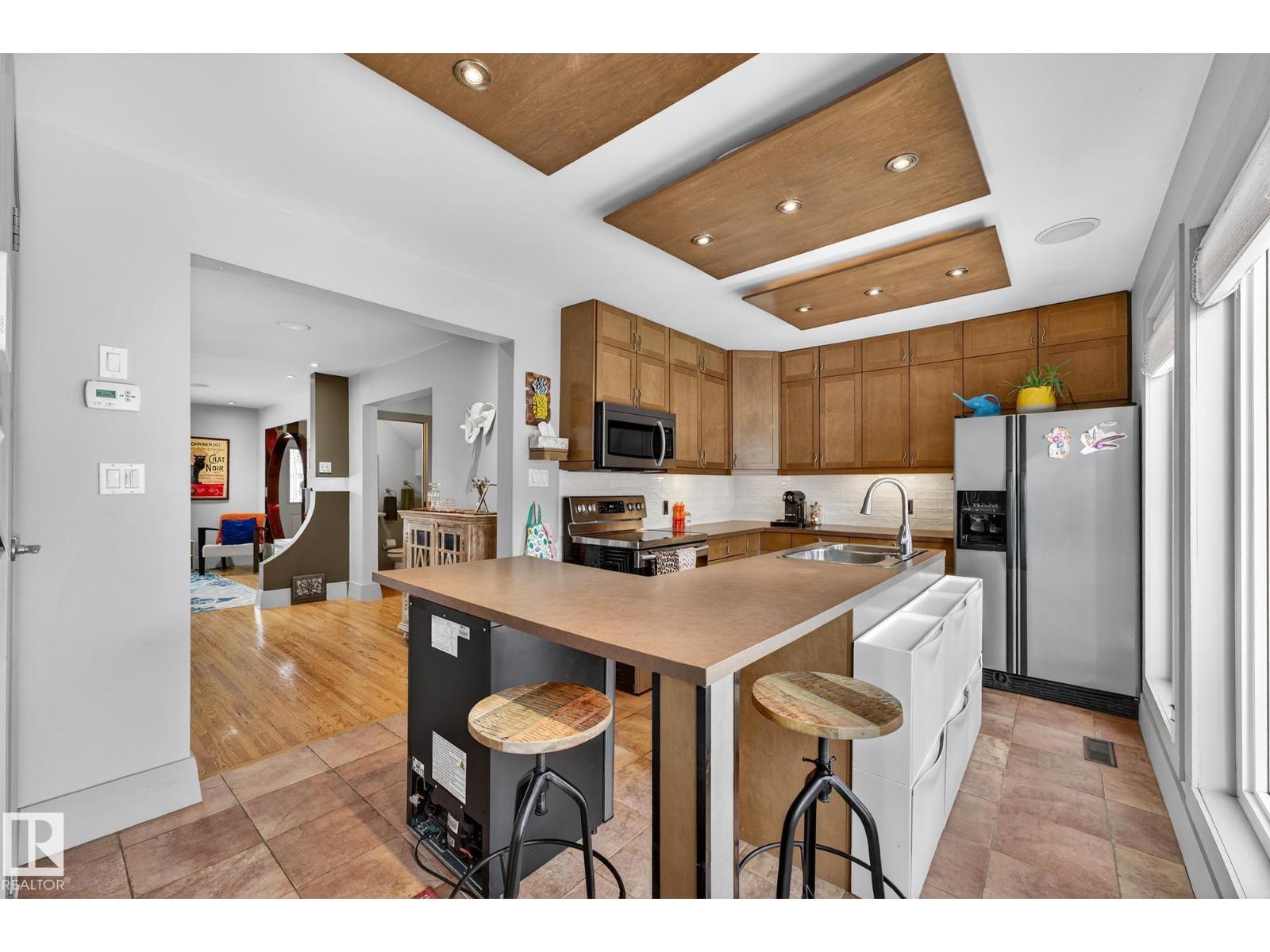 Live in the heart of Highlands! This spectacular river valley community offers charm, convenience, and walkability, just steps to local restaurants, boutique shops, downtown, LRT, Concordia University, Highlands Golf Course, and only one block to Eastglen Pool and High School. This unique, immaculate 2-storey character home was originally built in 1915 and completely renovated down to the studs in 2006, blending timeless charm with modern updates. Some upgrades include wiring, plumbing, insulation, and drywall. The main floor features a spacious living room, formal dining area, and large island kitchen with hardwood and ceramic tile flooring. Upstairs offers 3 bedrooms and a spa-style bathroom with jetted tub, glass vanity, and separate shower. Fully finished basement with family room, full bath, and storage. Fully fenced yard with newer detached oversized double 22x22 garage. (id:63190)