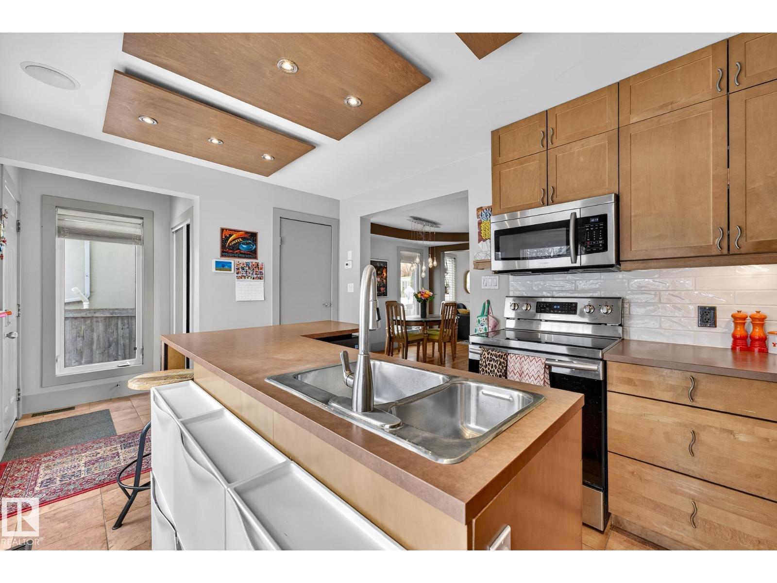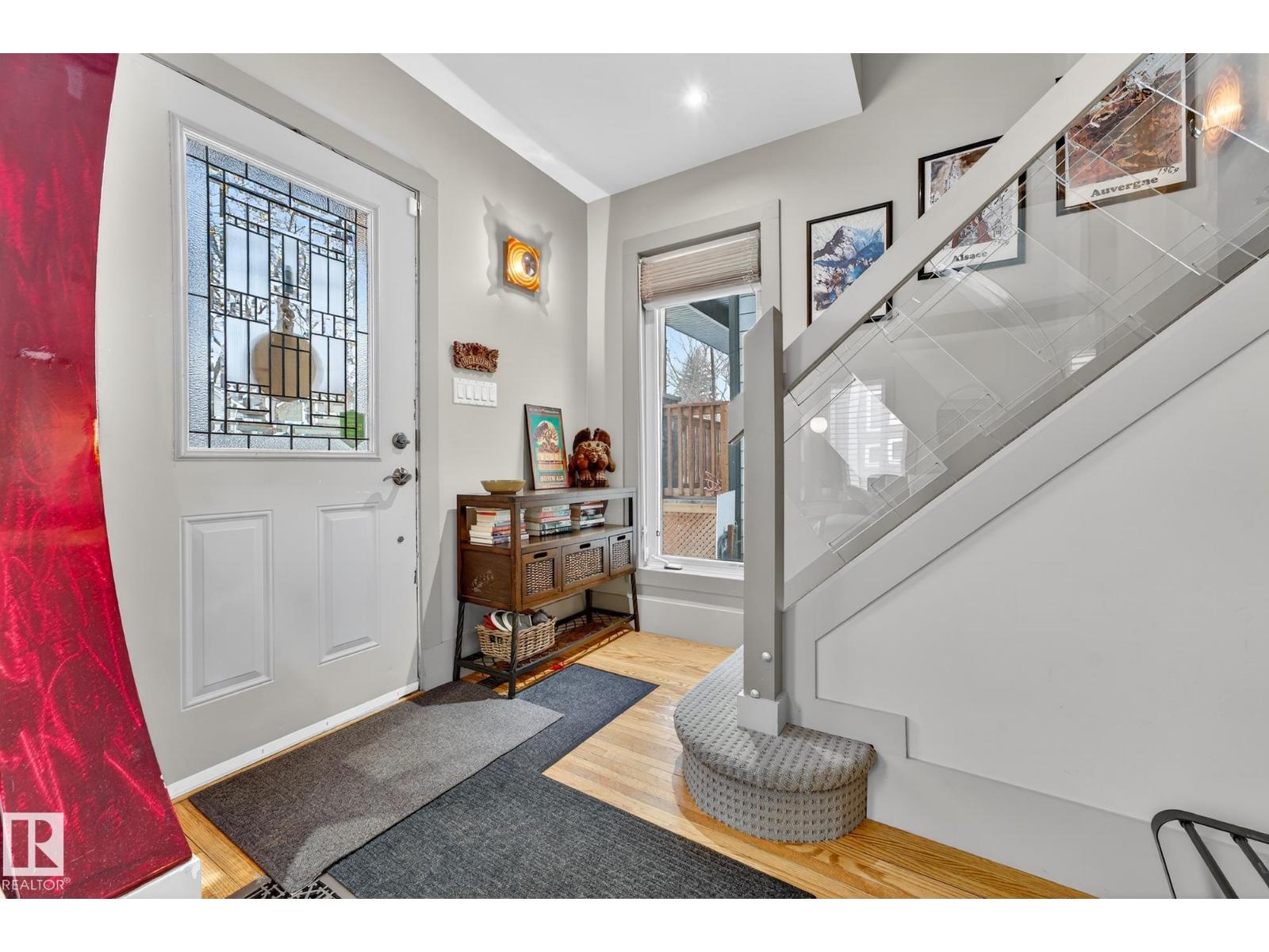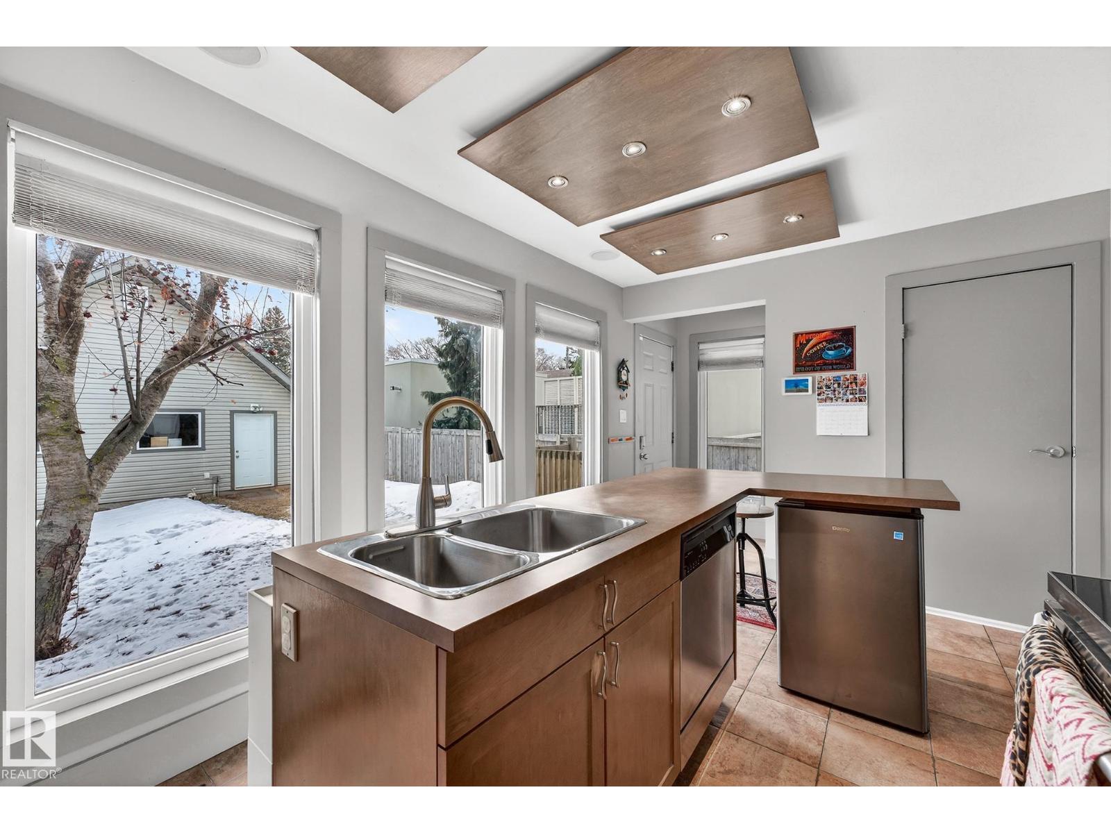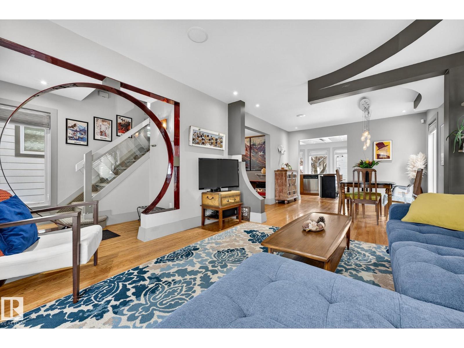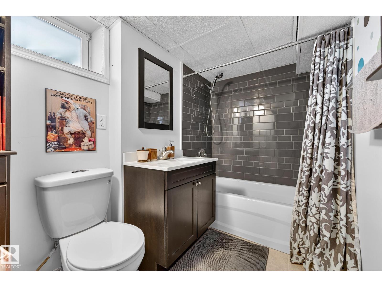 Live in the heart of Highlands! This spectacular river valley community offers charm, convenience, and walkability, just steps to local restaurants, boutique shops, downtown, LRT, Concordia University, Highlands Golf Course, and only one block to Eastglen Pool and High School. This unique, immaculate 2-storey character home was originally built in 1915 and completely renovated down to the studs in 2006, blending timeless charm with modern updates. Some upgrades include wiring, plumbing, insulation, and drywall. The main floor features a spacious living room, formal dining area, and large island kitchen with hardwood and ceramic tile flooring. Upstairs offers 3 bedrooms and a spa-style bathroom with jetted tub, glass vanity, and separate shower. Fully finished basement with family room, full bath, and storage. Fully fenced yard with newer detached oversized double 22x22 garage. (id:63190)