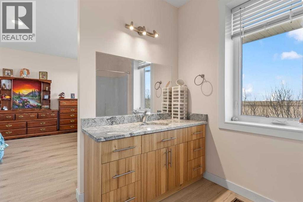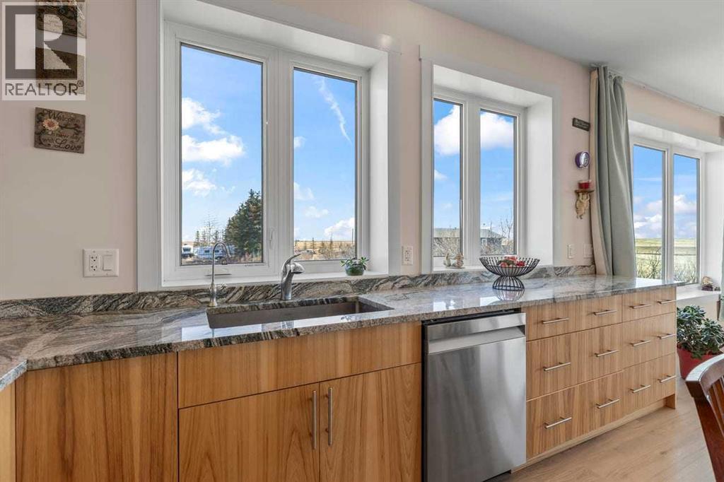 This is the acreage opportunity you’ve been waiting for! Built in 2022, this nearly 2,000 sq. ft. bungalow sits on 2.06 acres and offers the perfect combination of modern construction, space, and future potential. Constructed with ICF for superior durability and efficiency, this home features in-floor heating, 9’ ceilings, and oversized windows throughout—flooding the space with natural light. The modern kitchen anchors the open-concept layout, ready for both everyday living and entertaining. With three spacious bedrooms, tons of storage, and a foam-insulated garage, the foundation is here for something truly special. The home is move-in ready but offers an excellent opportunity for a buyer to add their own personal touch and elevate it to the next level. The fully developed basement includes an illegal suite with two separate units—perfect for extended family or added income potential. Outside, the possibilities continue with 2.06 acres of land and approval already in place from Rocky View County to build a workshop—ideal for hobbyists, business use, or additional storage. If you’re looking for space, value, and upside potential, this property delivers. Don’t miss your chance to make it your own. (id:63190)