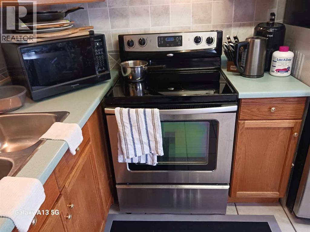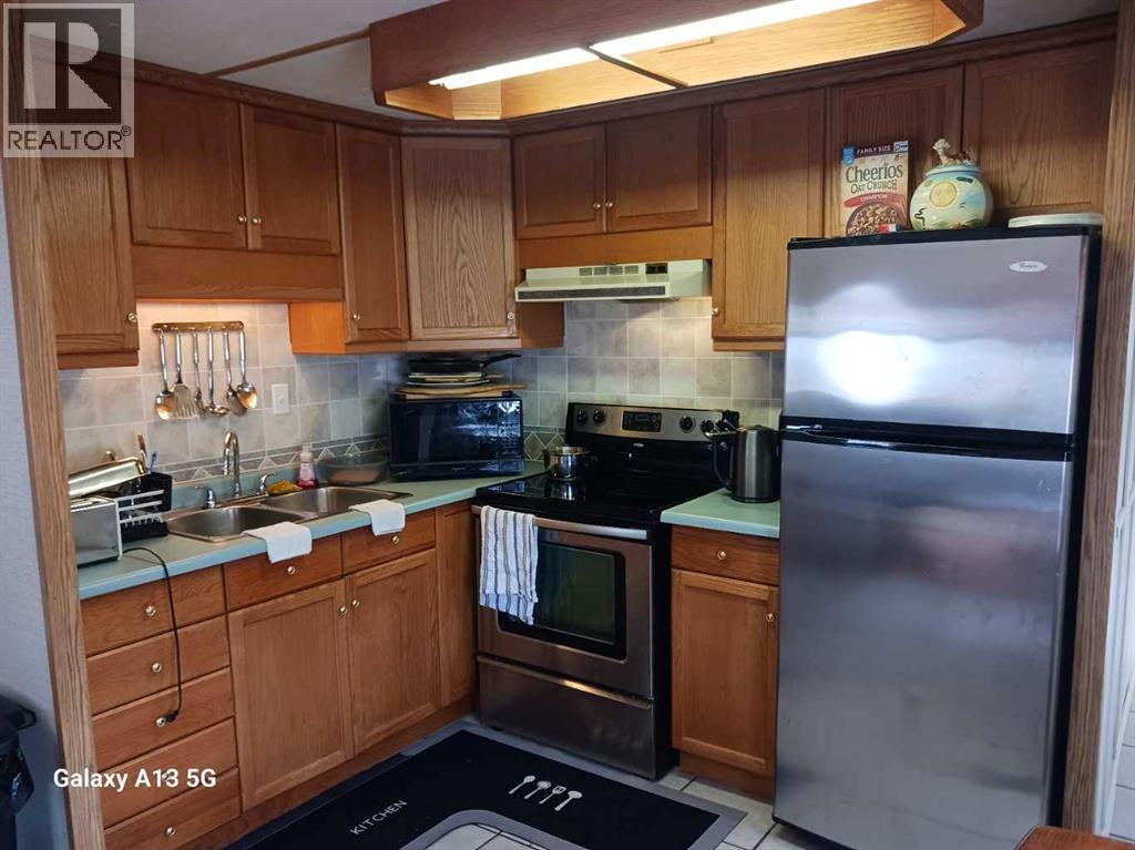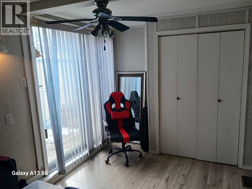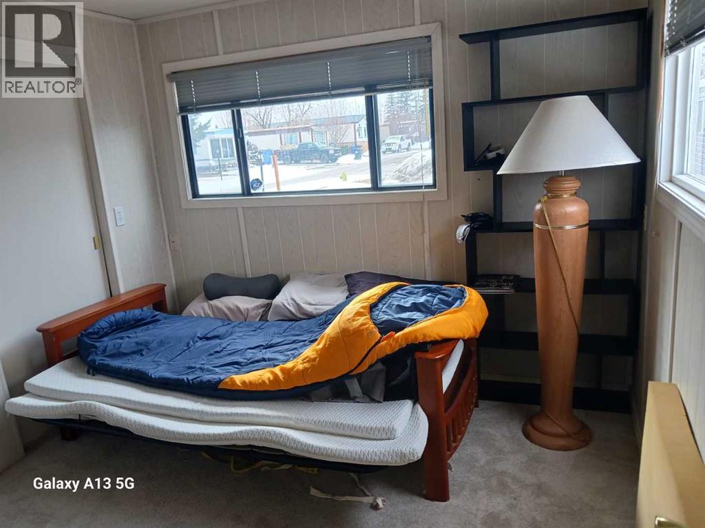 JUST FOR YOU. Two bedroom home on Red Deer's north end in Mustang Acres. Renovated some time ago and offers up tiled flooring in the kitchen/dining area, and hallway. Balance of flooring is again an updated laminate in the bedroom, bath and 2nd bedroom. Kitchen cabinets were an upgrade with adjustable shelving so you can re-jiggle where the pans go, where you can stack the dishes so it all fits best for you. Appliances are staying so you save a little money and you save a lot of time. The living room is very functionable so no need to worry about room for your relaxing sofa, recliner, foot stool and or your coffee table. Down the hall, first room on your left is a huge 13'.5" x 8'.6" bedroom, games room or office if the need presents itself. 2nd bedroom also features patio doors facing south and is perfect to access the 10' x 14' south west facing deck. Primary bedroom is at the very back of the home and it too has upgrades in regard to light fixtures and. carpet for flooring. More value in the 8' x 14'6" addition currently acting as a great entrance/porch/storage area. With the home being 692 sqft and the addition being 116 sqft now you have a total of 808 sgft all to yourself. It's going to be fantastic for you. Not only is there some open, paved parking but a 11' 6" x 16' carport to protect your ride. A GARAGE, yes, a 9'x24' detached garage for doing your thing, whether that means more cars, bikes or hobby playroom. This home is set up on a corner lot and a fence backyard backs on to empty green space. Shopping, playgrounds, Casino, Schools and other needed retail is all within walking distance or a very short drive. Pets welcome subject to park approval. Quick, quick possession is possible and preferred. Now is go time. Go see. (id:63190)