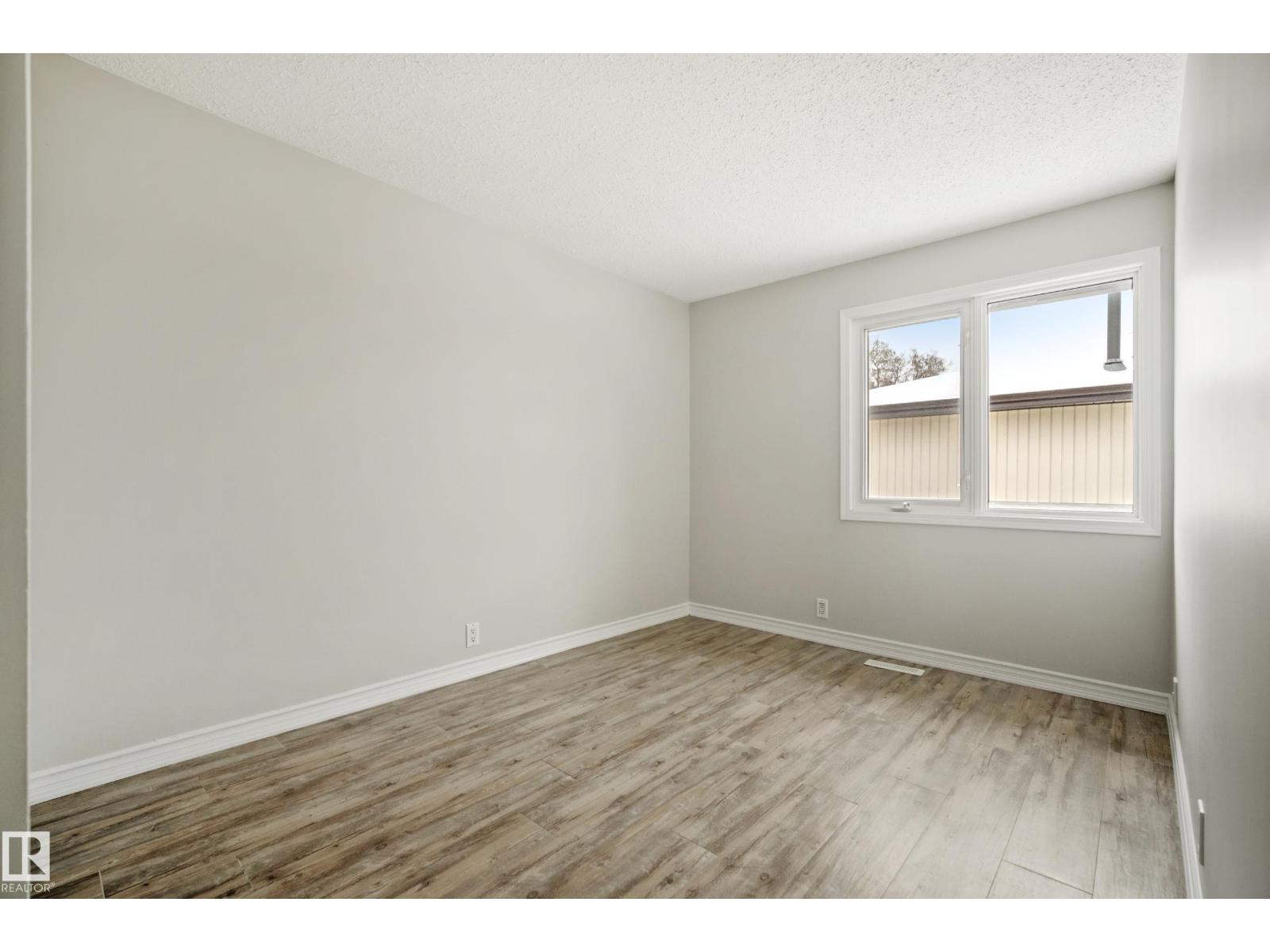 Move-in ready! Beautifully updated 3-bedroom, 1.5-bathroom home offering a bright and functional layout in a convenient location. The main floor features new vinyl plank flooring, fresh paint, new light fixtures, and a stunning renovated kitchen with quartz countertops, white cabinetry, and stainless steel appliances. A newly updated 2-piece bathroom completes the main level. Upstairs you’ll find three well-sized bedrooms with durable hard surface flooring throughout. The fully finished basement adds valuable living space with a large rec room, laundry area, and plenty of storage. Enjoy the spacious, fully fenced backyard, perfect for relaxing or entertaining. Includes an assigned parking stall. Ideally located just steps to public transit, schools, and everyday amenities, with quick access to Victoria Trail, Yellowhead Trail, and Anthony Henday Drive. (Some photos have been virtually staged with furniture) (id:63190)