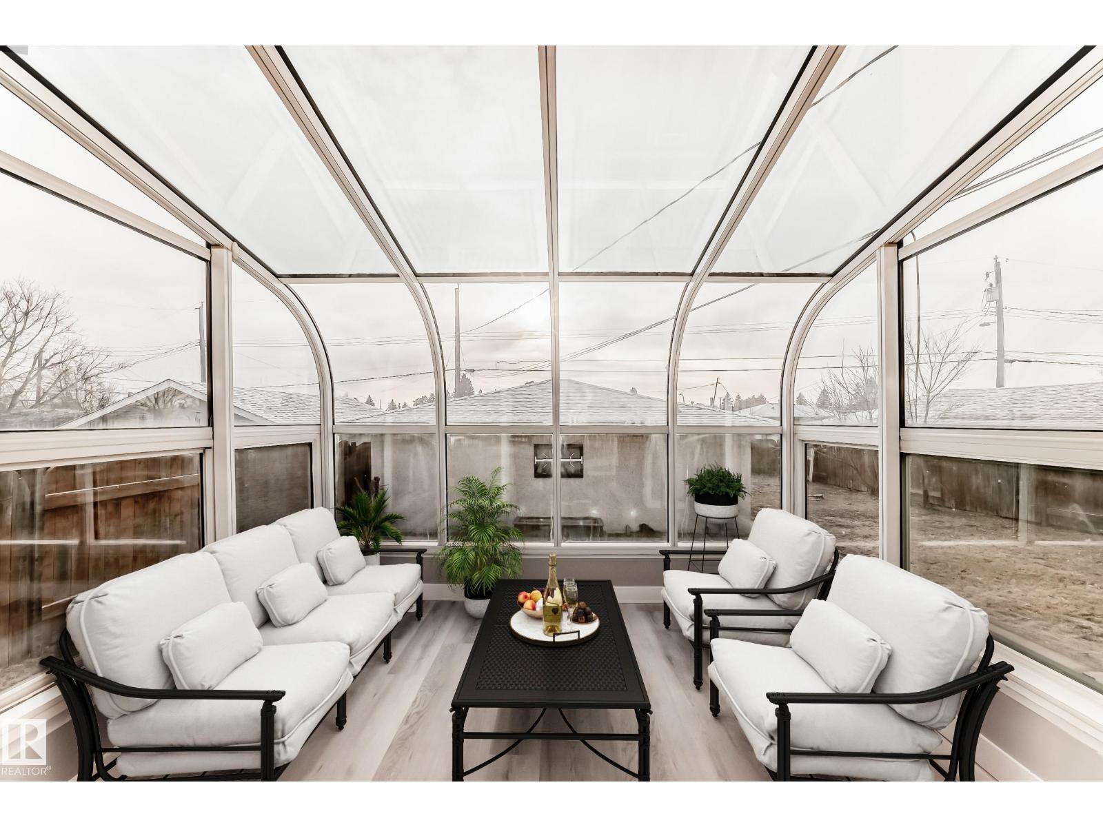Prepare to be wow'ed by this beautiful home perfectly located in a highly sought-after neighbourhood in Delwood. Fully turn-key. Completely renovated Top to Bottom. Brand new 2 kitchens, appliances, High Efficient Furnace, New Windows, New Roof, New flooring and bathroom, Freshly painted. Walking into this home you are greeted by the large bright and open family room/dining room with large windows, spacious kitchen, Master bedroom with sunroom, 2 more bedrooms, separate 4 pc bath & Storage. Basement has it's own SEPERATE ENTRANCE with large family room/dining room, 2nd Kitchen, 2 more bedrooms, Full Bathroom, laundry & storage room. Huge private backyard with Double detached oversize garage, Sunroom & RV Parking. It is one of the best commute to anywhere with Yellowhead Hwy being 5 minutes and Anthony Henday being 9 minutes away, Easy access to schools, park, Londonderry Mall, Northgate Mall & all amenities. This is a terrific family home you do not want to miss! Some photos are virtually staged (id:63190)