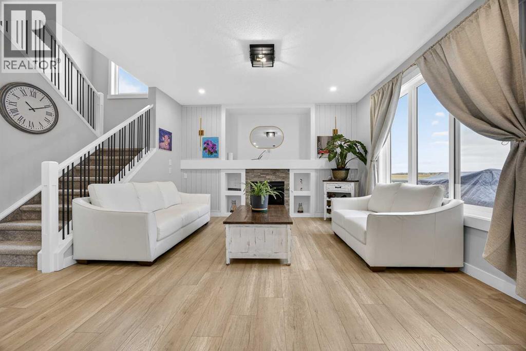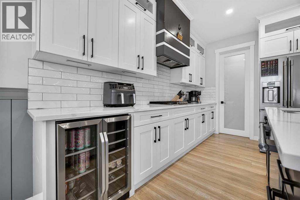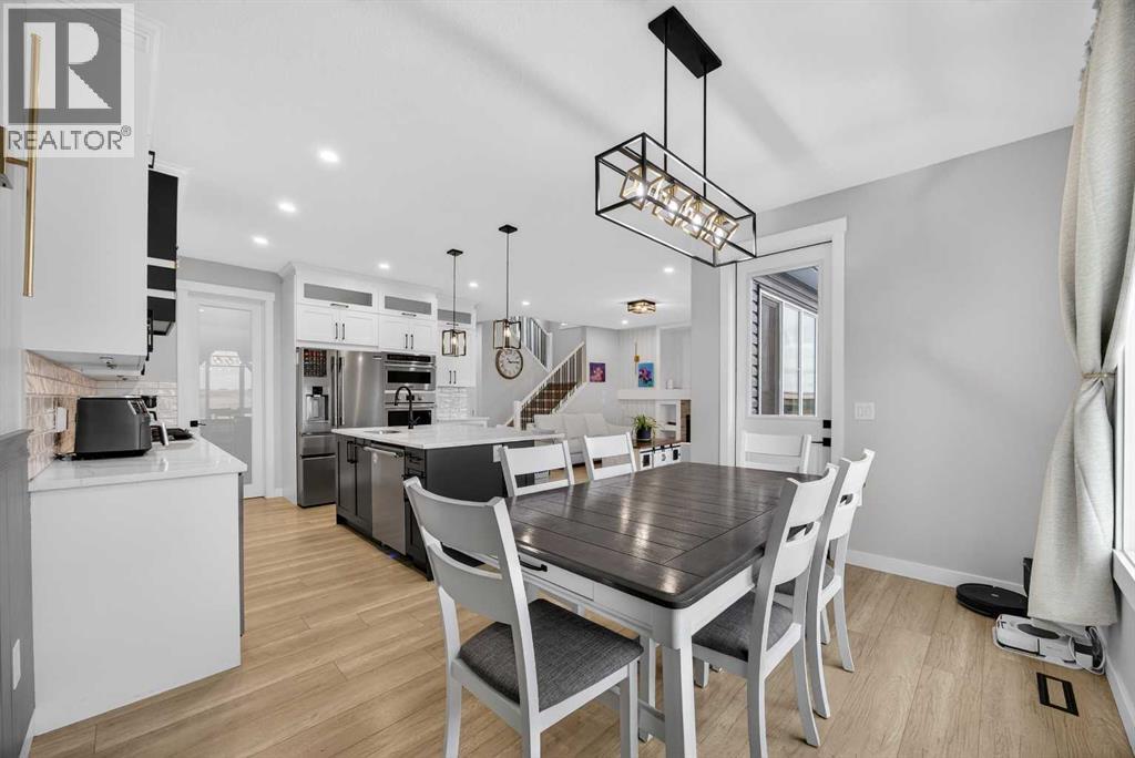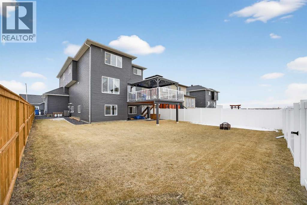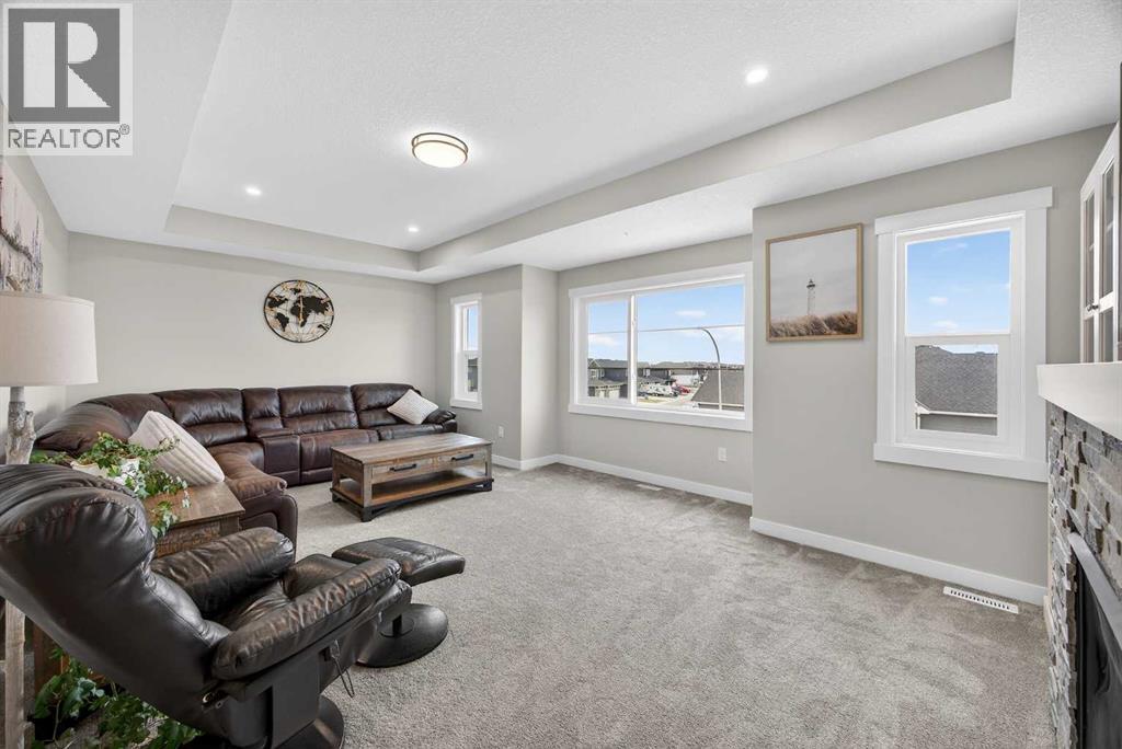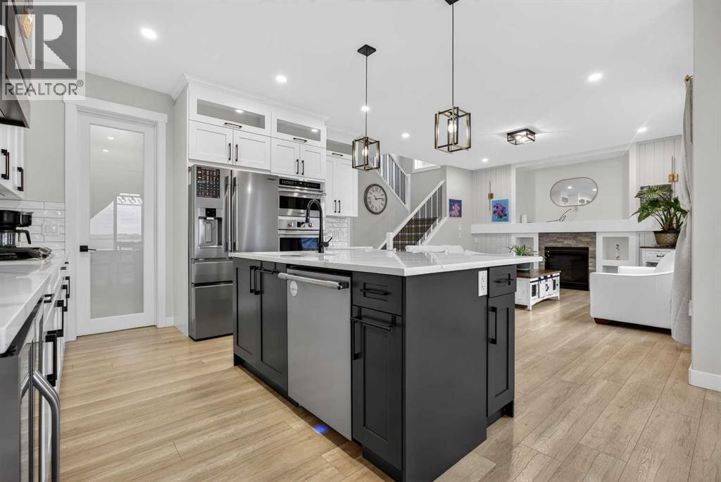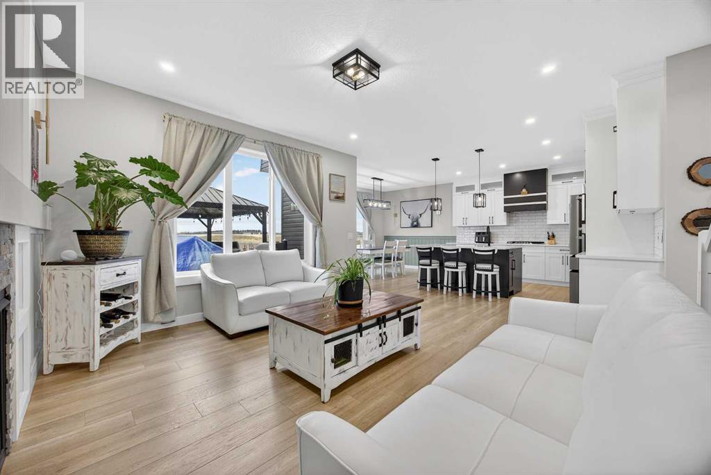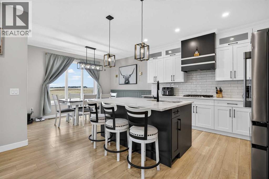Offering over 2,600 sq ft above grade, and 4 bedrooms upstairs, this stunning two-storey blends thoughtful design with elevated finishes — and yes, those wide-open country sunset views really are as incredible as they sound. Expansive rear windows flood the open-concept main floor with natural light while framing miles of prairie landscape… your evening routine just found its new favourite backdrop. The main level welcomes you with a spacious front entry and versatile flex room perfect for a home office, salon, playroom, or whatever your life needs today. The living room anchors the space with a feature fireplace, while the oversized dining area opens to the expanded upper deck with gas line and convenient access to the yard below — ideal for summer entertaining that lasts until the sun dips below the horizon. The kitchen? Equal parts stylish and seriously functional. Gas cooktop, built-in oven and microwave, beverage fridge, and an abundance of workspace… but the pièce de résistance is the show-stopping walk-through pantry with a full wall of wood shelving leading directly to the triple garage entry. This practical drop zone includes open locker-style hooks and shelving designed for every season of gear. A powder room completes the main floor. Upstairs is where this home truly shines for families — FOUR bedrooms on one level (yes, all upstairs!) plus a massive bonus room with an abundance of cabinetry and a second fireplace. The primary suite is a retreat of its own, featuring a spa-inspired ensuite with dual sinks, glass/tile shower, soaker tub, and a walk-in closet that absolutely lives up to the hype. Two bedrooms share a convenient central bath, while the fourth bedroom and additional full bathroom provide flexibility for guests, teens, or multigenerational living. The fully finished walkout basement continues the theme of space and versatility, offering a large bedroom, full bathroom, and an expansive rec area with room for both movie nights and games or fitne ss space. The long wet bar with second beverage fridge ties it all together — because entertaining should be effortless. Outside, the yard is spacious, functional, and ready for summer… but let’s be honest, it’s the uninterrupted sunset views over open fields that make this property unforgettable. A nearly-new home, 4 bedrooms up, fully finished walkout, triple garage, and views that never get old — with just the right amount of sass and a whole lot of class. Virtual tour available in link. Call your favourite local REALTOR to check this spectacular property out today! (id:63190)