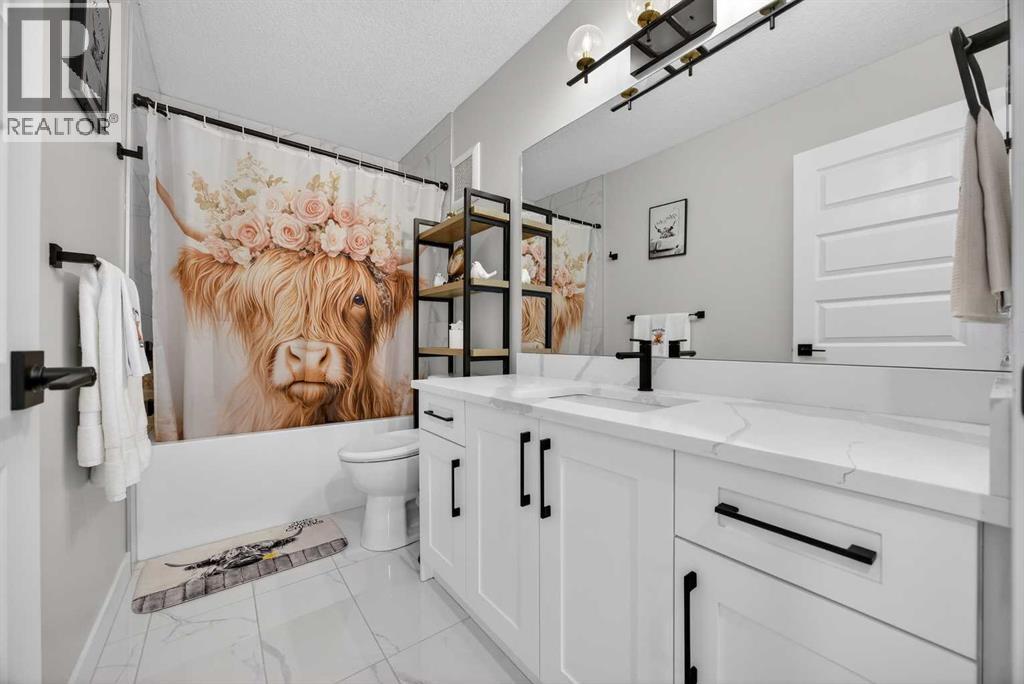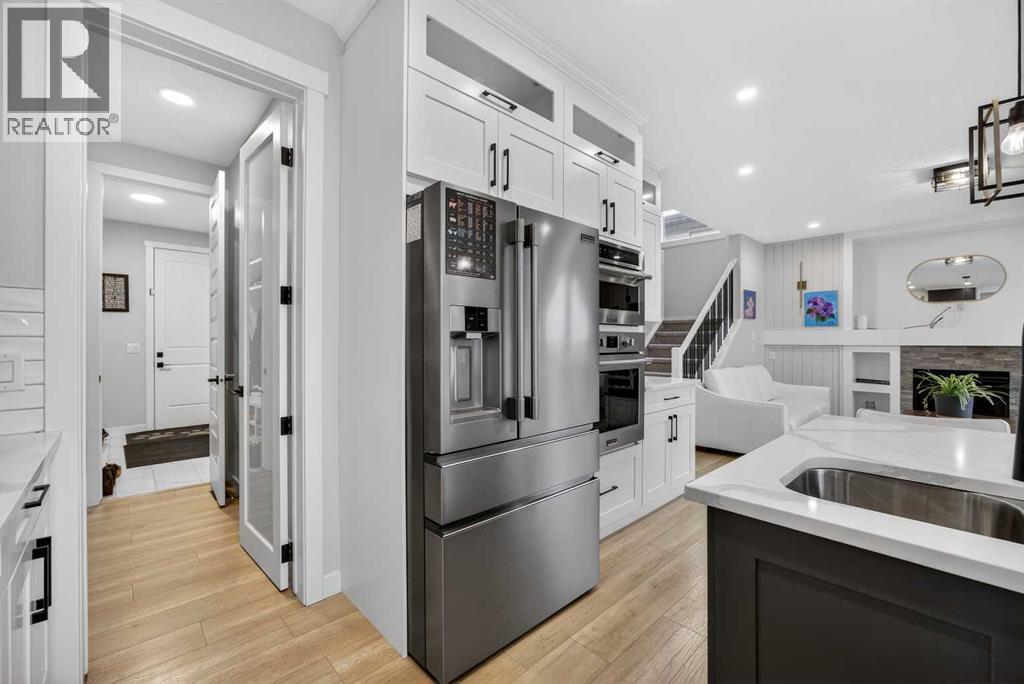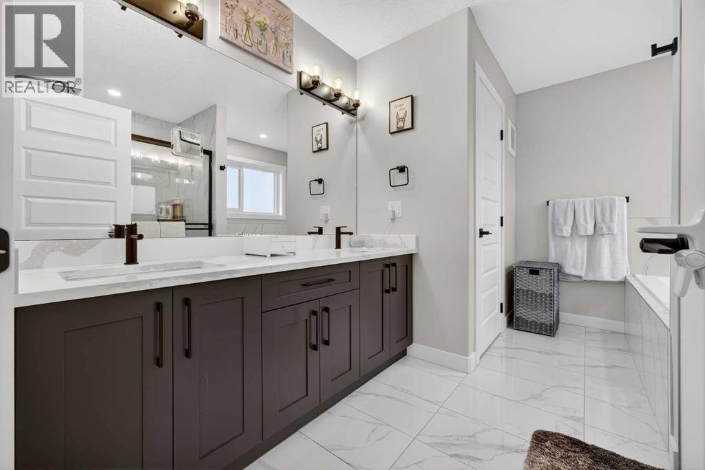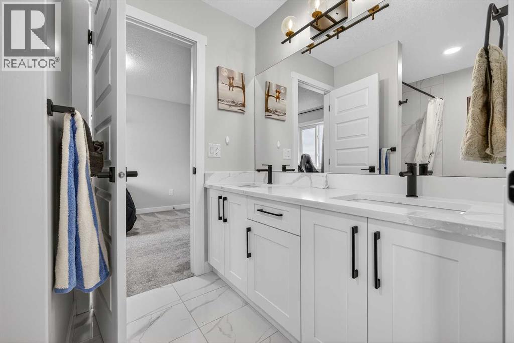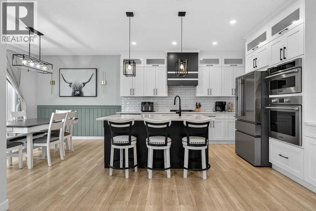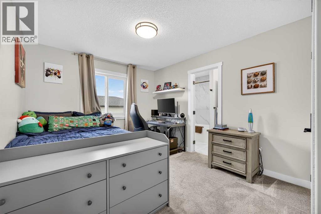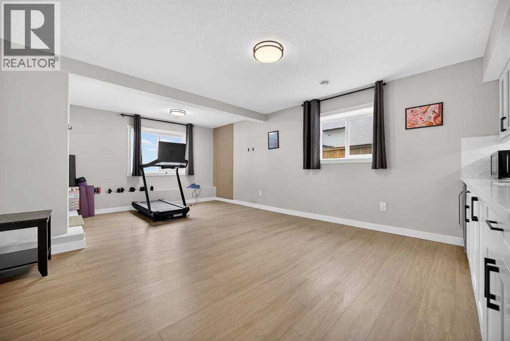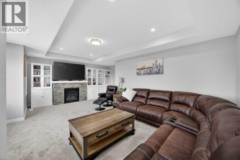 Offering over 2,600 sq ft above grade, and 4 bedrooms upstairs, this stunning two-storey blends thoughtful design with elevated finishes — and yes, those wide-open country sunset views really are as incredible as they sound. Expansive rear windows flood the open-concept main floor with natural light while framing miles of prairie landscape… your evening routine just found its new favourite backdrop. The main level welcomes you with a spacious front entry and versatile flex room perfect for a home office, salon, playroom, or whatever your life needs today. The living room anchors the space with a feature fireplace, while the oversized dining area opens to the expanded upper deck with gas line and convenient access to the yard below — ideal for summer entertaining that lasts until the sun dips below the horizon. The kitchen? Equal parts stylish and seriously functional. Gas cooktop, built-in oven and microwave, beverage fridge, and an abundance of workspace… but the pièce de résistance is the show-stopping walk-through pantry with a full wall of wood shelving leading directly to the triple garage entry. This practical drop zone includes open locker-style hooks and shelving designed for every season of gear. A powder room completes the main floor. Upstairs is where this home truly shines for families — FOUR bedrooms on one level (yes, all upstairs!) plus a massive bonus room with an abundance of cabinetry and a second fireplace. The primary suite is a retreat of its own, featuring a spa-inspired ensuite with dual sinks, glass/tile shower, soaker tub, and a walk-in closet that absolutely lives up to the hype. Two bedrooms share a convenient central bath, while the fourth bedroom and additional full bathroom provide flexibility for guests, teens, or multigenerational living. The fully finished walkout basement continues the theme of space and versatility, offering a large bedroom, full bathroom, and an expansive rec area with room for both movie nights and games or fitne ss space. The long wet bar with second beverage fridge ties it all together — because entertaining should be effortless. Outside, the yard is spacious, functional, and ready for summer… but let’s be honest, it’s the uninterrupted sunset views over open fields that make this property unforgettable. A nearly-new home, 4 bedrooms up, fully finished walkout, triple garage, and views that never get old — with just the right amount of sass and a whole lot of class. Virtual tour available in link. Call your favourite local REALTOR to check this spectacular property out today! (id:63190)