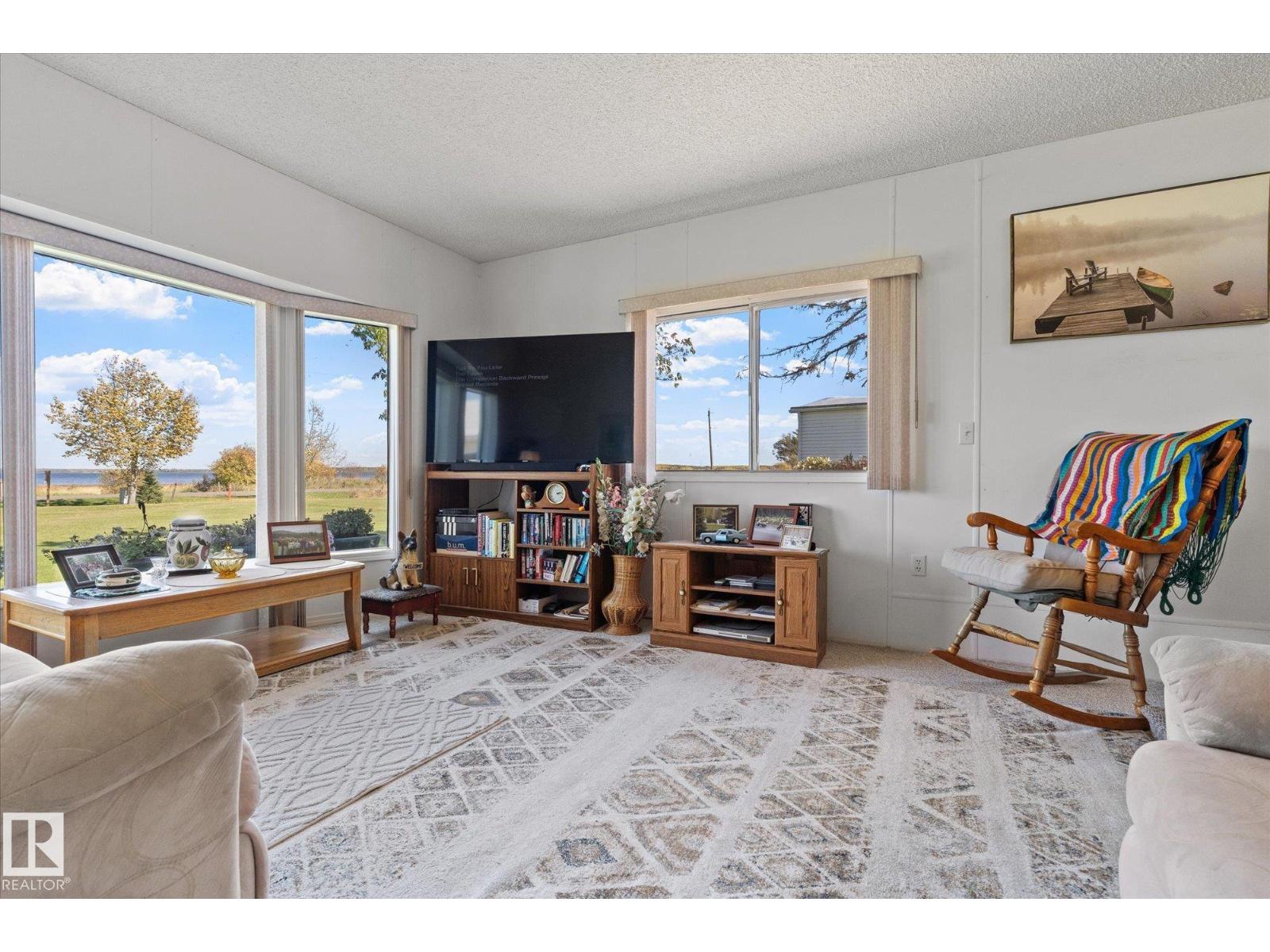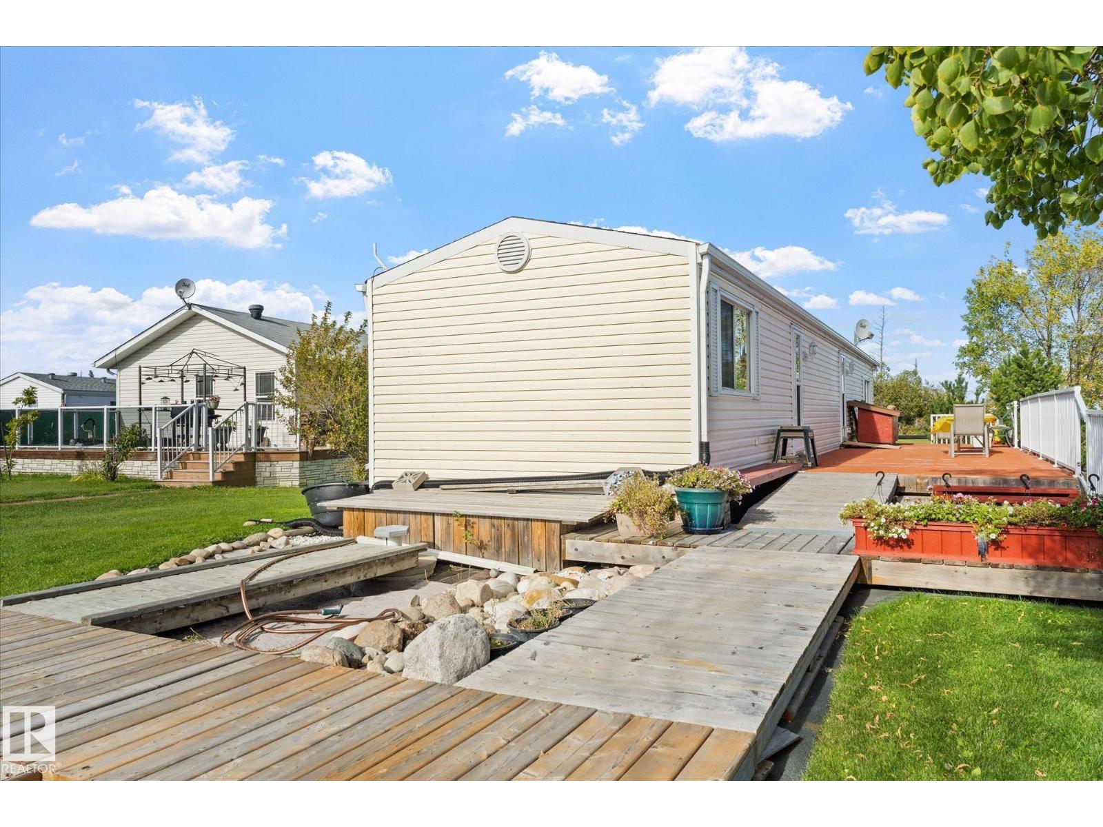 Here’s your opportunity to own a Lakeside property. No Neighbors between you and the Lake with no neighbors behind. This well-maintained home features 3 bedrooms, 1 bathroom, and an open-concept living, dining, and kitchen area. The views of the lake are simply breathtaking! Included in the price are furniture, a 2019 John Deere riding mower, 2 Sheds and a FLOATING DOCK, making this a true turnkey property. As an owner in Lakeshore Cove, you’ll own not only your lot and home, but also have access to common areas which include acres of green space behind the lot and a large waterfront parcel with 700 feet of LAKE FRONTAGE. Yes, there is LAKE ACCESS for a common dock. Located west of Edmonton, just West out of Alberta Beach on the Southside of Lac Ste.Anne Lake. This property offers the perfect lakeside living experience. Close to Alberta Beach's conveniences, without the crowd. Don’t miss out! (id:63190)