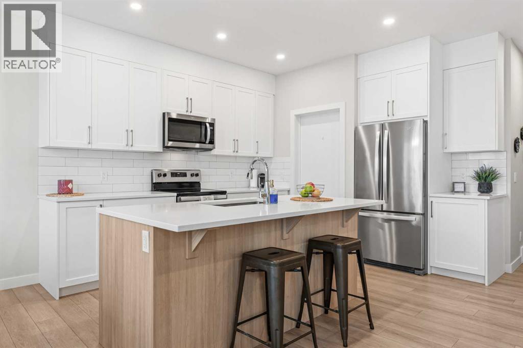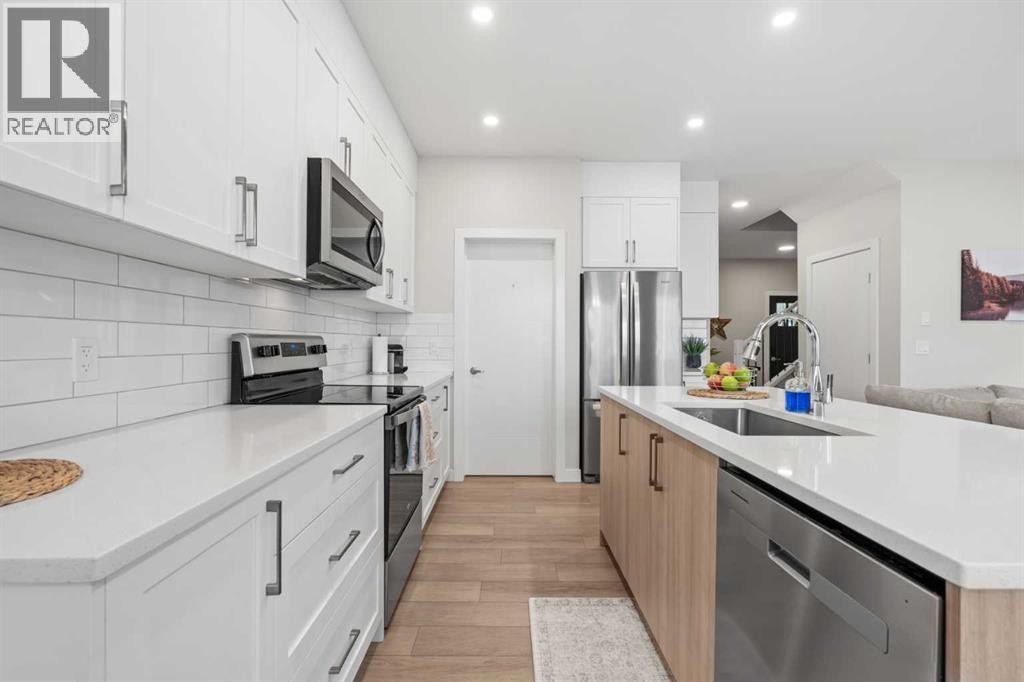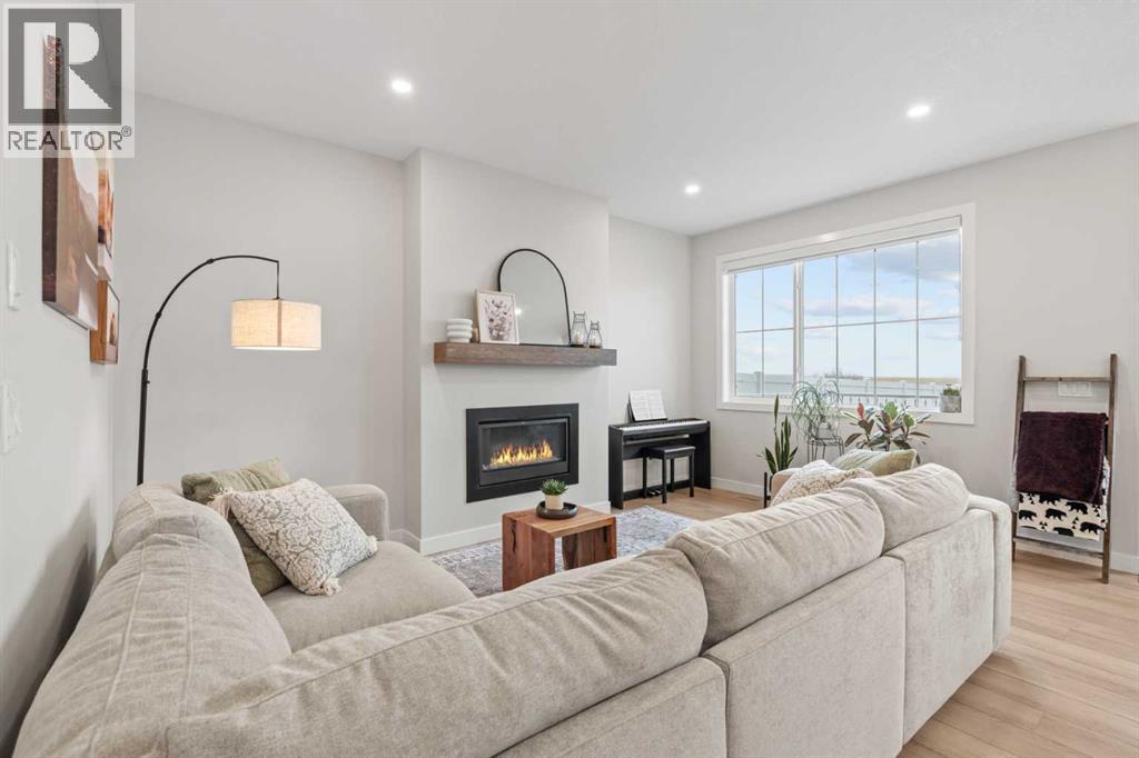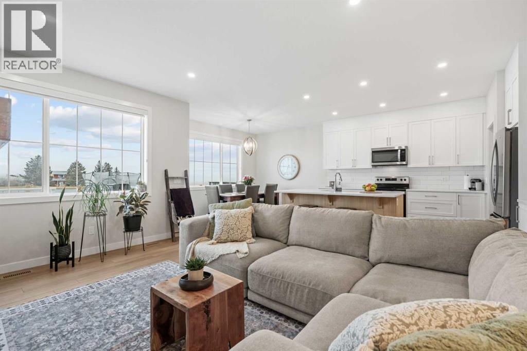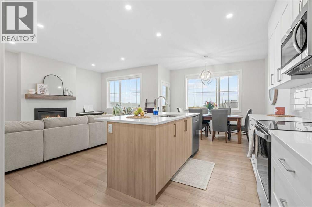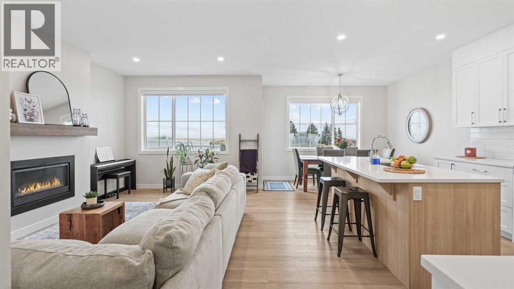 OPEN HOUSE -this SAT-SUN, April 25-26 at 2pm-4pm!! Welcome to Ranchers Rise in Okotoks, a growing community that blends quiet living with everyday convenience. This well-maintained two-storey home by Partners Homes offers almost 1,900 sq. ft. of thoughtfully designed living space, providing both comfort and functionality, complete with a front-attached double garage, 3 bedrooms, 2.5 bathrooms, and a bright bonus room. The main level is designed for modern living, featuring 9-foot ceilings, recessed lighting, and durable luxury vinyl plank flooring throughout. The open layout connects the kitchen, dining, and living areas seamlessly, creating a space that feels both functional and inviting. The kitchen stands out with full-height white shaker cabinetry, soft-close drawers, quartz countertops, stainless steel appliances, a large island with seating for four, and a walk-in pantry with plenty of storage. The living room is anchored by a sleek linear gas fireplace, while the dining area opens onto an 11’ x 10’ deck with stairs leading down to a fully landscaped backyard, complete with a lawn sprinkler system, ideal for easy maintenance and outdoor enjoyment. Enjoy added privacy with a backyard that backs onto a quiet road and open agricultural fields, offering wide, unobstructed prairie views and no direct rear neighbours. Upstairs, the primary bedroom offers a comfortable retreat with a walk-in closet and a 4-piece ensuite featuring a double vanity and a 5-foot shower. Two additional bedrooms, both with walk-in closets, a full bathroom, and a conveniently located laundry room complete the upper level. The bonus room provides flexible space for relaxing, entertaining, or family time. The basement features 9-foot ceilings, offering excellent potential for future development. Additional features include central air conditioning and a tankless hot water system, offering improved energy efficiency and on-demand hot water. The exterior showcases a combination of cement fibre siding and premium vinyl siding, enhancing the home’s curb appeal. Located with quick access to Highway 2A, commuting is simple, with downtown Calgary approximately 25 minutes away and South Health Campus about 10 minutes away. Families will appreciate the nearby schools, including Dr. Morris Gibson School (K–6), École Percy Pegler School (K–6, French Immersion), Okotoks Junior High School (7–9), and Foothills Composite High School (10–12). There are also parks, pathways, and a nearby commercial area with a café and everyday services just minutes from the home. View the 3D virtual tour and book your private showing today! (id:63190)