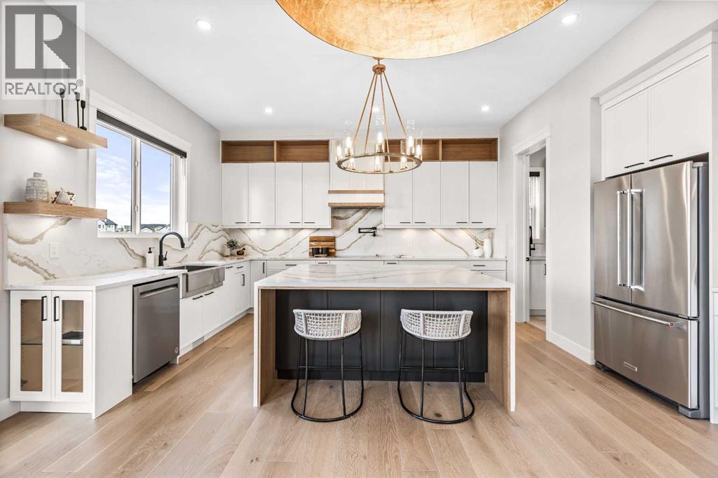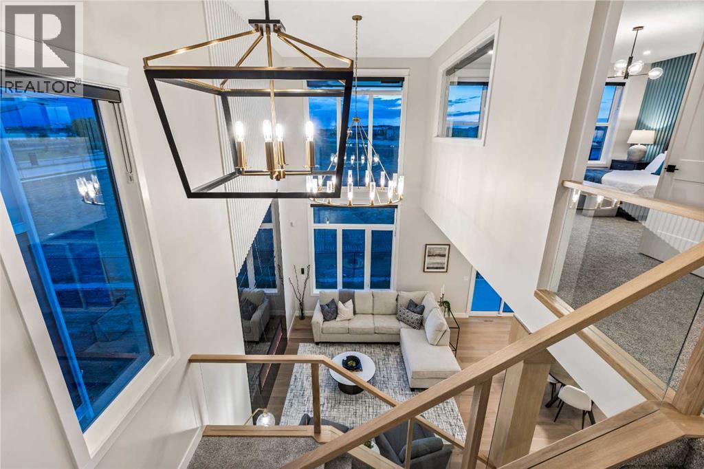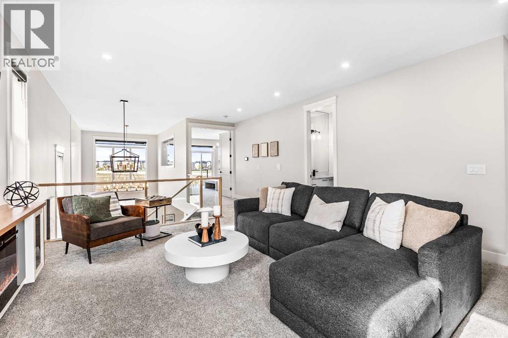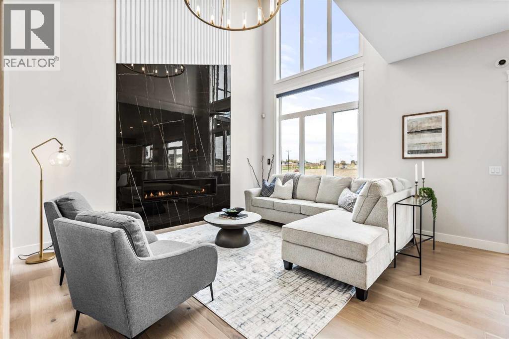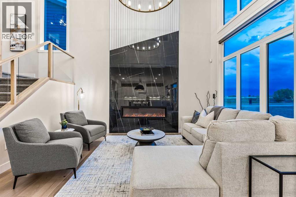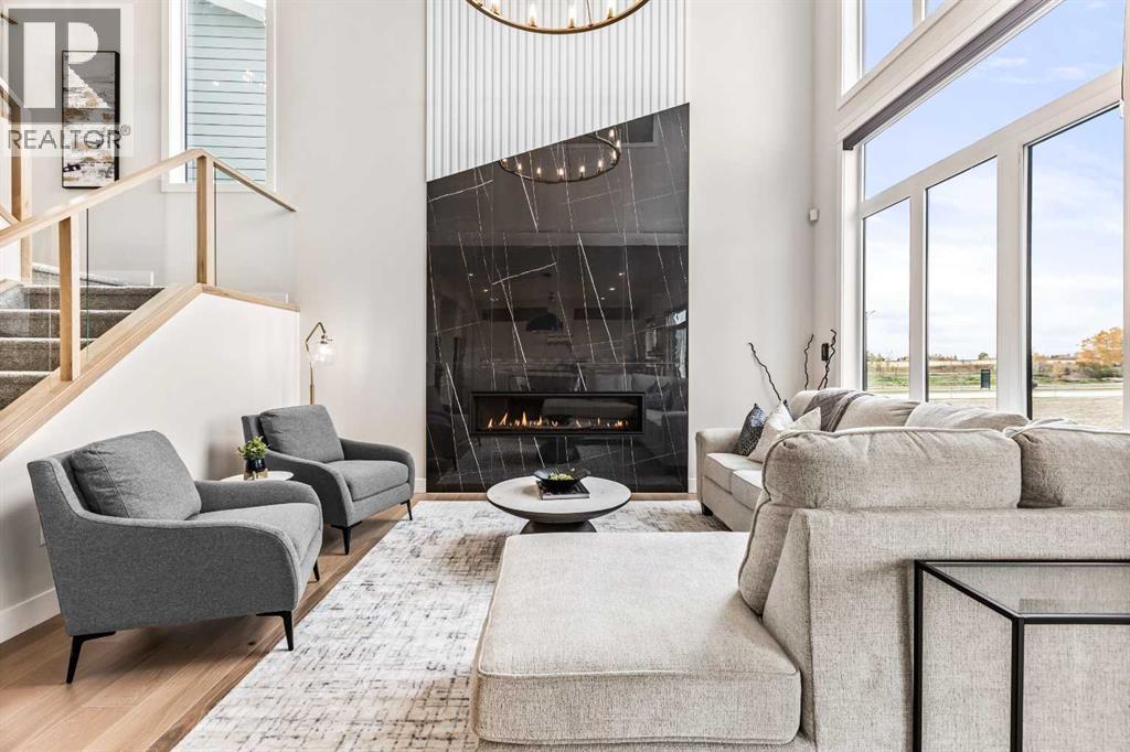 Situated in a tranquil lakeside neighborhood, this stunning two-storey show home offers 6 bedrooms, 5 full bathrooms, and a fully developed basement, all set on a premium lot. The main level features soaring 10-foot ceilings, rich hardwood floors, quartz surfaces, a stylish living room with a feature wall, a private den or office, and a dedicated spice kitchen equipped with a gas range, hood fan, fridge, and dishwasher. The upgraded main kitchen is highlighted by a waterfall island and built-in KitchenAid appliances.The open-to-above family room is designed to impress, showcasing a natural gas fireplace and a striking staircase with glass railings and motion-sensor lighting. Upstairs, you’ll find a spacious bonus room with a fireplace, a convenient laundry room with sink, and a luxurious primary suite complete with a 6-piece ensuite and private balcony. Two additional bedrooms share a Jack and Jill bathroom, while a fourth bedroom is paired with a separate full bath.The fully finished basement includes a separate side entrance, a large recreation room with fireplace, a gym area, wet bar, two bedrooms, and a full bathroom. Completing the home is a triple-car garage, an extended exposed aggregate driveway, and a glass-railed deck—perfectly blending style, space, and functionality. (id:63190)