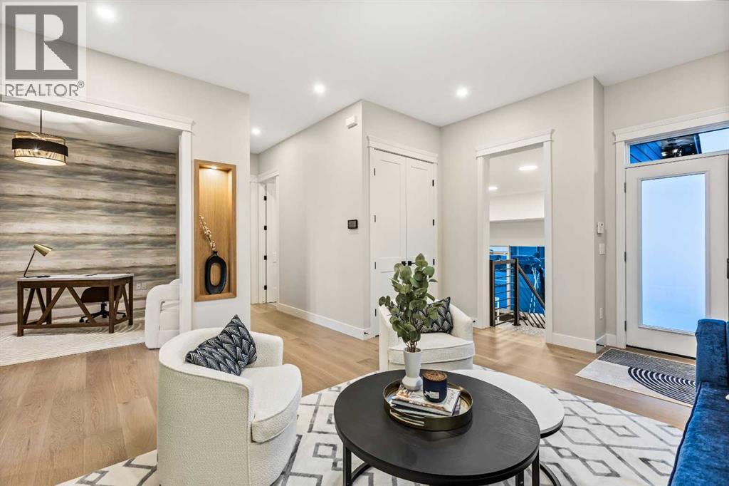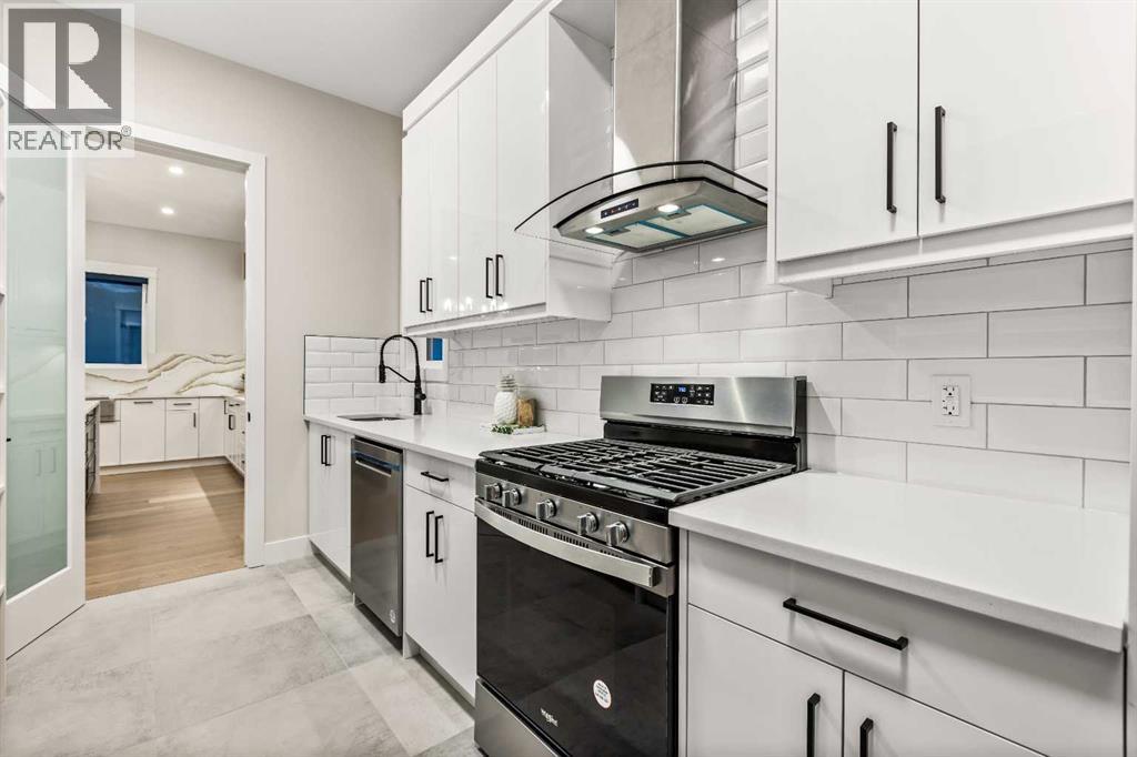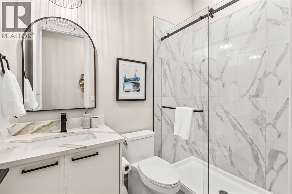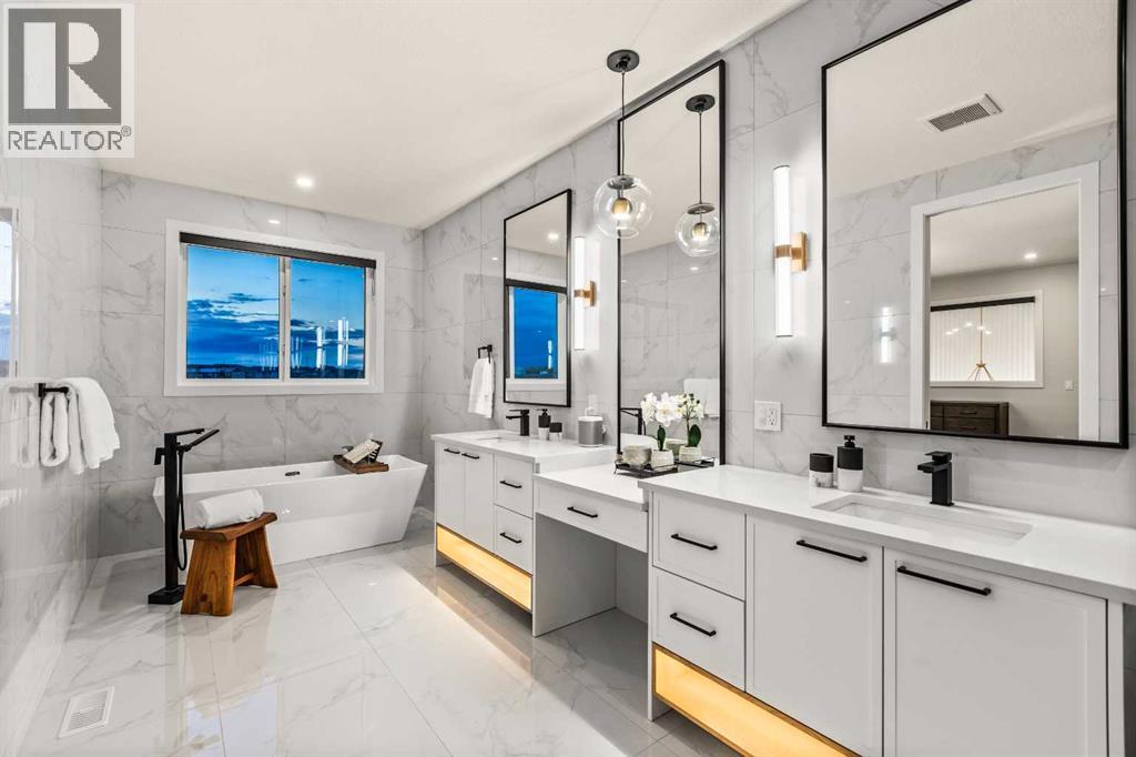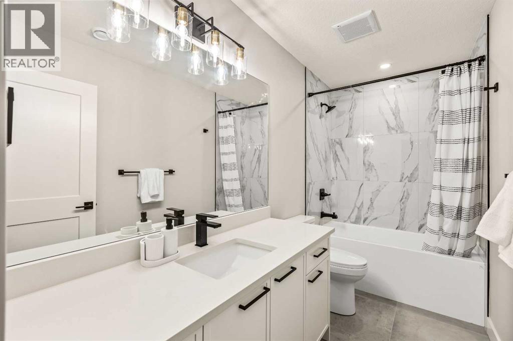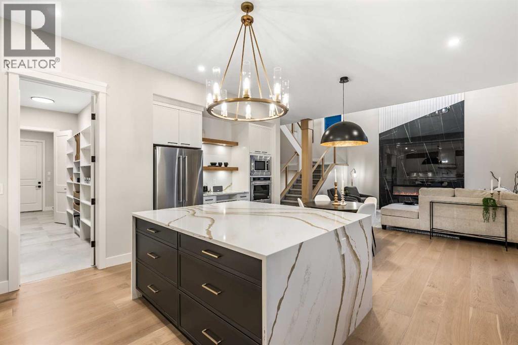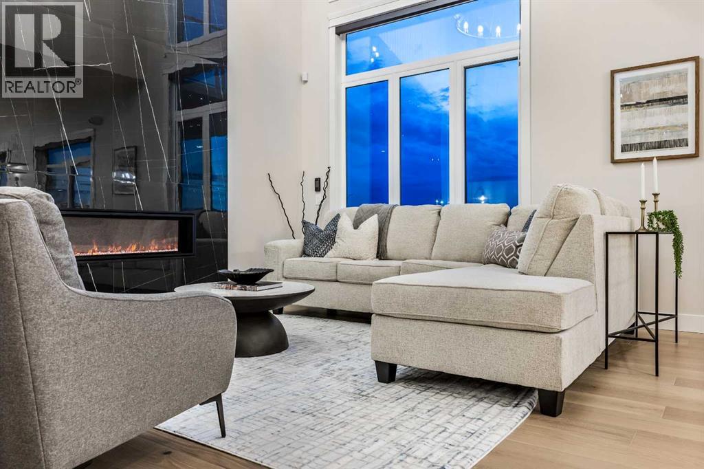 Situated in a tranquil lakeside neighborhood, this stunning two-storey show home offers 6 bedrooms, 5 full bathrooms, and a fully developed basement, all set on a premium lot. The main level features soaring 10-foot ceilings, rich hardwood floors, quartz surfaces, a stylish living room with a feature wall, a private den or office, and a dedicated spice kitchen equipped with a gas range, hood fan, fridge, and dishwasher. The upgraded main kitchen is highlighted by a waterfall island and built-in KitchenAid appliances.The open-to-above family room is designed to impress, showcasing a natural gas fireplace and a striking staircase with glass railings and motion-sensor lighting. Upstairs, you’ll find a spacious bonus room with a fireplace, a convenient laundry room with sink, and a luxurious primary suite complete with a 6-piece ensuite and private balcony. Two additional bedrooms share a Jack and Jill bathroom, while a fourth bedroom is paired with a separate full bath.The fully finished basement includes a separate side entrance, a large recreation room with fireplace, a gym area, wet bar, two bedrooms, and a full bathroom. Completing the home is a triple-car garage, an extended exposed aggregate driveway, and a glass-railed deck—perfectly blending style, space, and functionality. (id:63190)