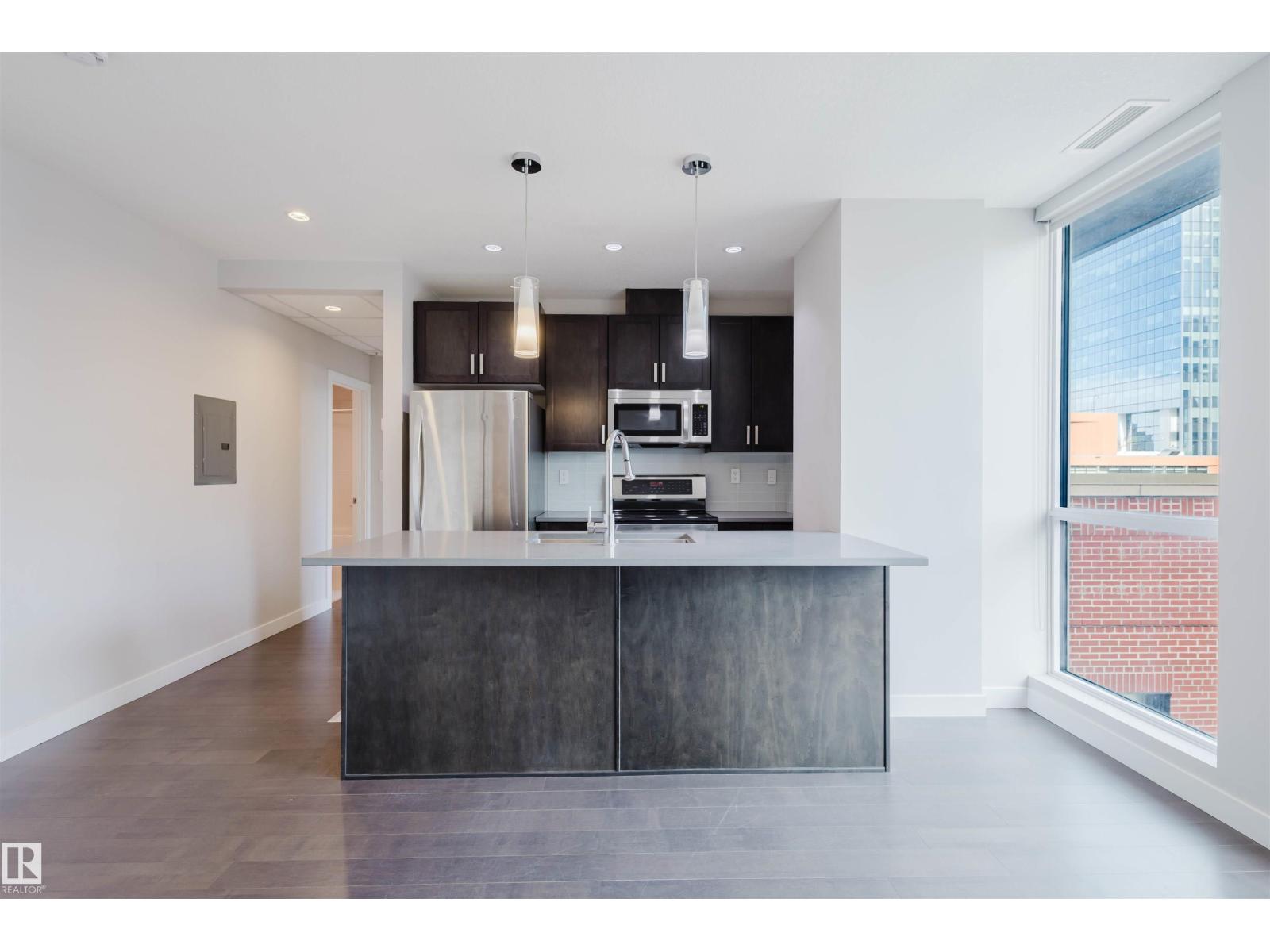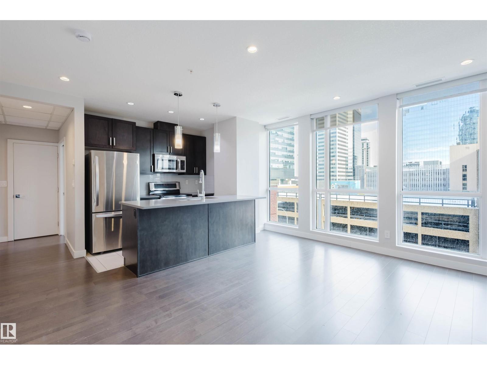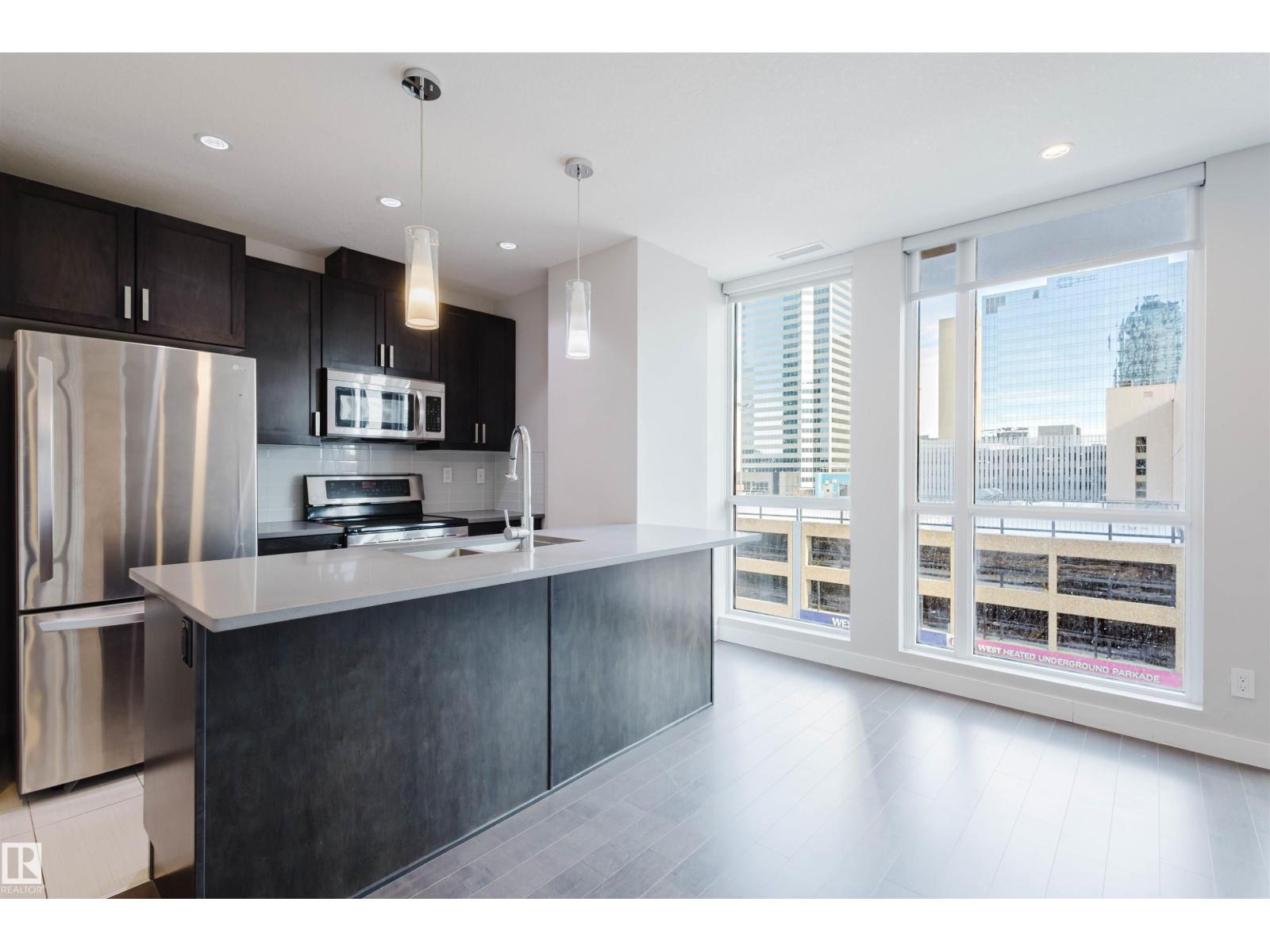 Welcome to this TWO bedrooms ONE bath condo unit in the highly sought-after ULTIMA located in the heart of the Ice District in downtown. Open concept floor plan features floor-to-ceiling windows with lots of natural light; 9’ ceiling & hardwood flooring in the living room; Kitchen has quartz countertops & stainless steel appliances. Two gernously sized bedrooms, one full bath and in-suite laundry. The Ultima offers great amenities including central A/C, gym, social room & outdoor patio with hot tub. Walking distance to Rogers Place, City Centre, LRT, Grant Macewan University, restaurants, bars and much more! Perfect for students, professionals, investors or small business owners looking for a place to live & work! (id:63190)