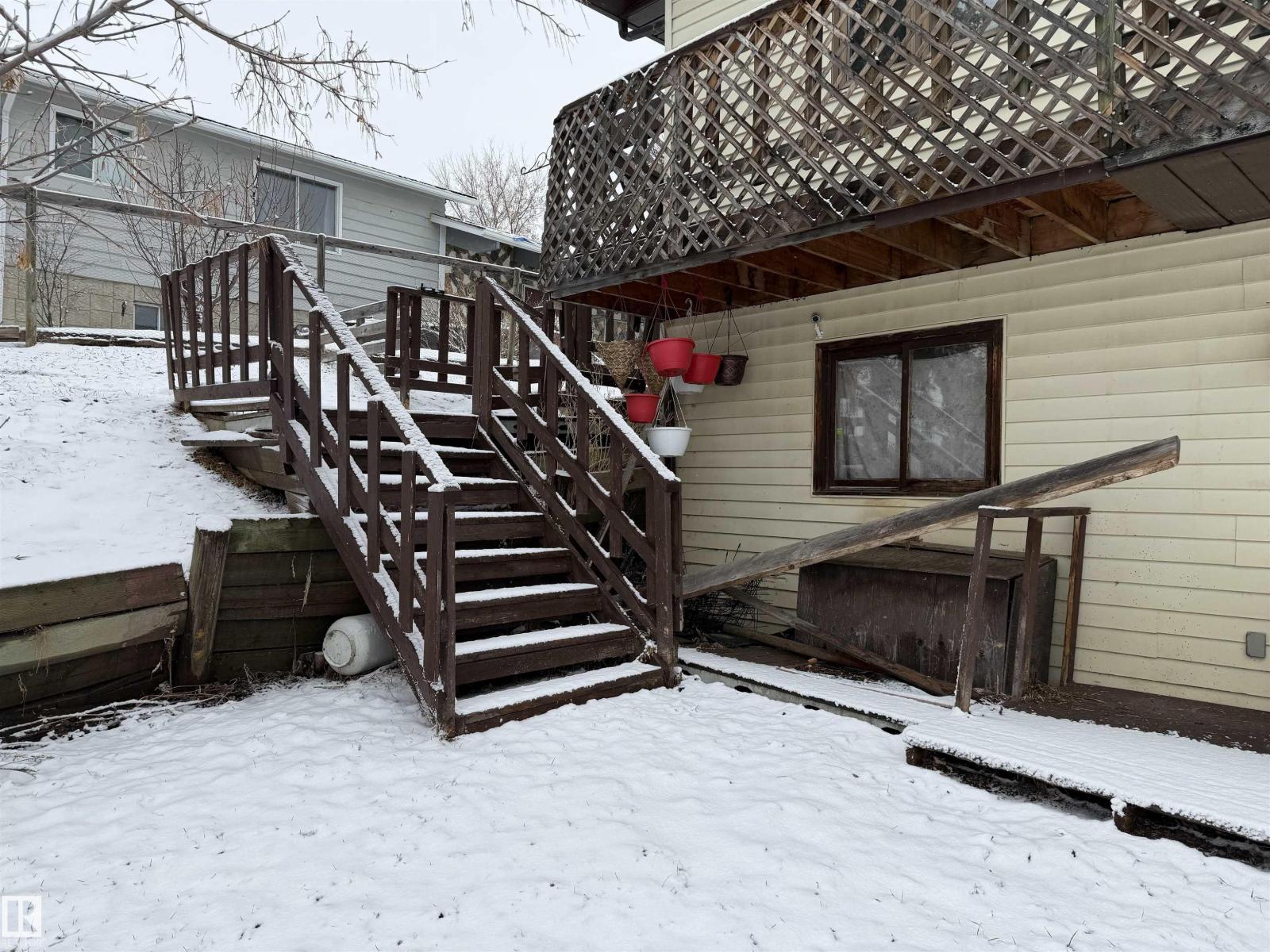 Affordable living in Sangudo – This open-concept walk-out bungalow offers three bedrooms and room to grow! Ideal opportunity to build equity with a little work. The main floor has a large open-concept kitchen and living area and includes all 3 bedrooms and a full bath. The primary bedroom has sliding doors to an upper deck overlooking the southwest facing backyard. The walkout basement is partially finished with a bathroom and a versatile hobby room that could be a fourth bedroom and includes lots of area for further development. Upgrades in 2017 include a furnace, on-demand hot water, and central A/C. Walking distance to K-12 school. Convenient access to Highway 43 and located an hour to Edmonton. Property is being sold as-is, where-is (judicial sale). (id:63190)