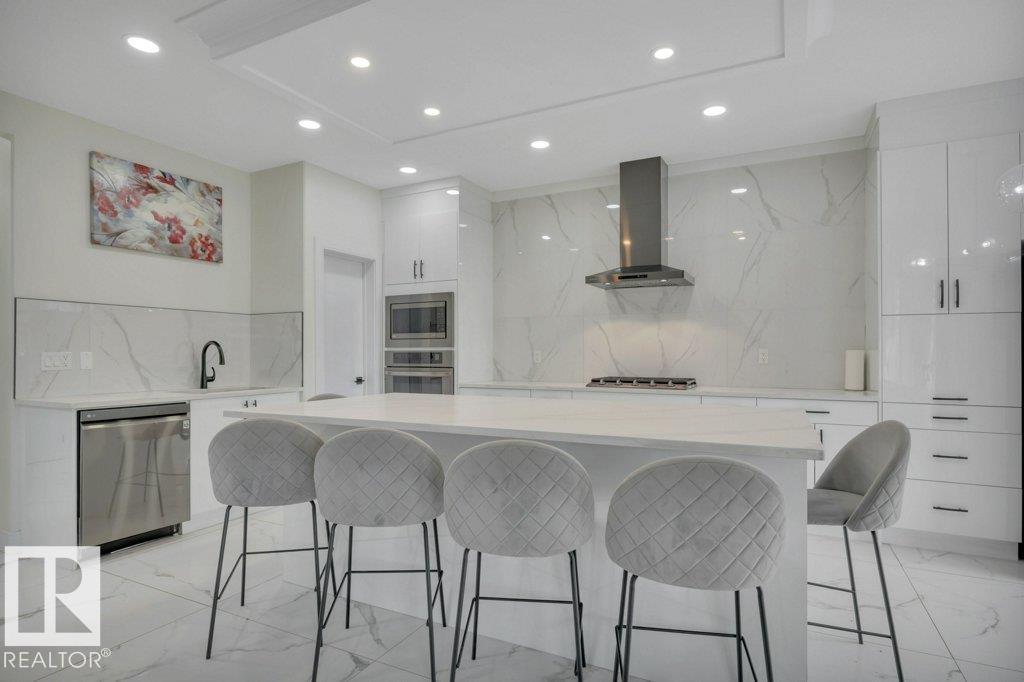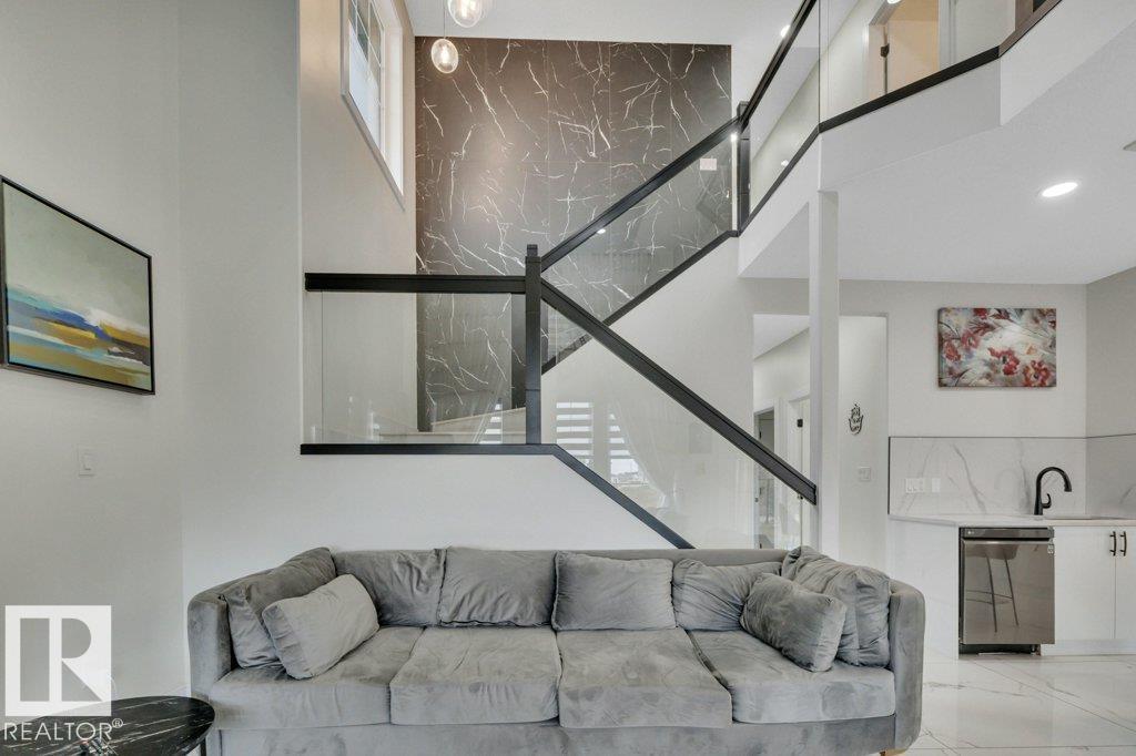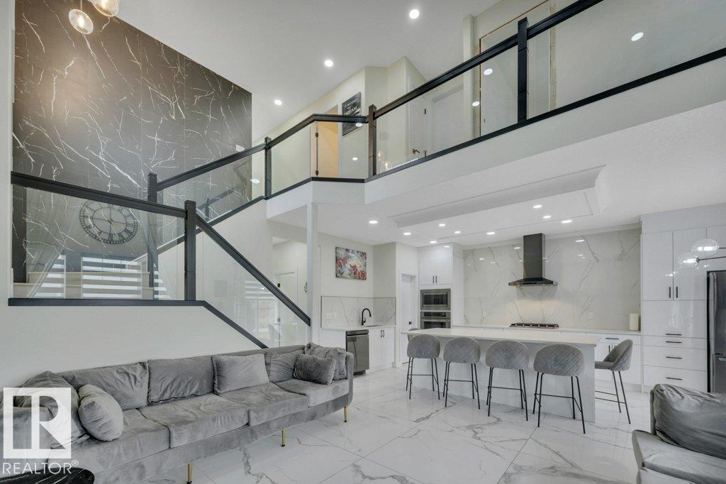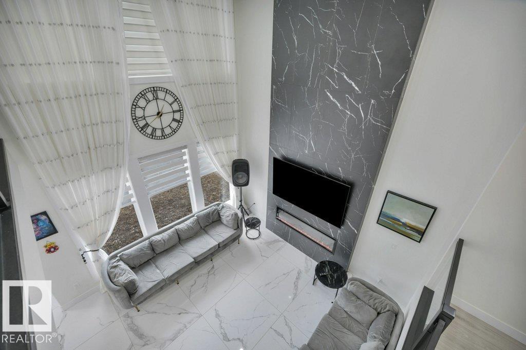 Custom-built 2 storey home offering 3 + 1 bdrm, with double attached garage. From the moment you enter, you're greeted with luxury finishes & soaring 18 foot ceilings in the living rm, highlighted by an oversized window & a striking floor-to-ceiling tiled wall with linear fireplace. Main flr showcases elegant 36x36 high-gloss tile flooring, designer black hardware, custom zebra blinds with remote-controlled top window coverings. The chef-inspired gourmet kitchen features high-end LG appliances, built-in oven & microwave, gas cooktop, quartz countertops, a massive 8' x 4' island, & a walk-through pantry leading to the mudroom. Upstairs has luxury vinyl plank flooring 3 spacious bdrms, a convenient laundry rm, & a beautiful catwalk with glass inserts overlooking the main flr. The luxurious primary suite includes a 5 piece spa-like ensuite with soaker tub. Fully Finished bsmnt has large rec rm, 1 bdrm, & 3 pc bthrm. Situated on large corner lot, this home blends modern elegance with everyday functionality. (id:63190)