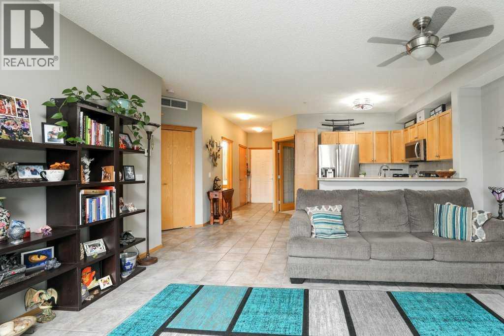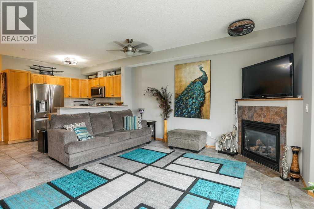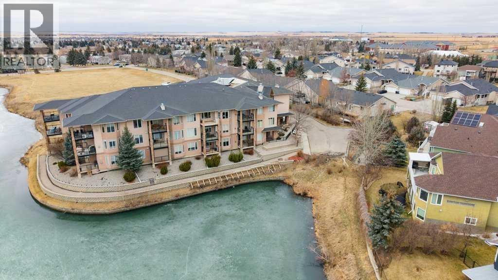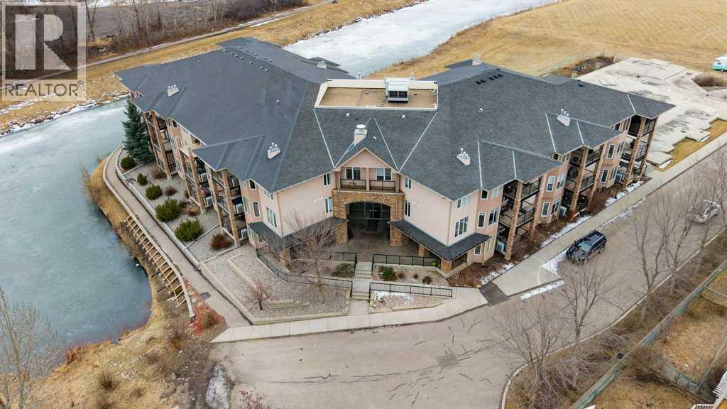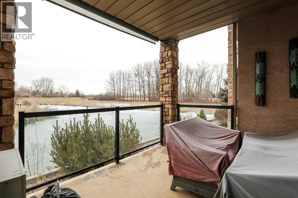 Highwood Springs Estates — a 36-unit condo community where opportunities are limited and ownership tends to be long-term. This main floor unit is set in one of the most desirable locations, backing directly onto the lake with uninterrupted views extending to the Highwood Golf Course — the Foothills’ premier 27-hole golf destination. Surrounded by mature trees and open green space, it offers a quiet, natural setting where wildlife is often part of the landscape. The covered deck, complete with gas line, is perfectly positioned to take it all in. This home has been meticulously maintained and it shows. The living area is anchored by a gas fireplace, with air conditioning in place for the warmer months. The kitchen is clean and updated with a newer dishwasher, and the washer and dryer have also been replaced in recent years. The primary bedroom features a walk-through closet and a full ensuite with a walk-in jetted tub. A den adds flexibility without sacrificing space, and there’s also a second 3-piece bathroom and dedicated laundry room. Heated underground parking and storage are included. Units in this complex are tightly held — and positions like this within it are rarely available. Arrange your private showing at your convenience! (id:63190)