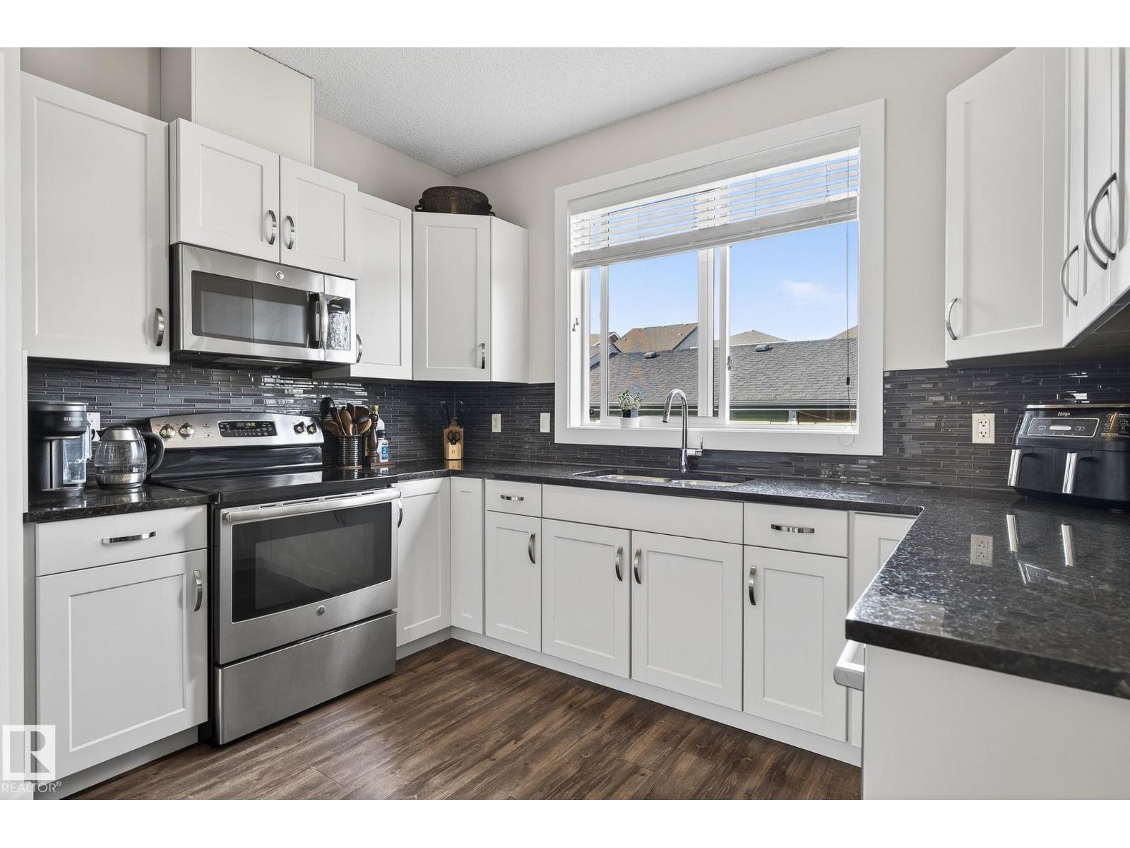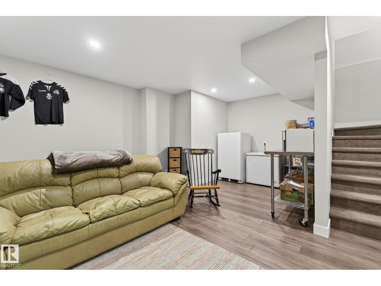 MOVE IN READY! FINISHED BASEMENT. NO CONDO FEES and NOT a zero-lot! CORNER UNIT, fully fenced! Steps from the new Lewis Farms Recreation Centre in the heart of Rosenthal is this South facing home. Front window views of the park/pond (instead of houses). Street offers additional parking in this location. Tons of light with no new construction dirt and dust! IMMACULATE 4 bed/4 bath home with attention to every finished detail. Step into 9ft ceilings on the main. Numerous upgrades including additional blown in insulation, new extra large water heater, professional paint 2025 (whole house), professional landscaping (front and back), 2- tier cedar decks, and basement development. Granite and stainless steel appliances complete the kitchen that looks into the back. 3 spacious bedrooms up with a walk-in closet and en-suite in the primary. UPSTAIRS LAUNDRY. Basement beautifully done with a full bath (walk-in shower) fourth bedroom and rec room. Alley access to the double detached garage. Must see to appreciate (id:63190)