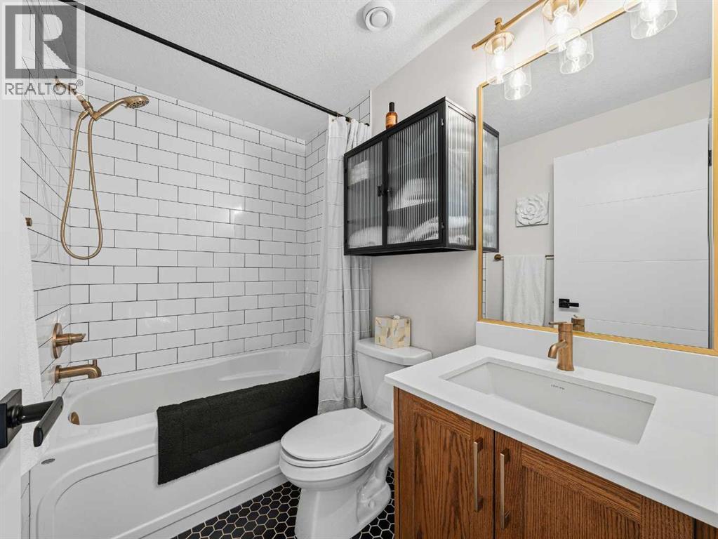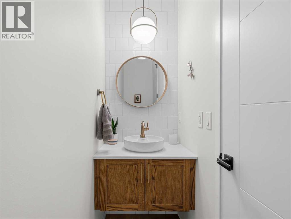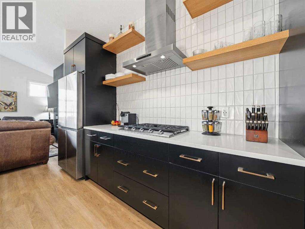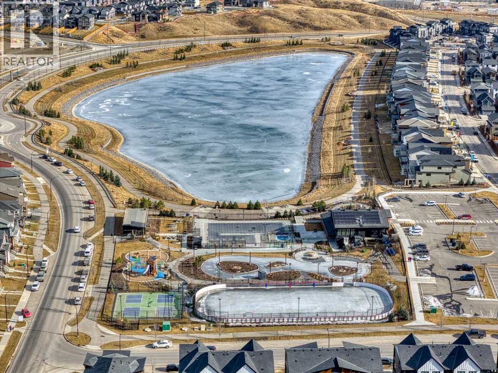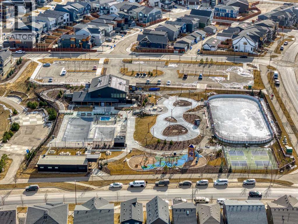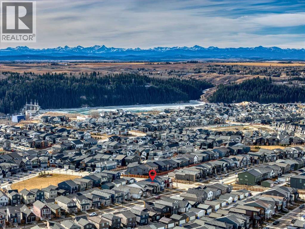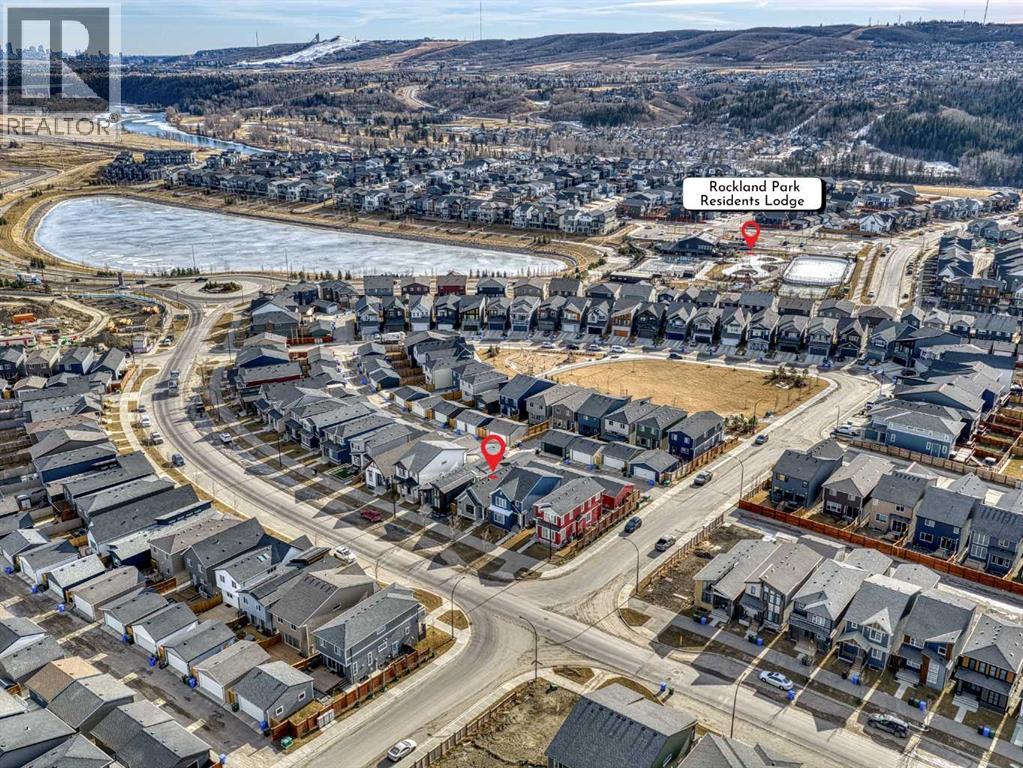 In Northwest Calgary's new Rockland Park community, this Morrison Homes bungalow offers easy maintenance without condo board rules, restrictions, or fees. Minimal exterior upkeep—just the city sidewalk, short front path, tiny lawn patch, and small driveway to the rear garage. Perfect for downsizers. Offering over 1,954 sq. ft. of total living space, this 2022-built home features an open-concept main floor with vaulted ceilings from living room to kitchen and central air conditioning. Luxury vinyl plank flooring runs across the main level. The dining area sits adjacent to the kitchen, which has a quartz waterfall island with integrated sink and seating for four. The kitchen includes a stainless steel appliance package: gas cooktop, built-in oven, microwave, and dishwasher. Finishes continue into the primary bedroom with its ensuite bathroom featuring dual vanities on quartz countertops, hexagonal floor tile, glass-enclosed shower with dual fixtures, and soaker tub with tile surround. A large walk-in closet has built-in storage. The fully developed basement has a family room and two additional bedrooms, one used as a home office. Stacked washer and dryer are in an enclosed laundry area with storage for cleaning supplies. The basement bathroom matches the primary ensuite with tiled bathtub/shower and quartz vanity. The backyard has synthetic turf instead of grass. Steps from the back door is an oversized detached double garage, insulated and drywalled, with parking and storage space. Built in 2022, this home is protected by the Alberta New Home Warranty Program's 5- and 10-year warranties, covering building envelope, structural components, distribution systems (plumbing, electrical, heating), and more for peace of mind. Rockland Park owners enjoy exclusive lodge/park access (pool, hot tub, pickleball, playground, fire pit) plus proximity to Lynx Ridge Golf Course, walking paths, mountains, and highways. Schedule your showing today! (id:63190)