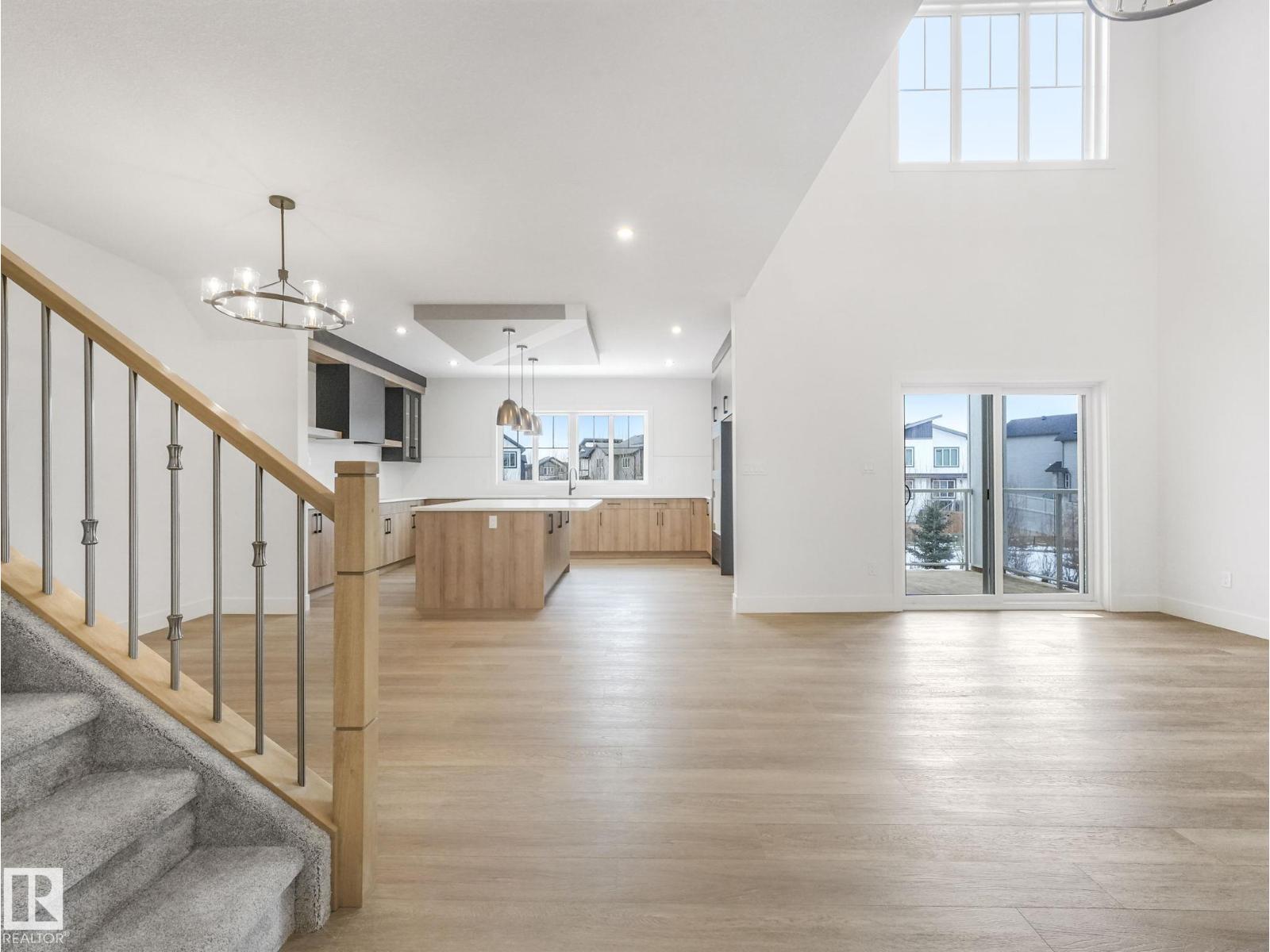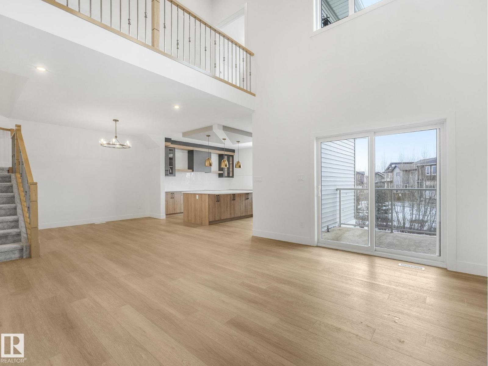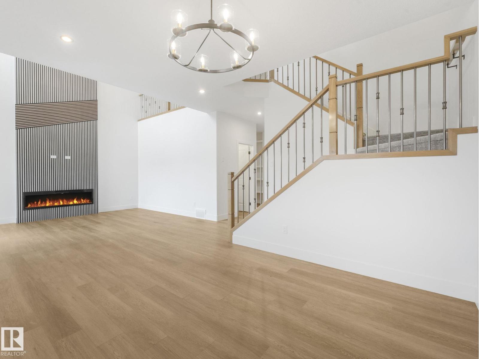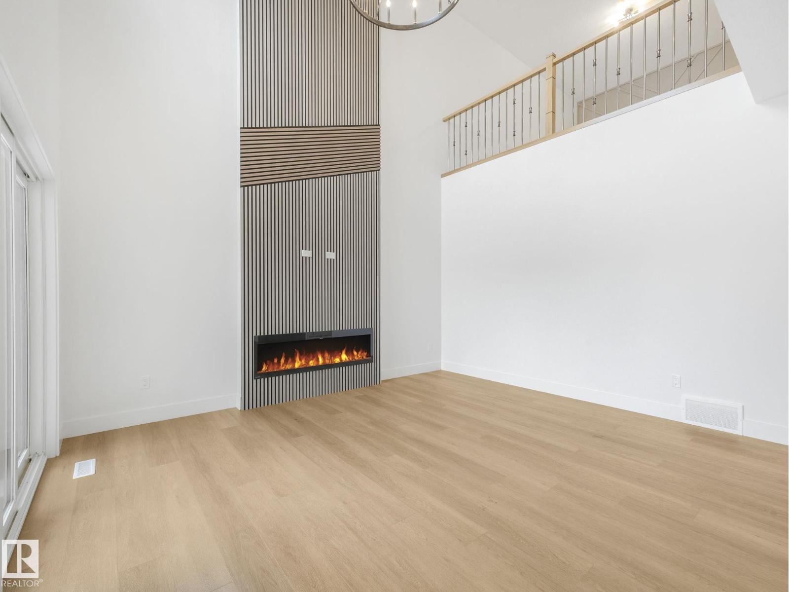 This brand-new home in McLaughlin, Spruce Grove offers a spacious, modern layout set against a beautiful ravine backdrop. Upstairs features 3 bedrooms, a second den, a bonus room, and convenient laundry, giving you plenty of space and flexibility for family living. The main floor adds even more versatility with a den and full bathroom, ideal for guests or a home office. The large wrap-around kitchen is finished with quartz countertops and modern cabinetry, offering ample prep and storage space while overlooking the impressive open-to-below living room with a fireplace, creating a bright and inviting atmosphere. Large rear windows capture the scenic views and bring in natural light. The walkout basement offers great potential for future development with direct outdoor access. Completing the home is an oversized double attached garage, providing extra room for parking and storage. With its functional layout, modern finishes, and prime ravine location, this home stands out in a growing Spruce Grove community (id:63190)