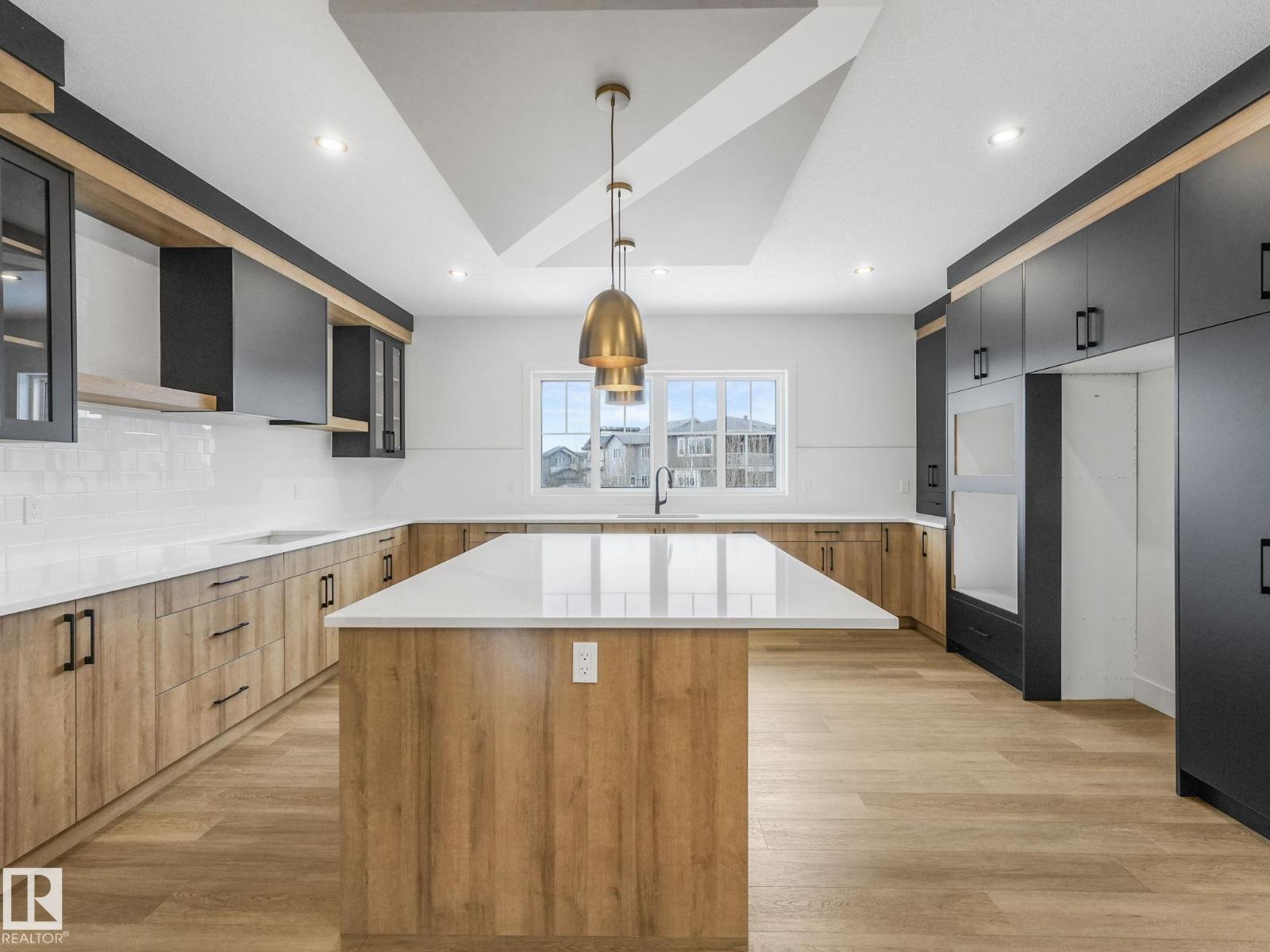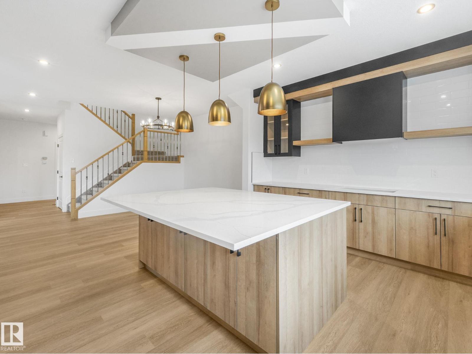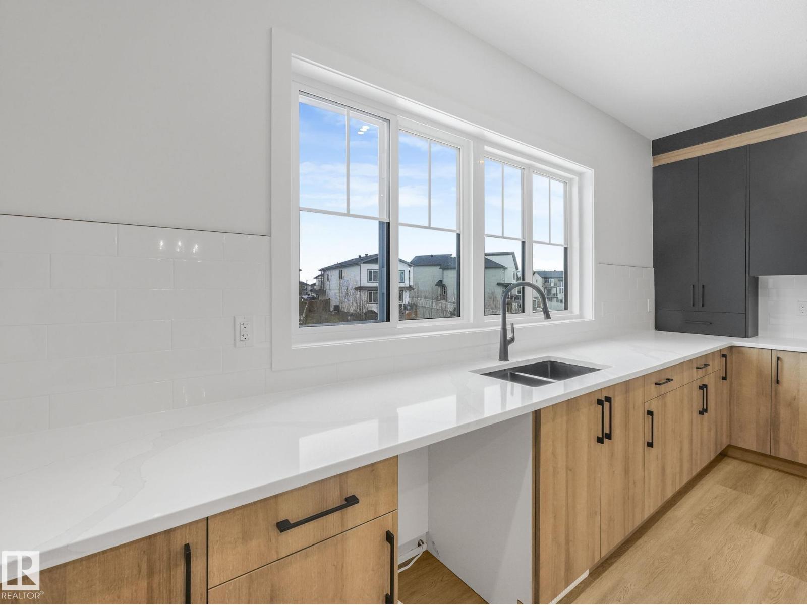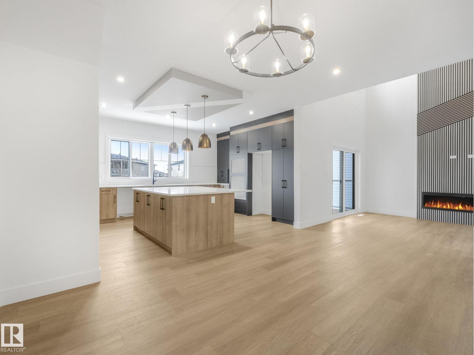 This brand-new home in McLaughlin, Spruce Grove offers a spacious, modern layout set against a beautiful ravine backdrop. Upstairs features 3 bedrooms, a second den, a bonus room, and convenient laundry, giving you plenty of space and flexibility for family living. The main floor adds even more versatility with a den and full bathroom, ideal for guests or a home office. The large wrap-around kitchen is finished with quartz countertops and modern cabinetry, offering ample prep and storage space while overlooking the impressive open-to-below living room with a fireplace, creating a bright and inviting atmosphere. Large rear windows capture the scenic views and bring in natural light. The walkout basement offers great potential for future development with direct outdoor access. Completing the home is an oversized double attached garage, providing extra room for parking and storage. With its functional layout, modern finishes, and prime ravine location, this home stands out in a growing Spruce Grove community (id:63190)