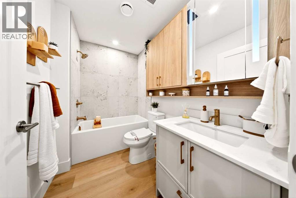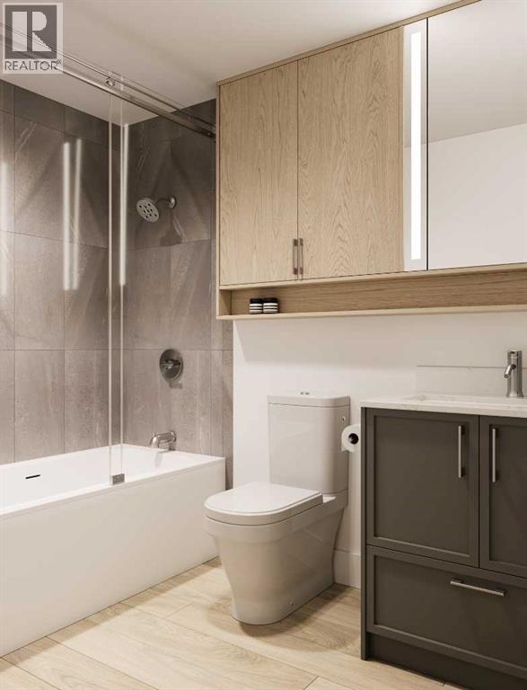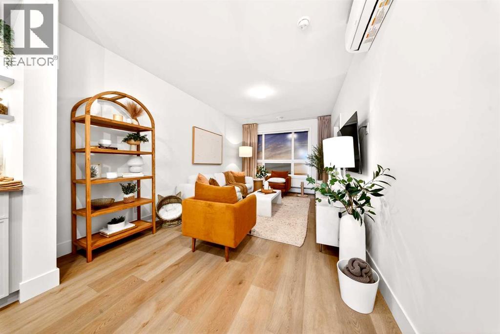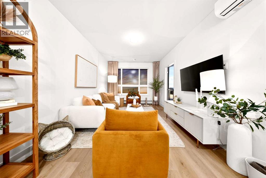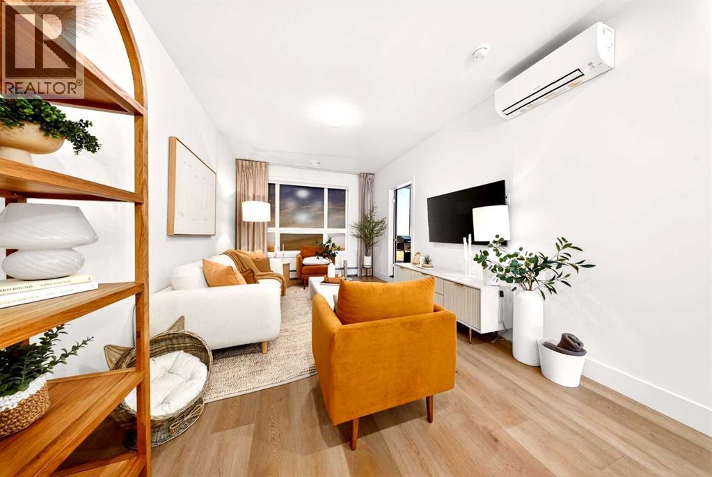 Welcome to Aspen Village by Vesta Properties! This is modern urban living in a thoughtfully designed 1-bedroom residence offering exceptional functionality, contemporary finishes, and a vibrant lifestyle setting. Featuring an open-concept layout, this home combines comfort and style with a spacious living area and designer kitchen ideal for everyday living and entertaining.The sleek kitchen showcases quartz countertops, full-height cabinetry, under-mount sinks, and a central island with pendant lighting. Energy-efficient stainless-steel appliances and smart-controlled stacked laundry provide both convenience and modern efficiency. Retreat to the well-appointed bedroom complete with a generous walk-in closet, while the elegant bathroom features clean modern detailing, quartz surfaces, and timeless fixtures. Durable luxury vinyl plank flooring flows throughout, complemented by curated interior palettes and contemporary ceiling finishes. Enjoy outdoor relaxation on your private balcony. Built with quality construction standards including triple-pane windows, engineered floor systems, and enhanced soundproofing, this home offers comfort, quiet, and energy efficiency.Residents will have the opportunity to join the member's only Aspen Club, a private amenity hub with collaborative workspaces, lounge areas, a state-of-the-art fitness centre and spin studio, yoga and games rooms, and beautifully designed rooftop gathering spaces. Plus, Aspen Village will feature an Urban Village with over 60,000 sq. ft. of retail and services. Residents will enjoy pedestrian-friendly streets lined with boutique shopping, cafés, dining, wellness studios, daycare, medical services, and everyday conveniences—creating a truly connected and vibrant community atmosphere.Ideally positioned close to transit, parks, shopping, and key lifestyle amenities, this residence presents an exceptional opportunity for first-time buyers, downsizers, or investors seeking long-term value in one of Calgary’ s most exciting emerging communities. Anticipated possession is scheduled for 2027. (id:63190)