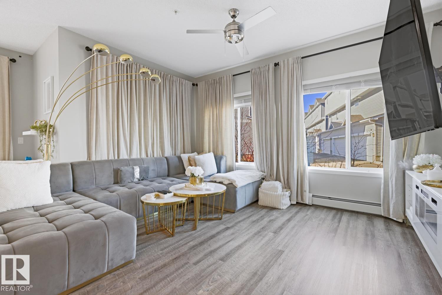 Discover the perfect blend of style and location in this immaculate 2-bedroom + den corner unit, located in the heart of Southwest Edmonton. Perfectly situated right beside Monsignor Fee Otterson Elementary/Junior High School and steps from Otter Park, this home is an ideal choice for young families, professionals, or investors. Highlights: Contemporary Kitchen: Cook and entertain in a spacious kitchen featuring a large island with a flush eating ledge, sleek quartz countertops, premium stainless steel appliances, and a trendy subway tile backsplash. Spacious Layout: Enjoy an open-concept design with nearly 1,100 sq. ft. of living space, 9-foot ceilings, and durable luxury vinyl plank flooring throughout. Master Retreat: The primary bedroom boasts large windows for abundant natural light, a massive walk-in closet, and a private 4-piece ensuite. Unbeatable Location: Don't miss out on this move-in-ready gem in one of Edmonton’s most desirable southside neighbourhoods! (id:63190)