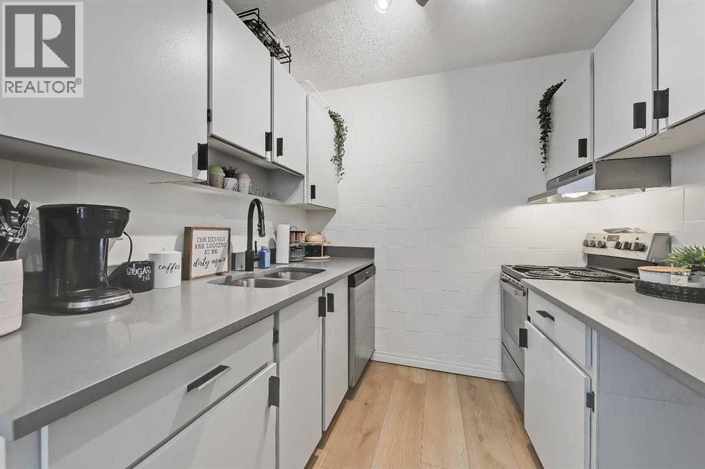 LOVELY UPDATED 2 BEDROOM END UNIT | PRIME INNER-CITY LOCATION | PANORAMIC WEST VIEW!This updated 2-bedroom condominium in Kensington Court offers a spacious layout, beautiful west-facing view, pet-friendly living and the added benefit of end-unit privacy with only one shared non-bedroom wall, all in an unbeatable location near downtown, transit, parks and all the lifestyle amenities that make Hillhurst/Kensington such a special place to call home. Whether you are an investor looking for a strong revenue property or a student or professional seeking comfortable inner-city living, this home checks all the right boxes.The unit itself offers a comfortable and functional layout with a panoramic view that brings in natural light and adds to the sense of space throughout the main living area. The dining room is generously sized and easily accommodates a full dining set, while the adjacent living room provides plenty of room to relax or entertain. The galley-style kitchen has been thoughtfully updated with quartz countertops, newer stainless steel appliances, updated matte black hardware, refreshed cabinetry, a double undermount sink with pull-down sprayer and a pantry storage. Both bedrooms are spacious and feature full-height double closets along with larger west-facing windows. The updated 4-piece bathroom includes a newer vanity and toilet, oversized mirror and modern lighting. Finishing touches such as luxury vinyl plank flooring, newer paint, venetian blinds, ceiling fans in both bedrooms, a roomy front entry and a rare in-suite storage room that offers secure, practical space for bikes, seasonal items and everyday extras. Convenience continues beyond the unit with a covered parking stall directly beside the rear entrance, one of only a handful in the complex, and laundry facilities available on every floor of the building.Beyond the unit, this location truly shines. You are within walking distance to Riley Park, the Sunnyside LRT station, the Bow River pathway system and Prince’s Island Park, with the energy and charm of Kensington Village just moments away. Spend your weekends exploring local favourites like Hayden Block, The Mash, Blanco Cantina, Pie Junkie, Higher Ground, Deville Coffee, Pages on Kensington, Hot Wax Records and The Plaza Theatre, while everyday essentials including Safeway and Shoppers Drug Mart are just around the corner. A smart investment and a fantastic place to live, all in one exceptional inner-city location. (id:63190)
