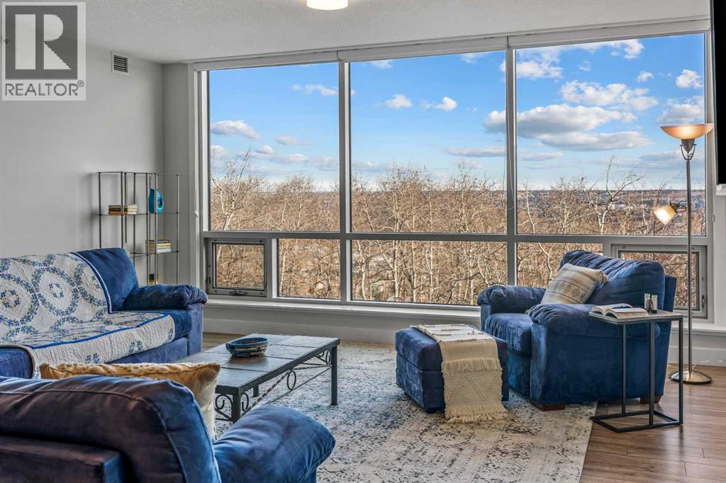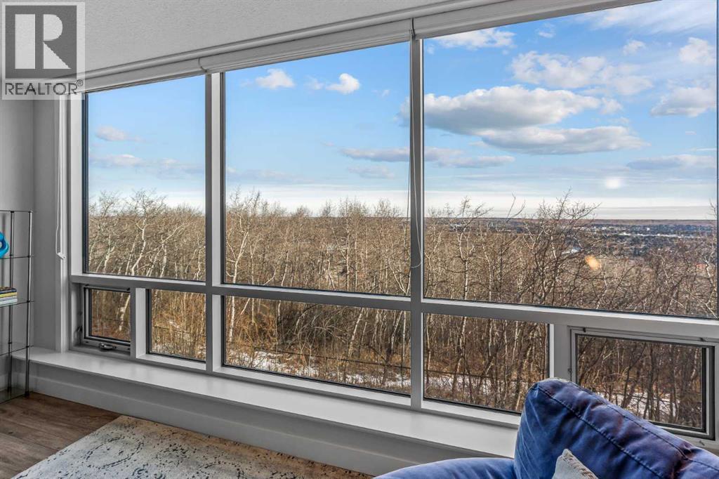 Experience uncompromising luxury at The Views, one of Calgary’s most prestigious adult living communities. This exceptional ravine-facing residence offers a rare opportunity to own nearly 1,600 sq. ft. of elegantly appointed, single-level living. Expansive floor-to-ceiling windows frame the breathtaking, unobstructed vistas, filling the home with natural light and showcasing the beauty beyond.Step onto your oversized private terrace - one of only a select few of this scale within the building - and take in the sweeping views of the Bow River Valley and the serene surrounding ravine. This is refined living at its finest, where tranquility, exclusivity, and sophistication meet.The thoughtfully designed open-concept layout is ideal for both everyday living and entertaining. At its heart is a chef’s kitchen that leaves no detail overlooked, featuring an oversized island, elegant cabinetry, quartz countertops, and an exceptional appliance package including a Sub-Zero refrigerator, a Wolf induction cooktop, a built-in Wolf wall oven with a microwave above, an ASKO dishwasher, and an upgraded pot filler. A spacious walk-in pantry ensures ample storage and effortless organization.The primary suite is a true retreat, anchored by a large window capturing stunning views. The spa-inspired ensuite offers a soaker tub, a walk-in shower with an incorporated bench, a double vanity, custom built-ins, and heated flooring for the ultimate comfort. A convenient pass-through panel provides direct access to the adjacent laundry room, complete with a sink and additional storage.An enclosed den with custom shelving functions beautifully as a home office or a reading room, and can accommodate a Murphy bed for guests. The bright second bedroom, currently used as a craft room, features direct access to the private terrace.Enjoy complete peace of mind with true lock-and-leave living in this secure community. Your titled, heated parking stall and private storage locker, conveniently l ocated on the same level as the suite, add everyday convenience. Residents also enjoy exclusive access to premium amenities, including a fitness centre complete with an infrared sauna, a 3D golf simulator, an owner’s lounge, and beautifully designed shared outdoor patio and courtyard areas, all just steps from the protected Paskapoo Slopes natural reserve.Shopping, dining, and daily conveniences at 85th Street SW and Aspen Landing are just minutes away, while Bowness Park and the Bow River pathway system offer nearby options for outdoor recreation. With easy access to the Trans-Canada Highway, weekend escapes to the mountains are effortless, and Stoney Trail ensures seamless connectivity throughout the city.Residences of this calibre at The Views are rarely available. Book your private showing today. (id:63190)