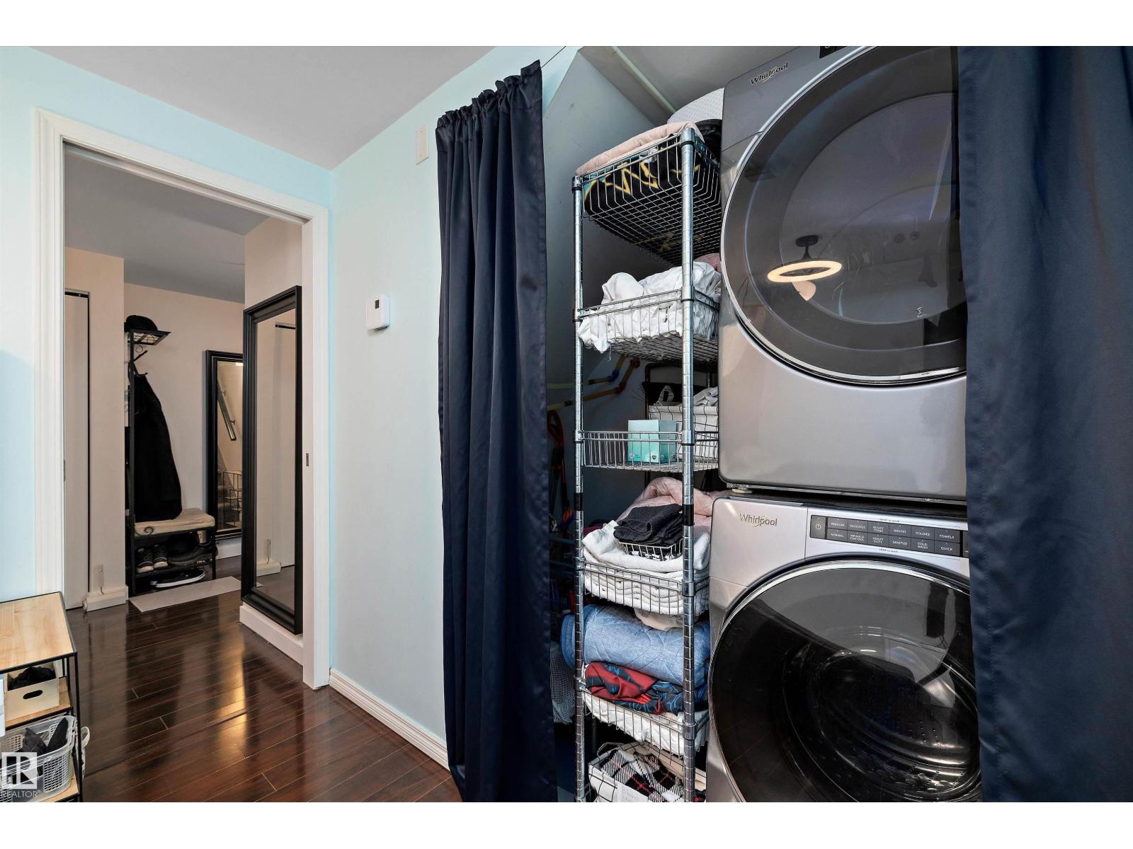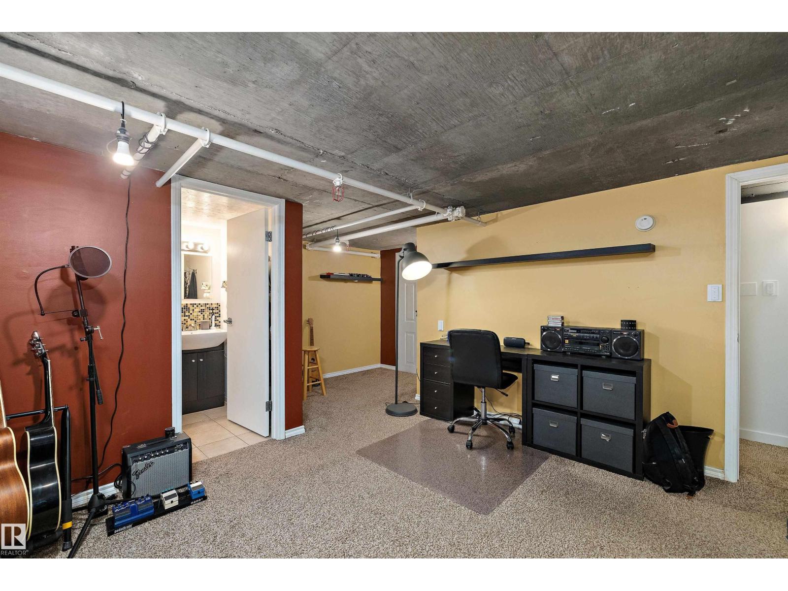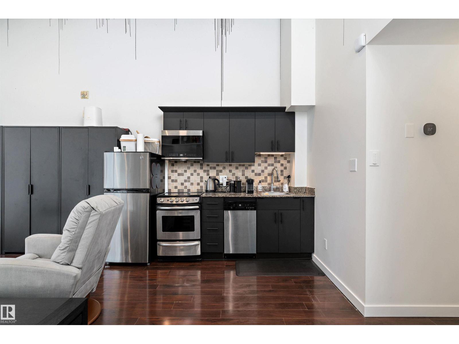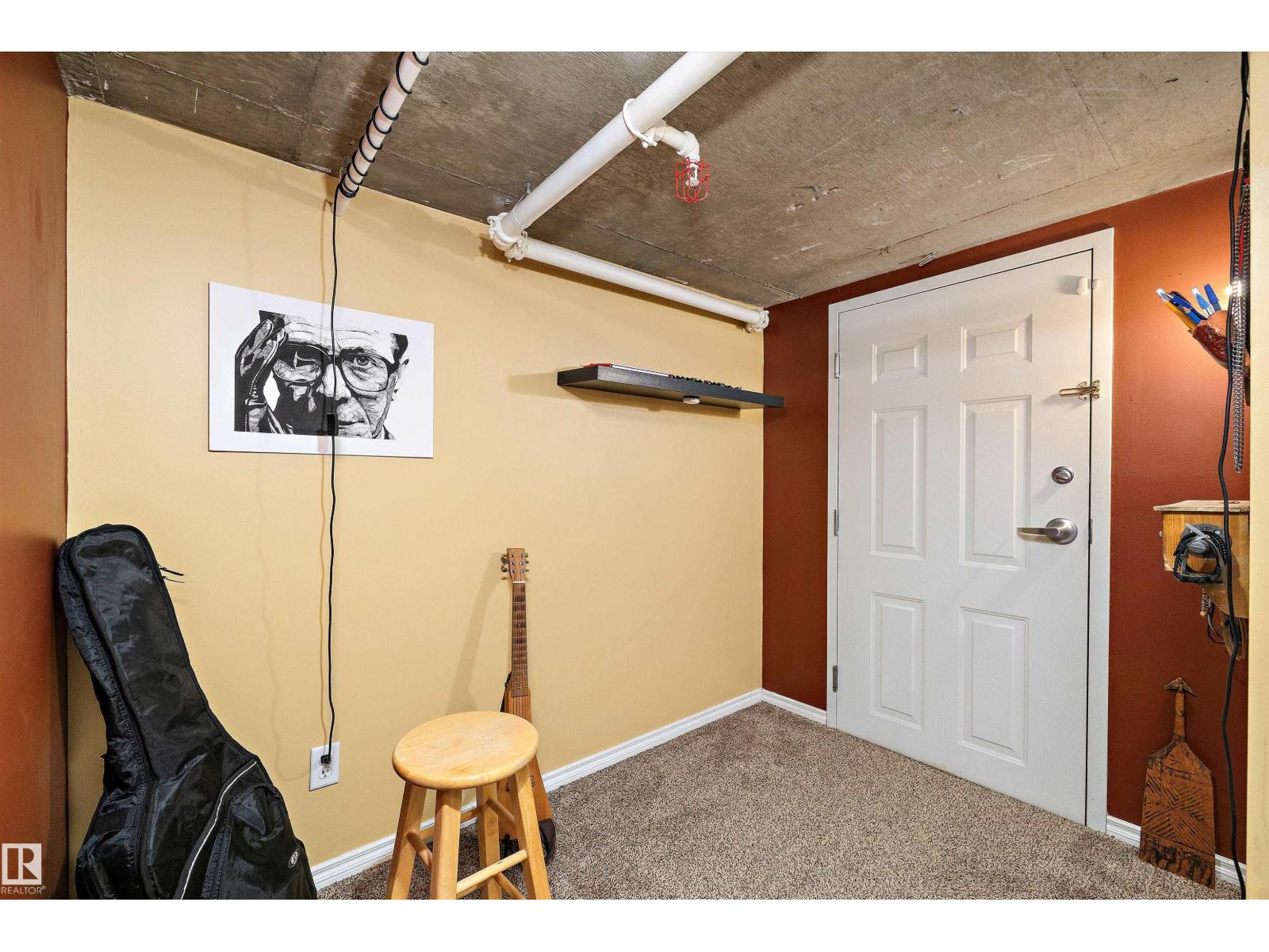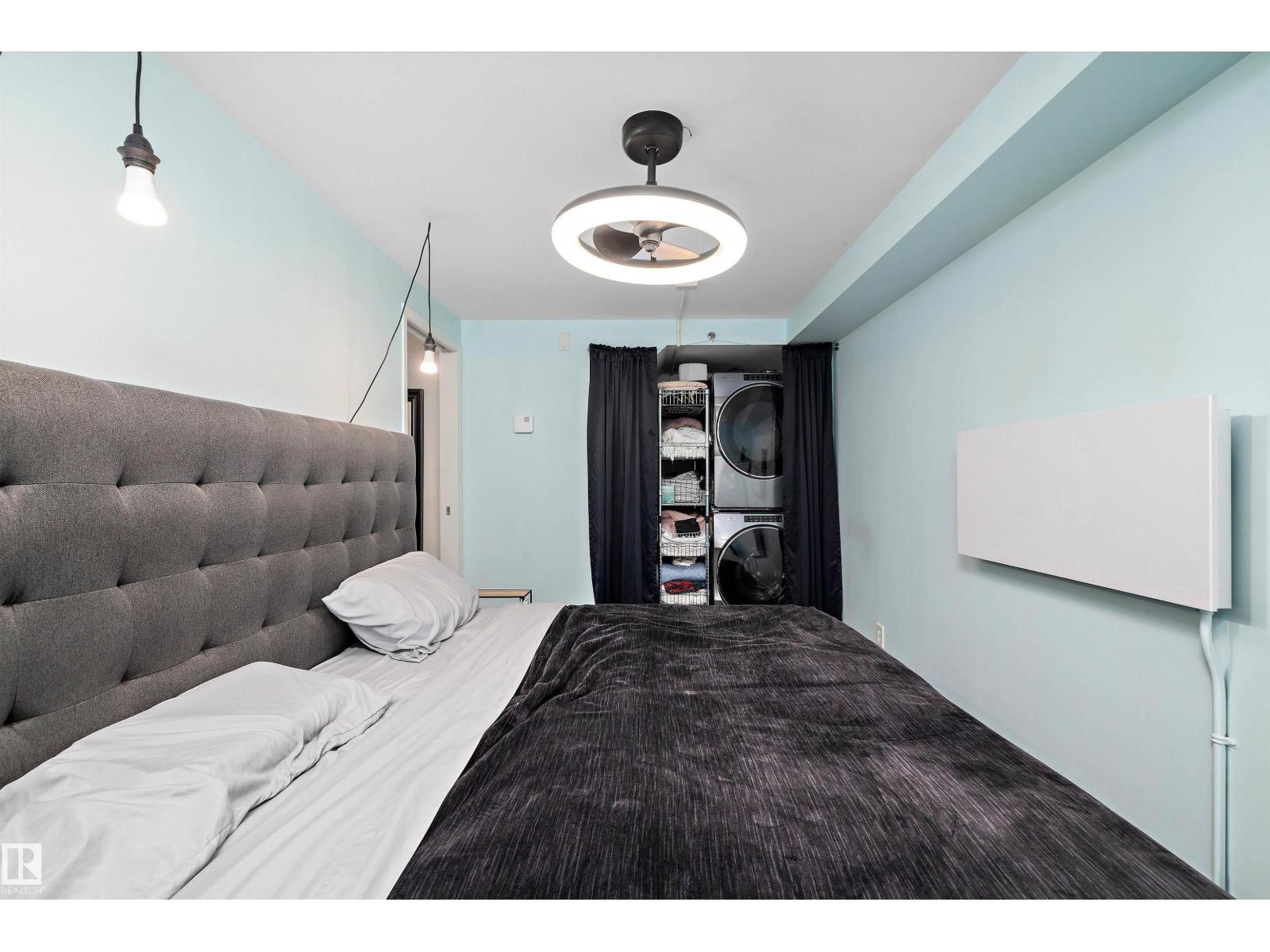 Elevate your lifestyle in this top-floor, two-storey loft at Cambridge Lofts in downtown Edmonton. This upgraded residence offers a rare river valley view and unbeatable convenience with direct, secure elevator access to the Central LRT—connecting you seamlessly to the University of Alberta, MacEwan, and NAIT, you don't even need to drive! Featuring soaring 18-ft ceilings, cinematic design with bold paint job, and customized book shelves and cabinet, this functional two-bedroom loft provides exceptional flexibility for living, working, or hosting. The upper-level offers a private ensuite, complemented by a second full bathroom (en-suite). Located steps from the ICE District, dining, and nightlife, this pet-friendly building is perfect for professionals, students, or first-time buyers. With low property taxes, Airbnb-friendly policies, and strong rental potential, this is a standout opportunity for both homeowners and investors. (id:63190)
