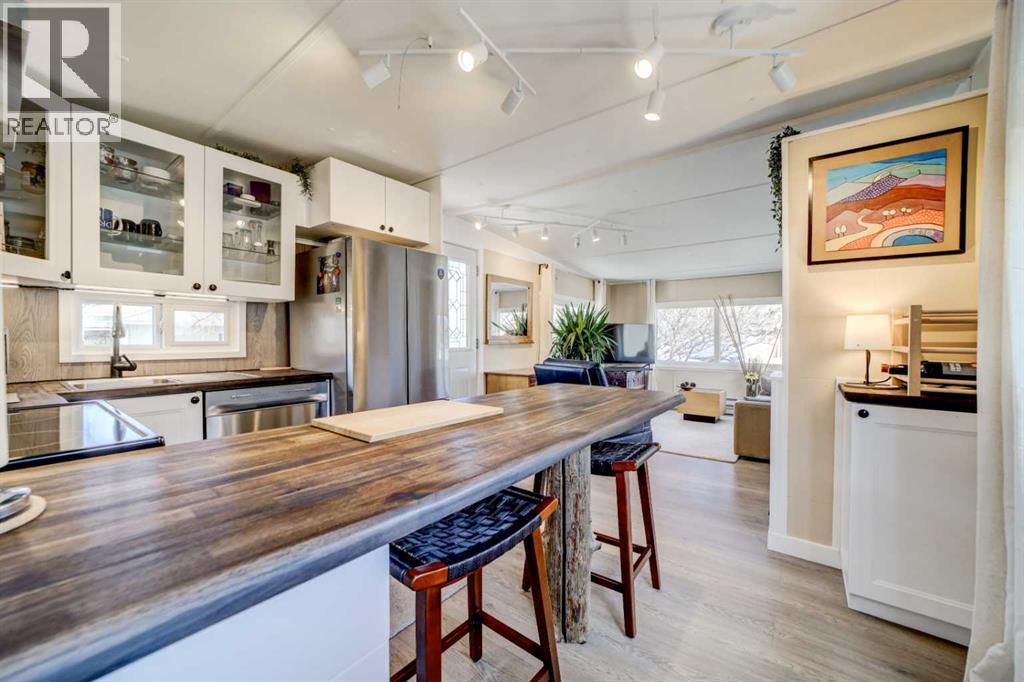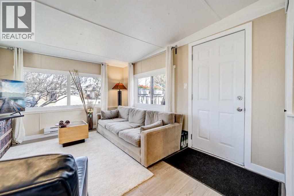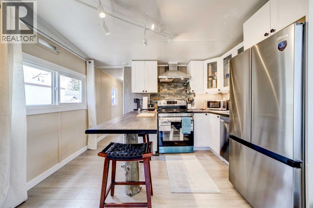 This 2 bedroom, 1 bathroom + den mobile home offers cozy, efficient living with a brand new IKEA kitchen, with new appliances, open concept dining, and living area.The home has had extensive updates, offering comfort, efficiency, and peace of mind for its next owner. Recent improvements include a fully insulated R12 underbelly with a new wood frame and weather barrier, enhancing year round efficiency. Enjoy outdoor living with two spacious decks, both finished with pressure-treated wood skirting. Inside, the home features new thermo-pane vinyl windows, a completely renovated bathroom, and new flooring throughout (excluding the primary bedroom). Additional interior upgrades include updated lighting, baseboards, and fresh paint both inside and out. The electrical system has been upgraded with a new code compliant feeds and new breaker panel, and the furnace has been overhauled with a new control board and igniter. Ducts have been professionally cleaned, and added comfort is provided with baseboard heaters in the living room and back den. Located on a huge leased lot ($580/ month) this tiny home is low maintenance and ready for new owners. (id:63190)